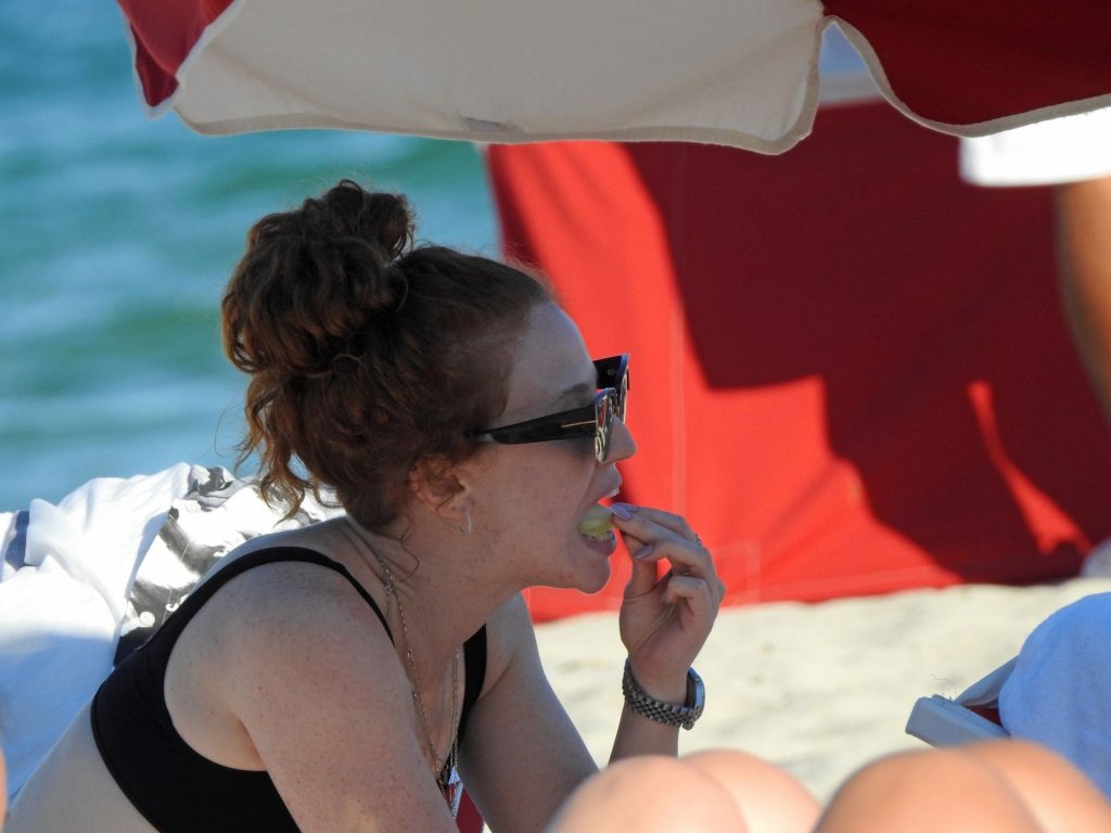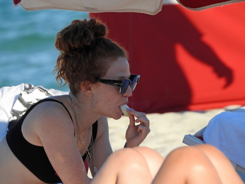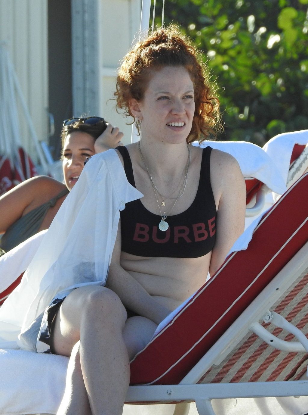 Belle chanteuse anglaise rousse Jess Glynne a été photographiée profitant d’une journée ensoleillée à la plage le jour de l’An 2020 à Miami Beach, 01/02/2020. La sensation pop de 30 ans avait l’air éblouissante dans un bikini noir sexy qui contrastait avec sa peau très blanche et mettait en valeur son corps sexy et tonique.