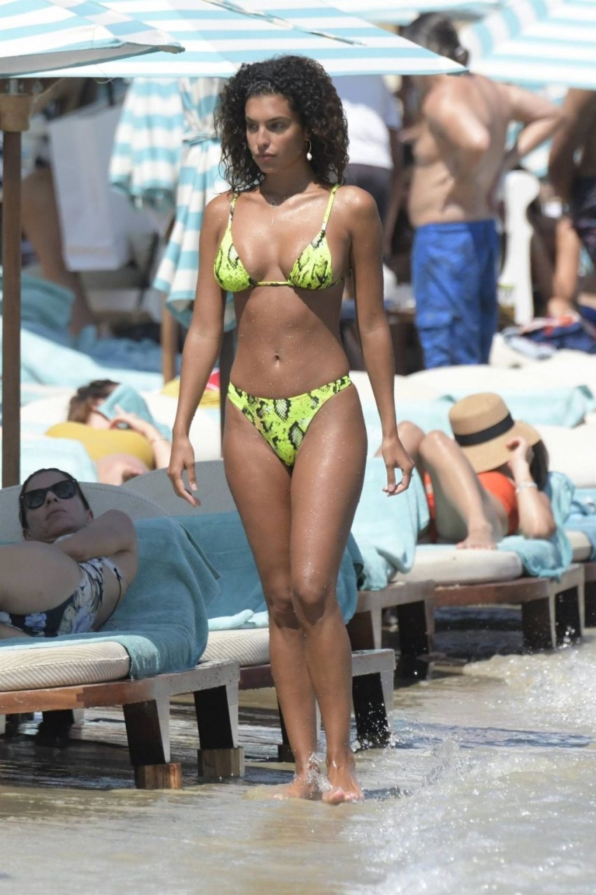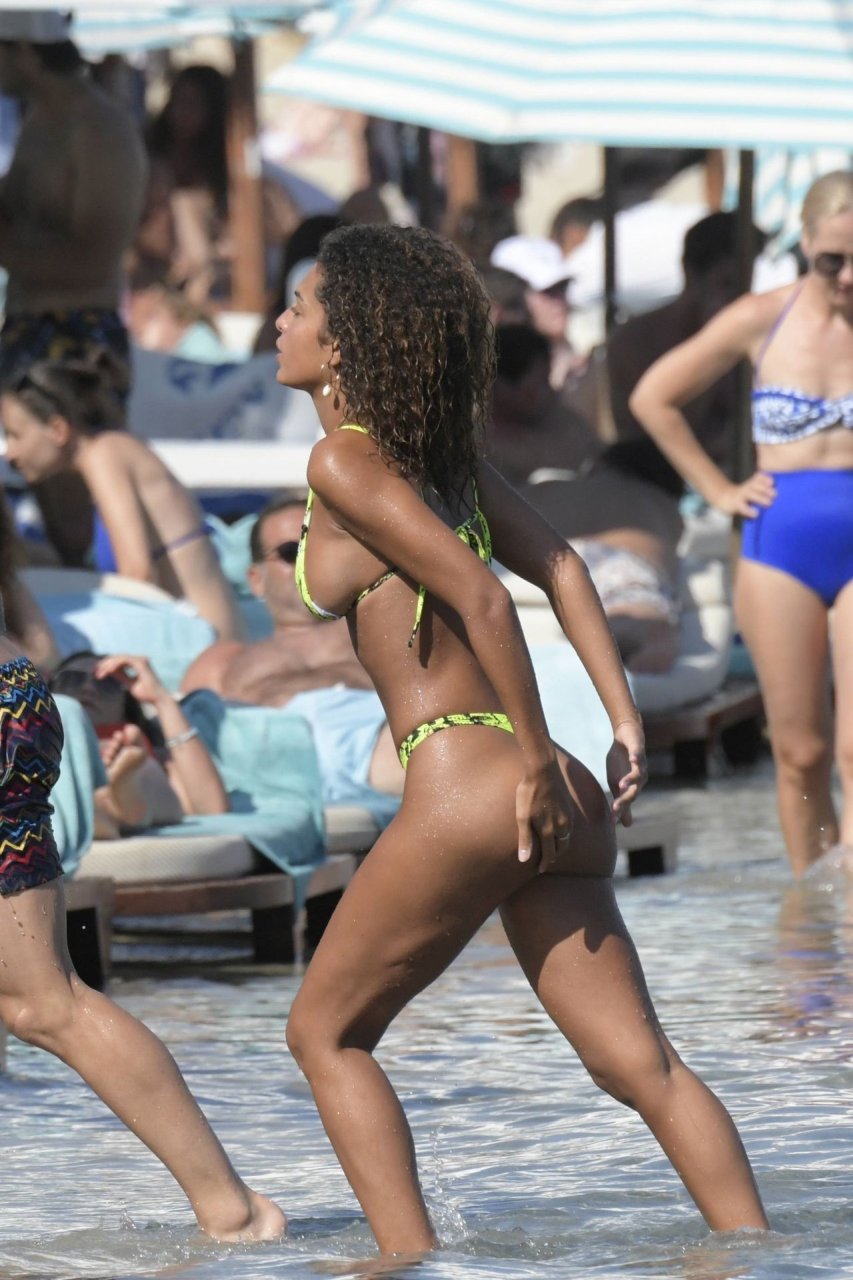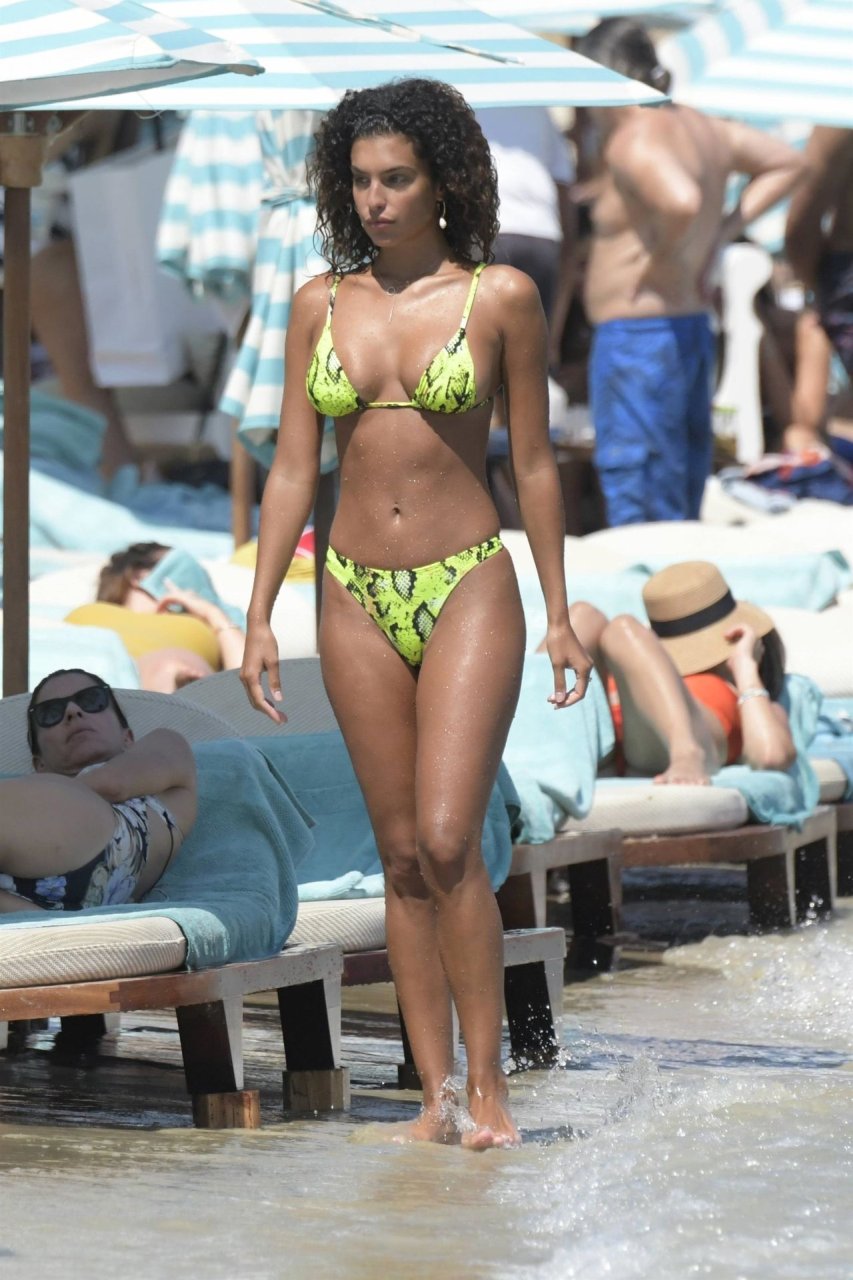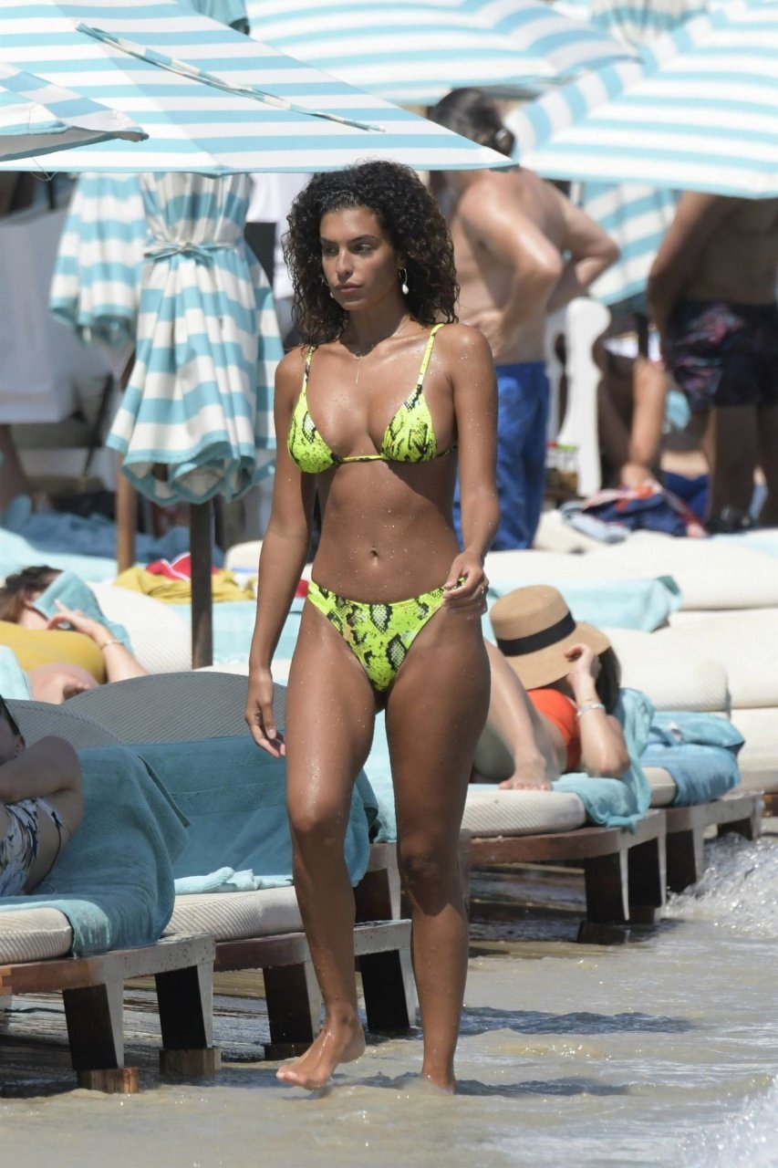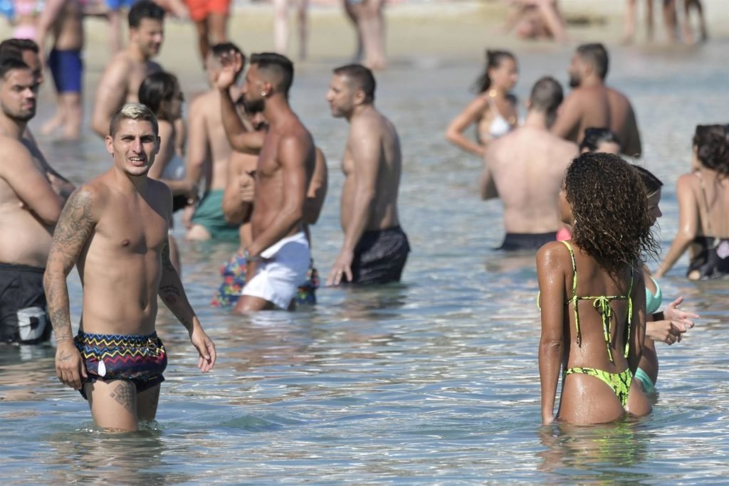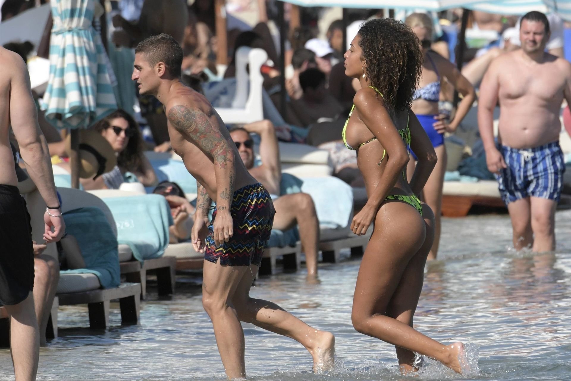 Le footballeur italien du Paris St. Germain, Marco Verratti, et Jessica Aidi profitent des vacances d’été sur l’île de Mykonos, 07/06/2019. Ils démontrent leur amour en faisant des éclaboussures sur la plage.