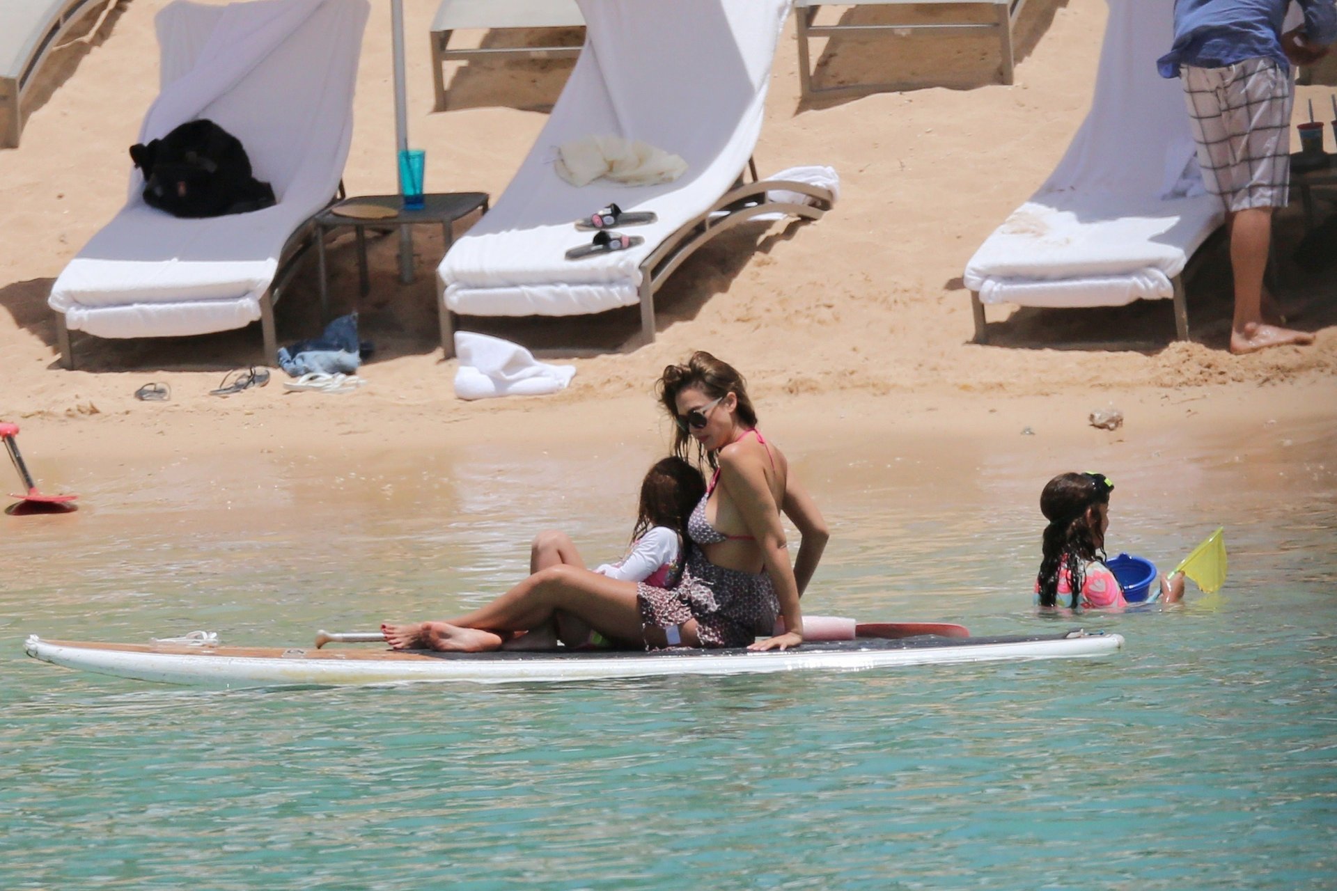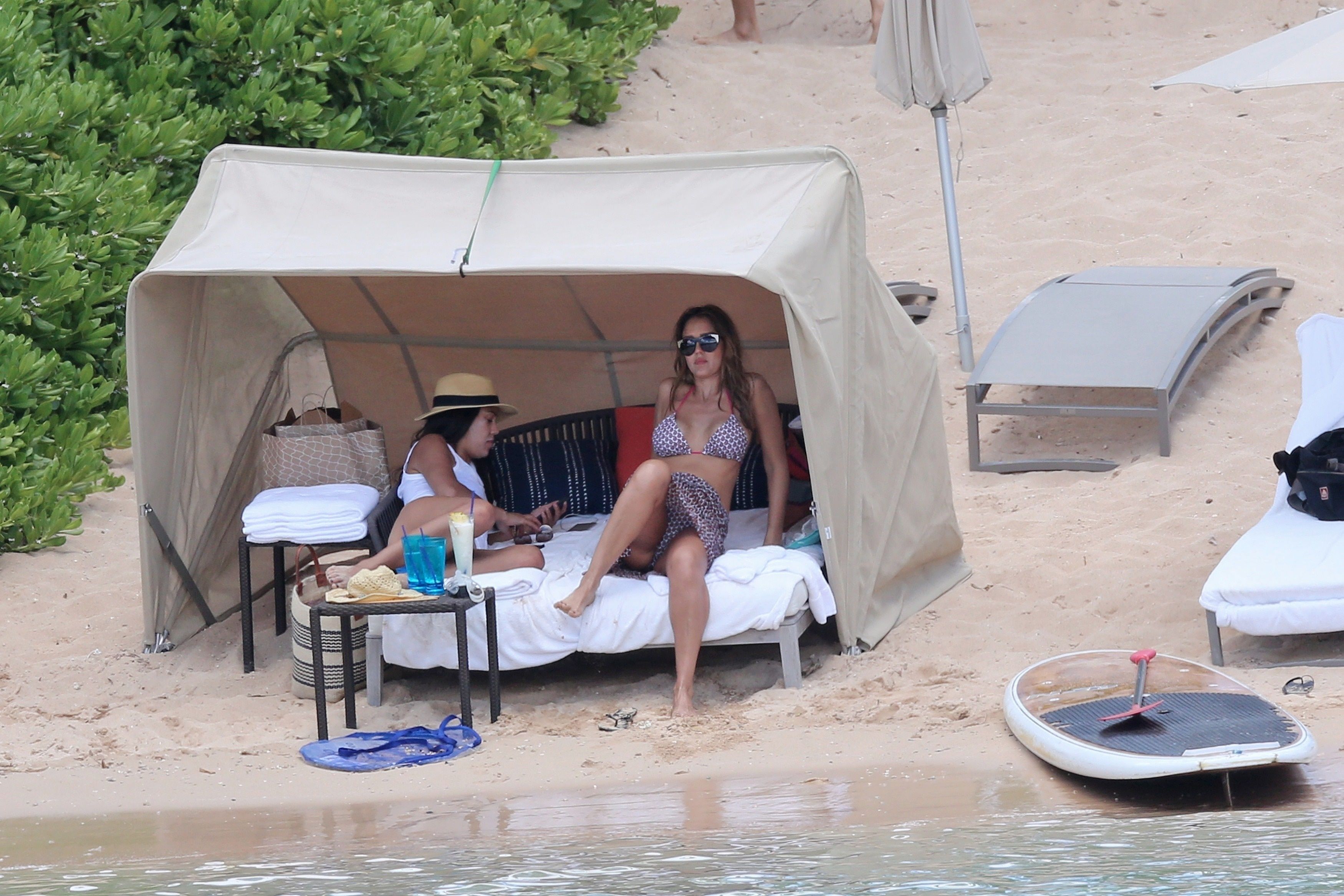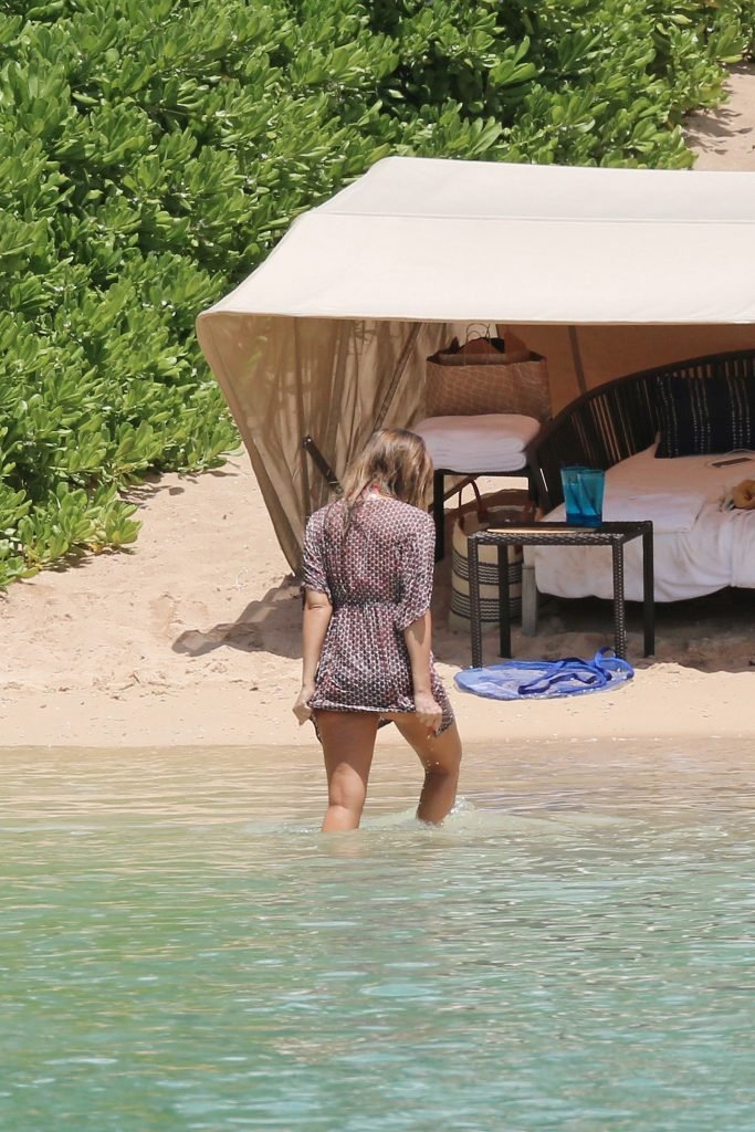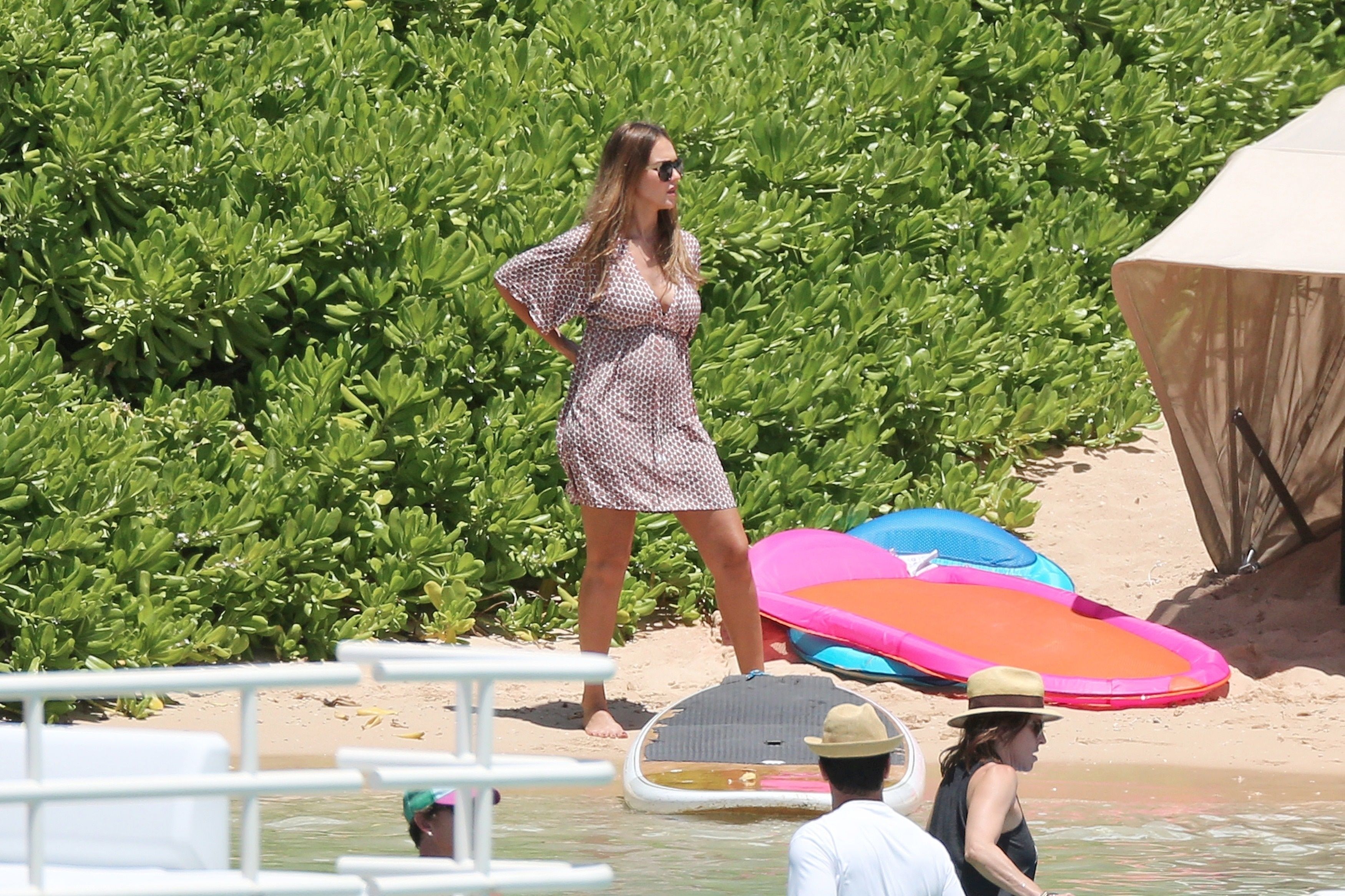 Jessica Alba profite de la plage avec un petit ventre de grossesse. La star brune est en vacances avec sa famille, 17/07/2017.