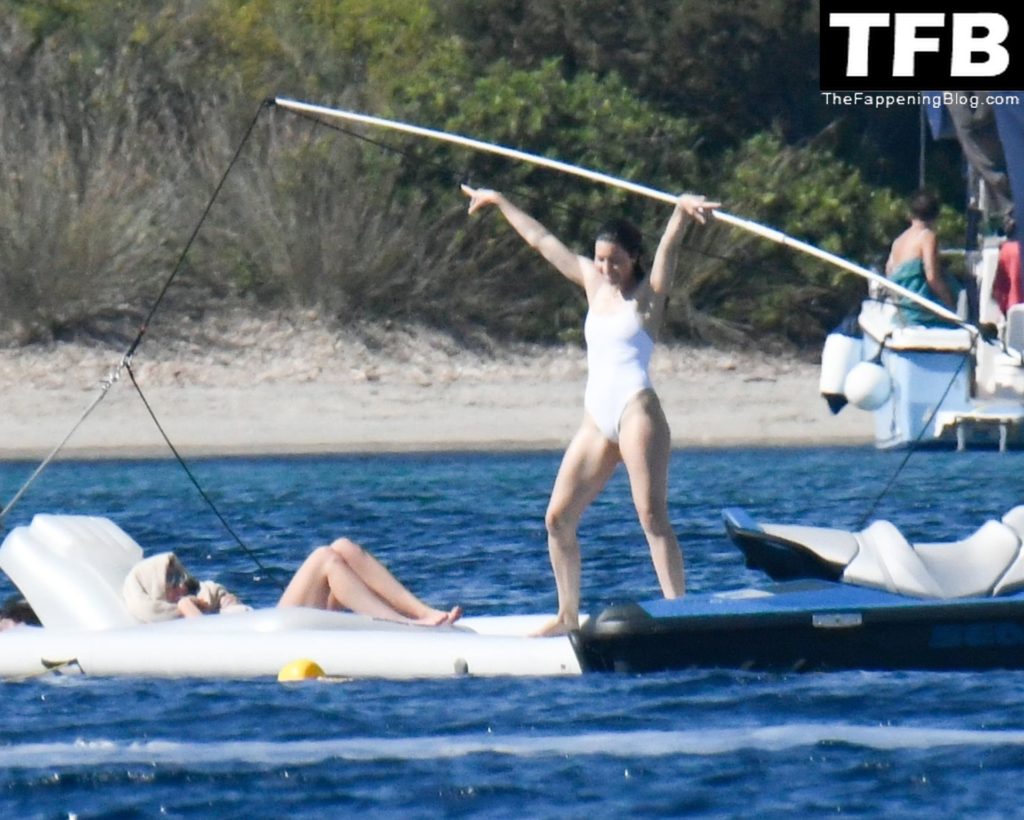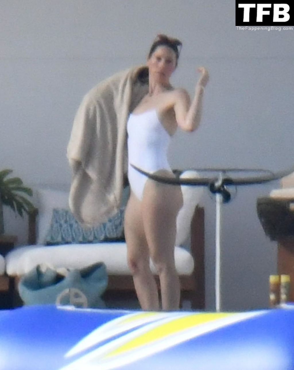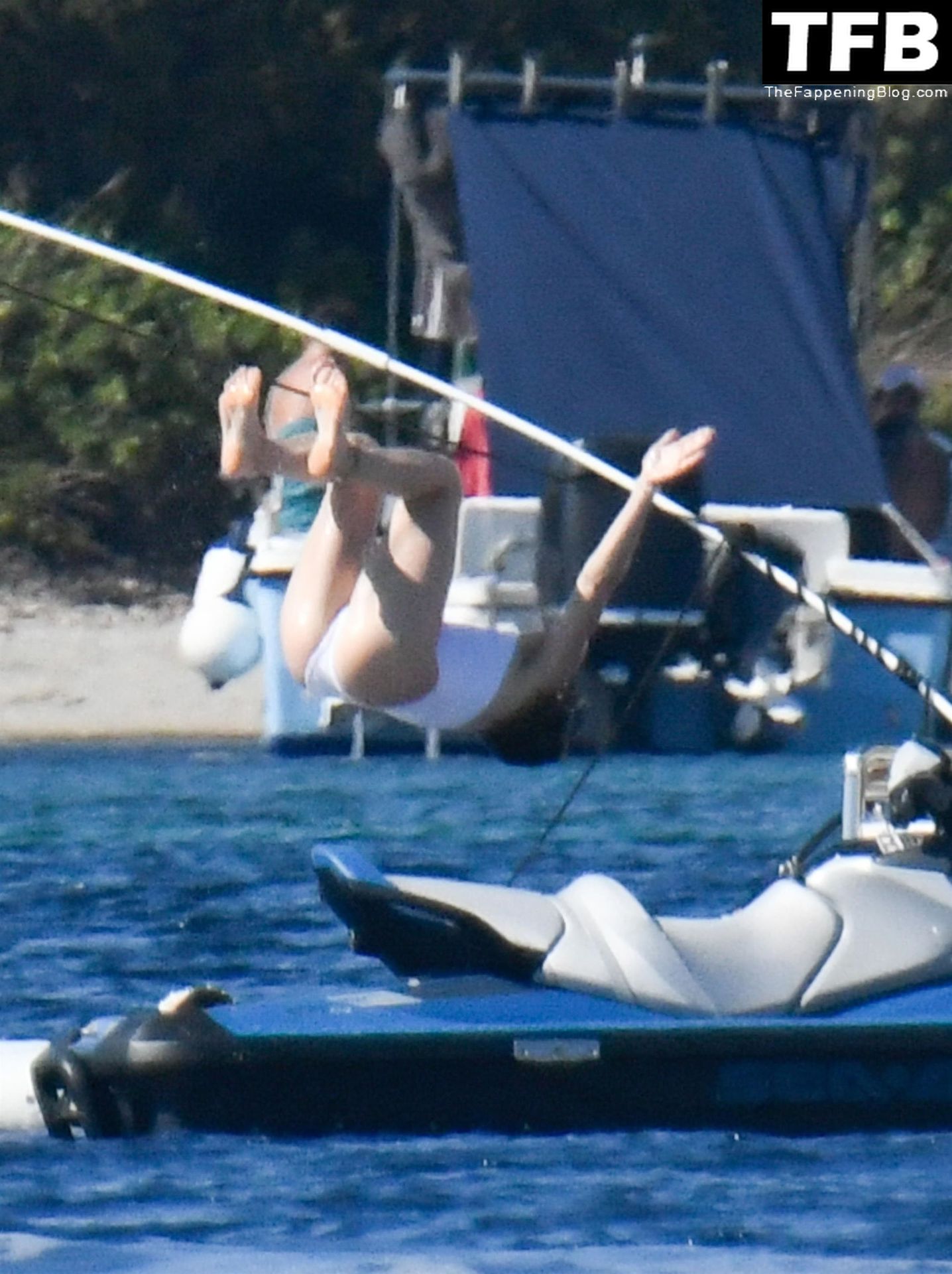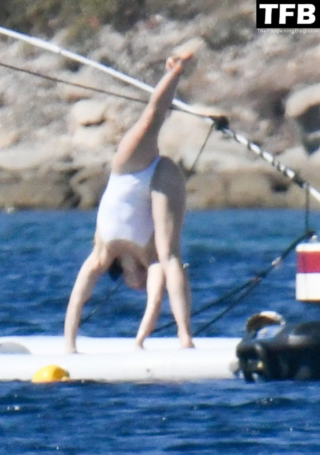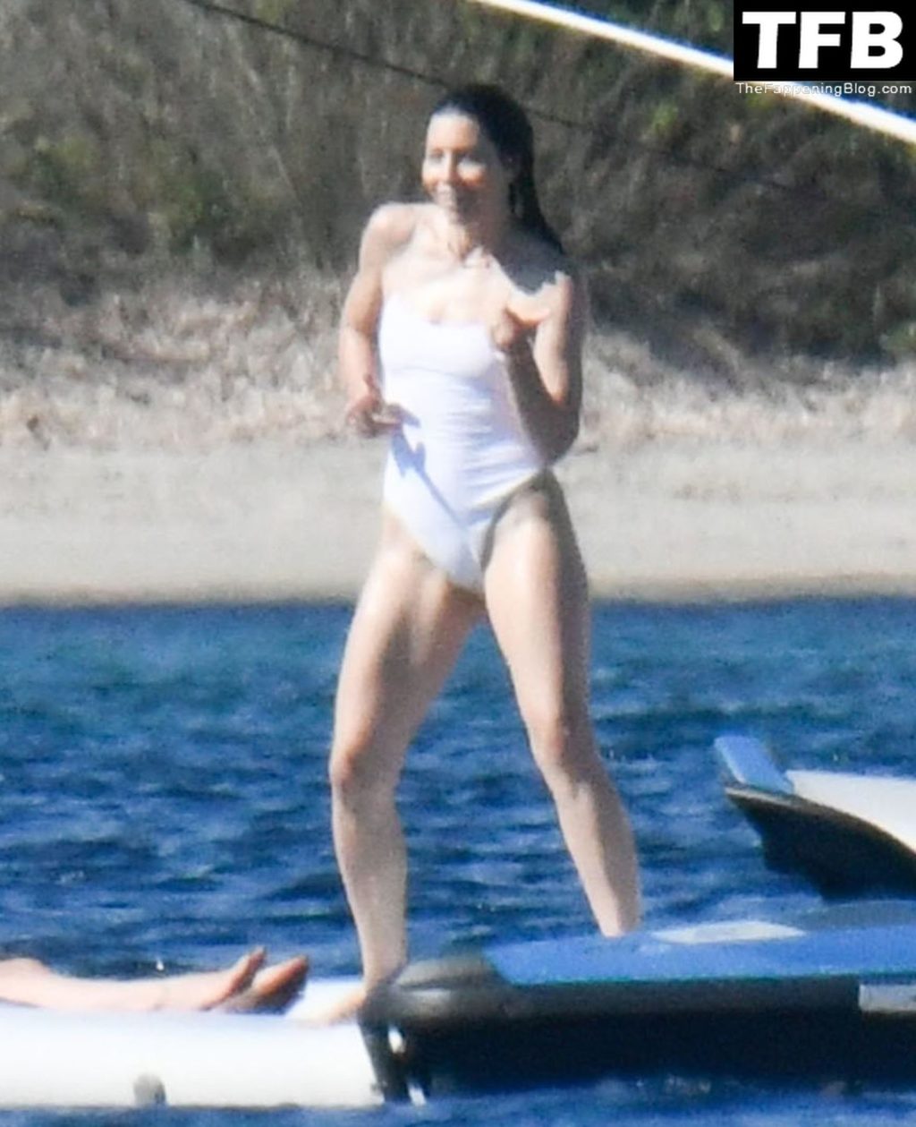Jessica a été vue en train d’exécuter quelques mouvements impressionnants avec des saltos et des flips alors qu’elle portait son maillot de bain blanc mettant en valeur sa silhouette sexy.