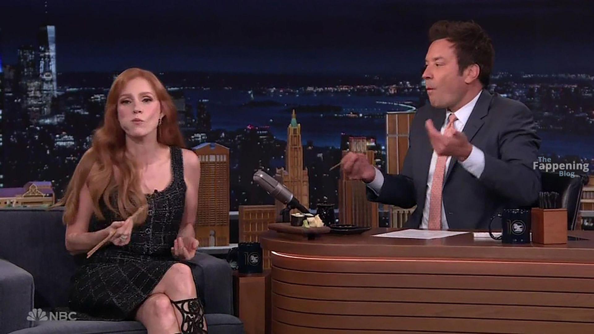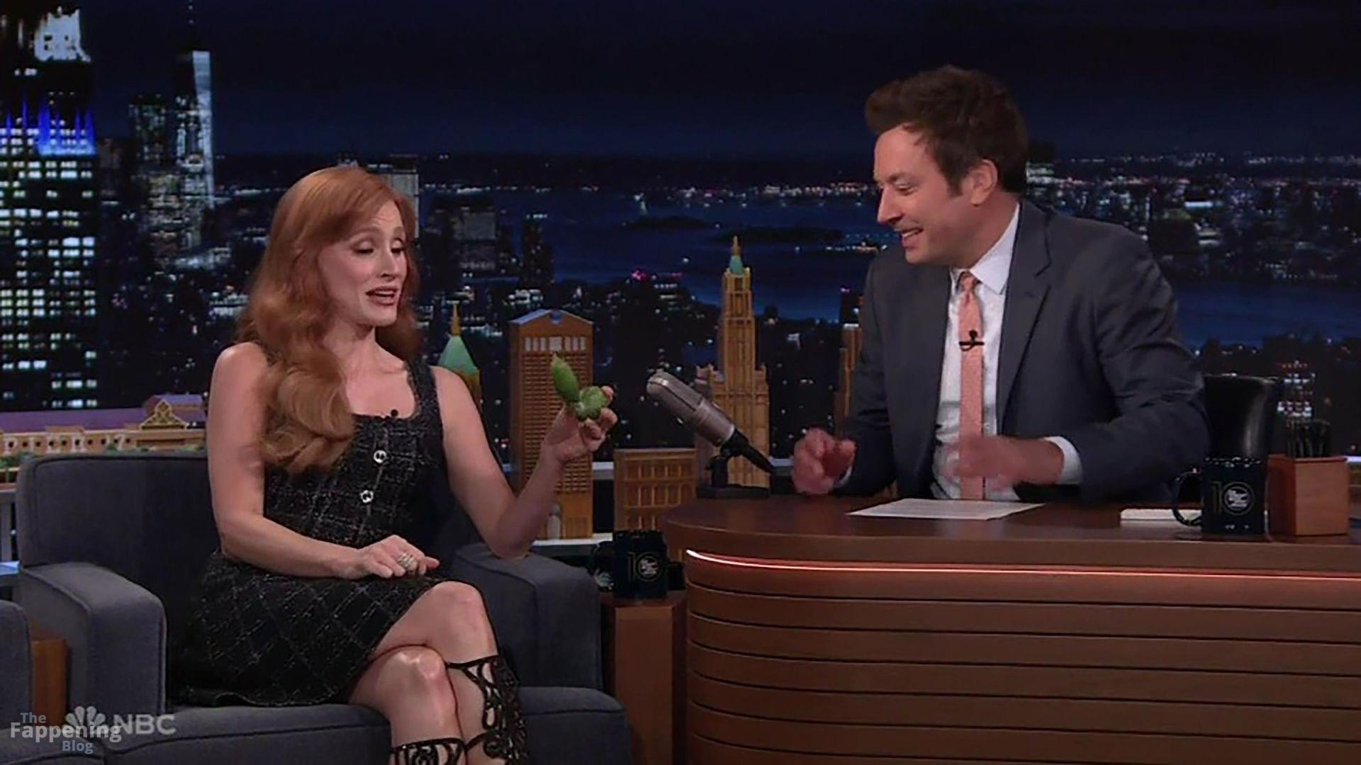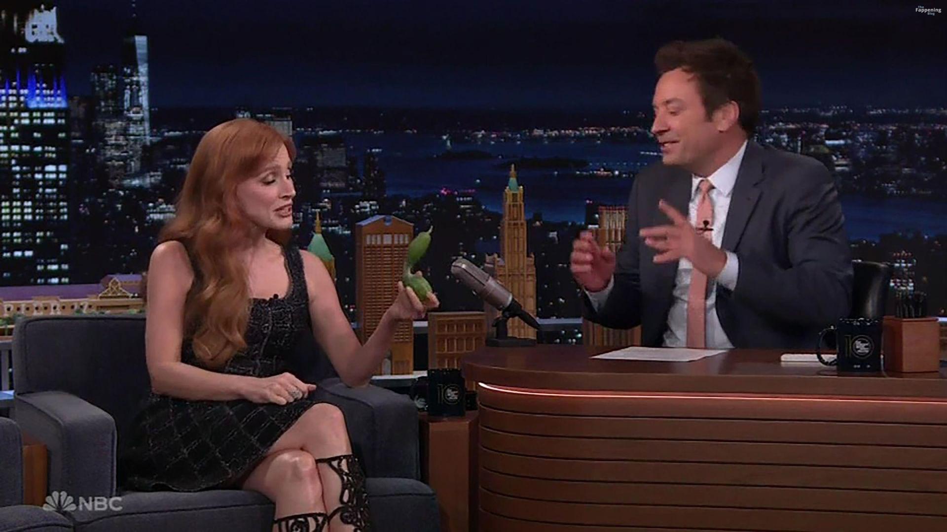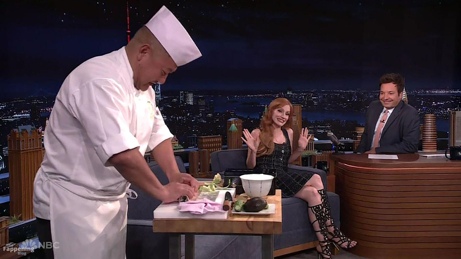 Jessica Chastain taquine le concombre du jardin de Jimmy Fallon dans The Tonight Show. L’actrice est venue dans le talk-show américain en fin de soirée pour promouvoir sa nouvelle série The Savant lorsque l’animateur Fallon a sorti son légume à la forme étrange pour le montrer – avant de faire appel à un chef cuisinier pour le découper en rouleau de sushi.