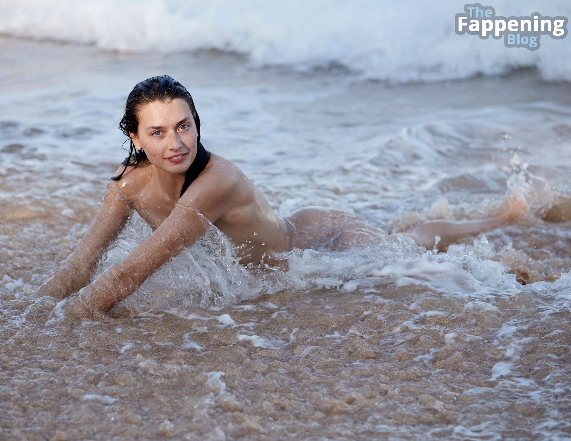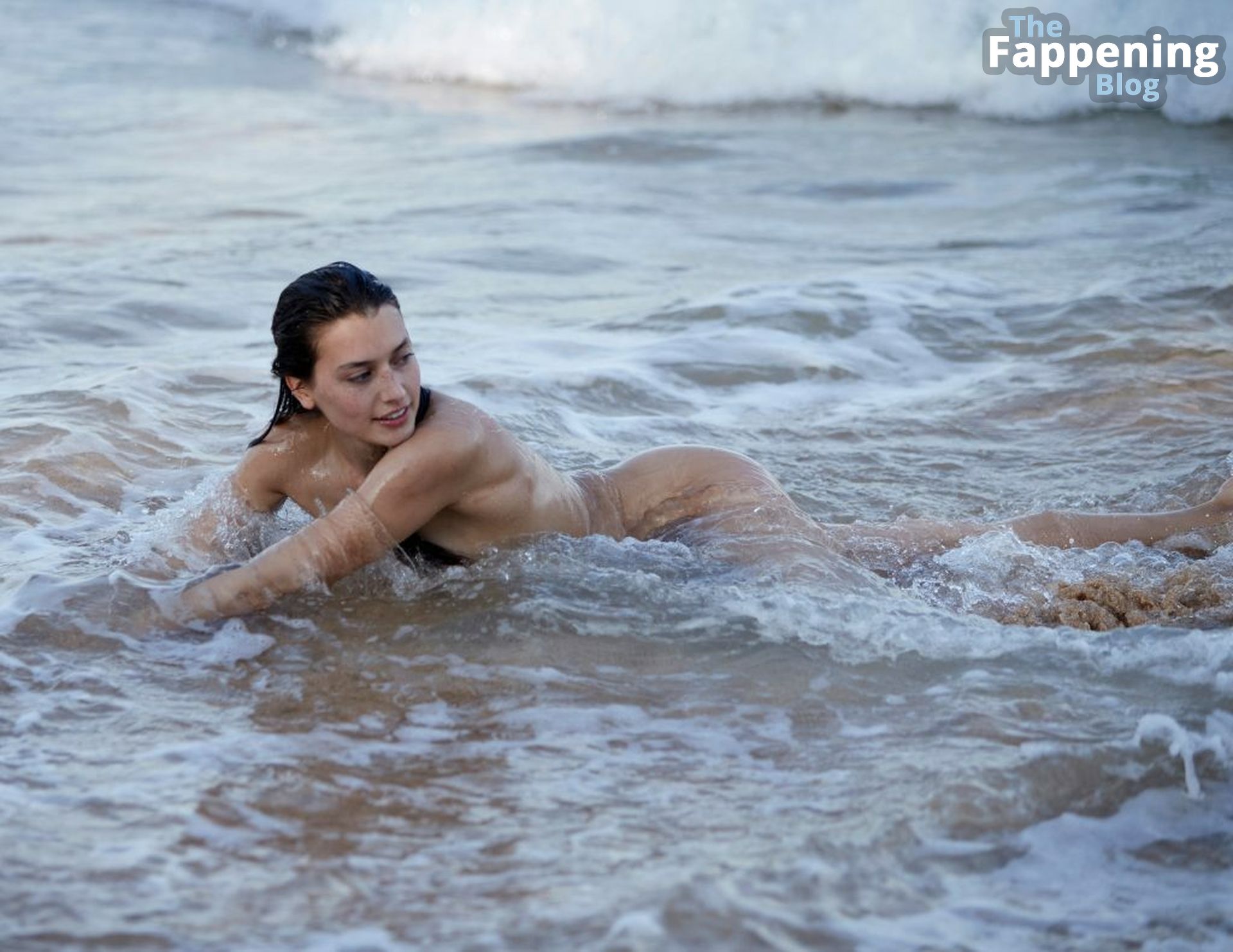 Model Jessica Clements displays her beautiful naked body posing on the beach in a photoshoot by David Bellemere.