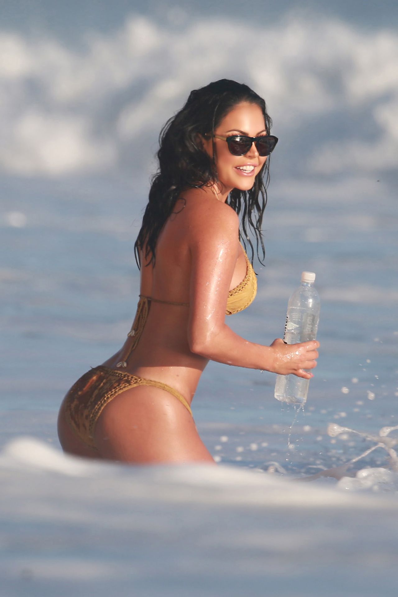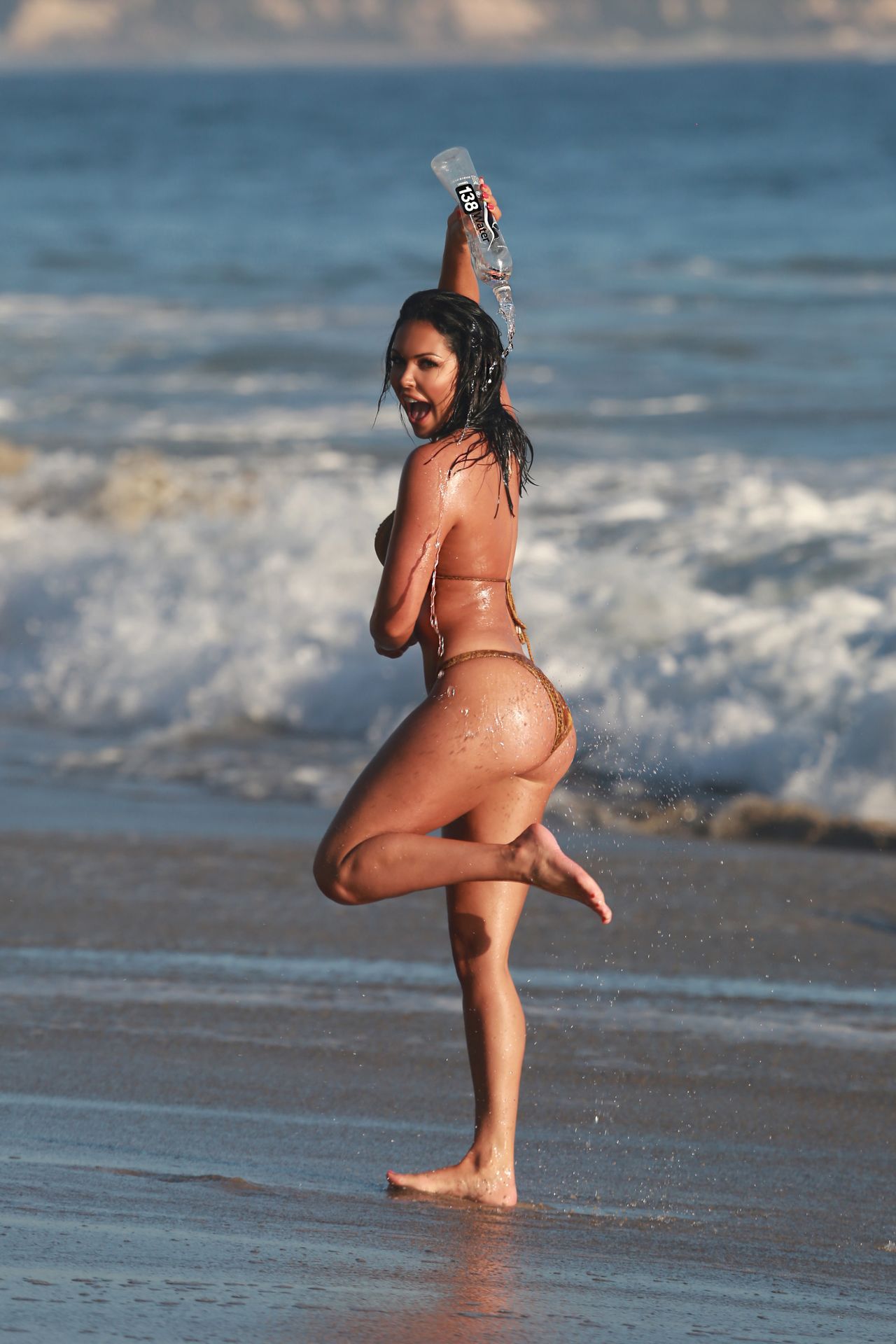 Le mannequin australien de maillots de bain Jessica Cribbon exhibe son incroyable corps en bikini lors d’une séance photo 138 Water à Malibu, le 19/11/2019.