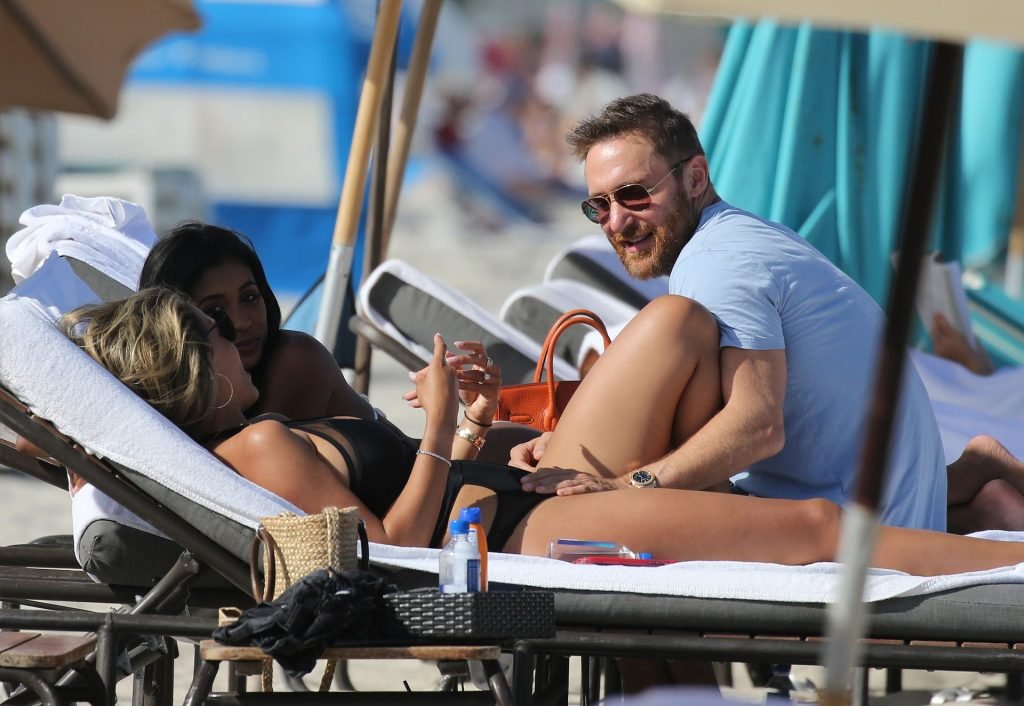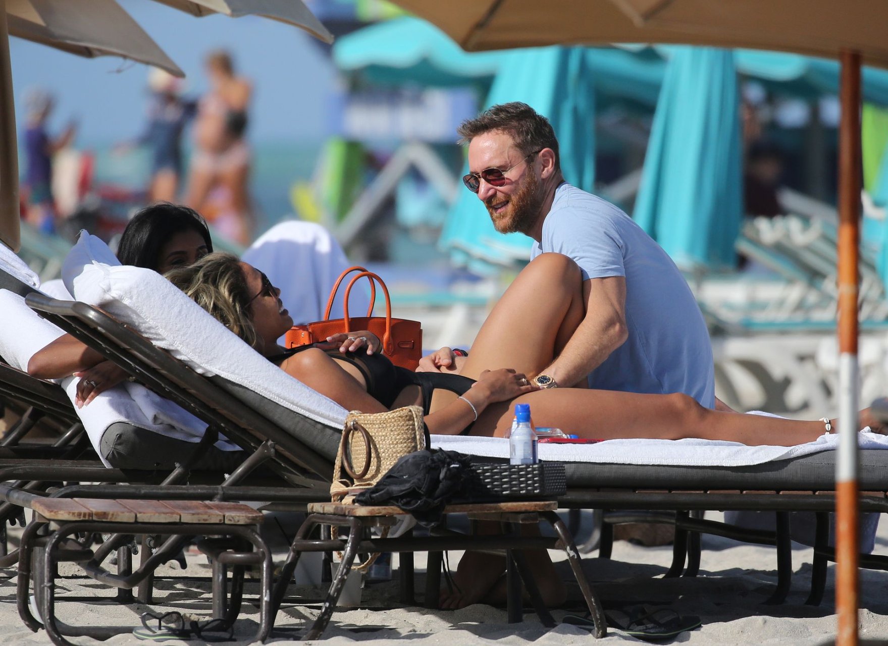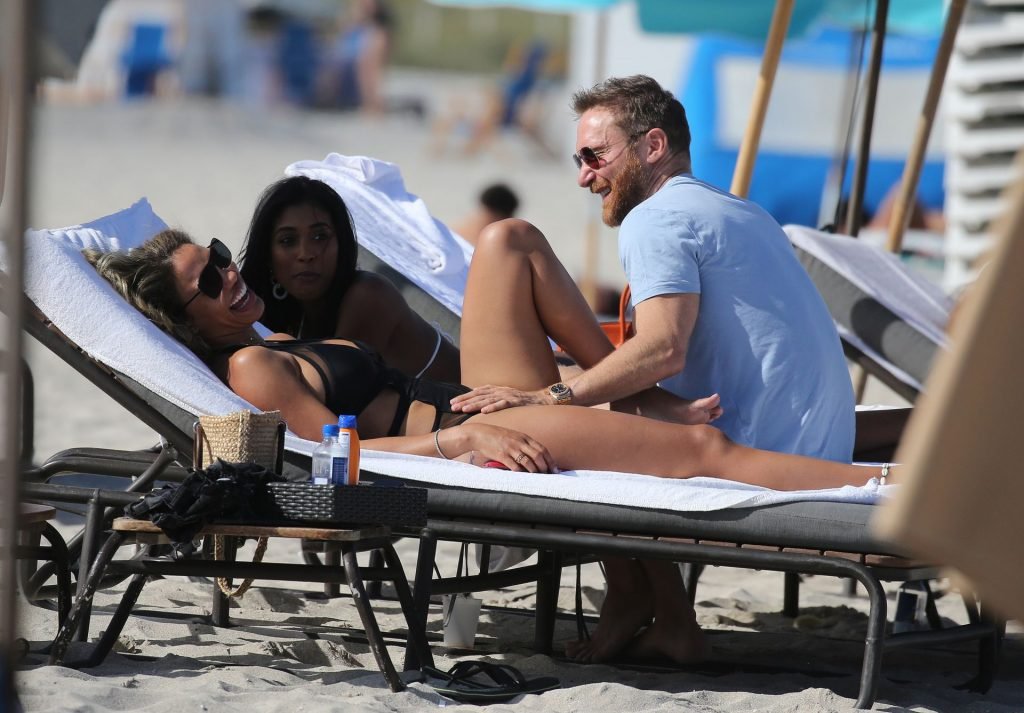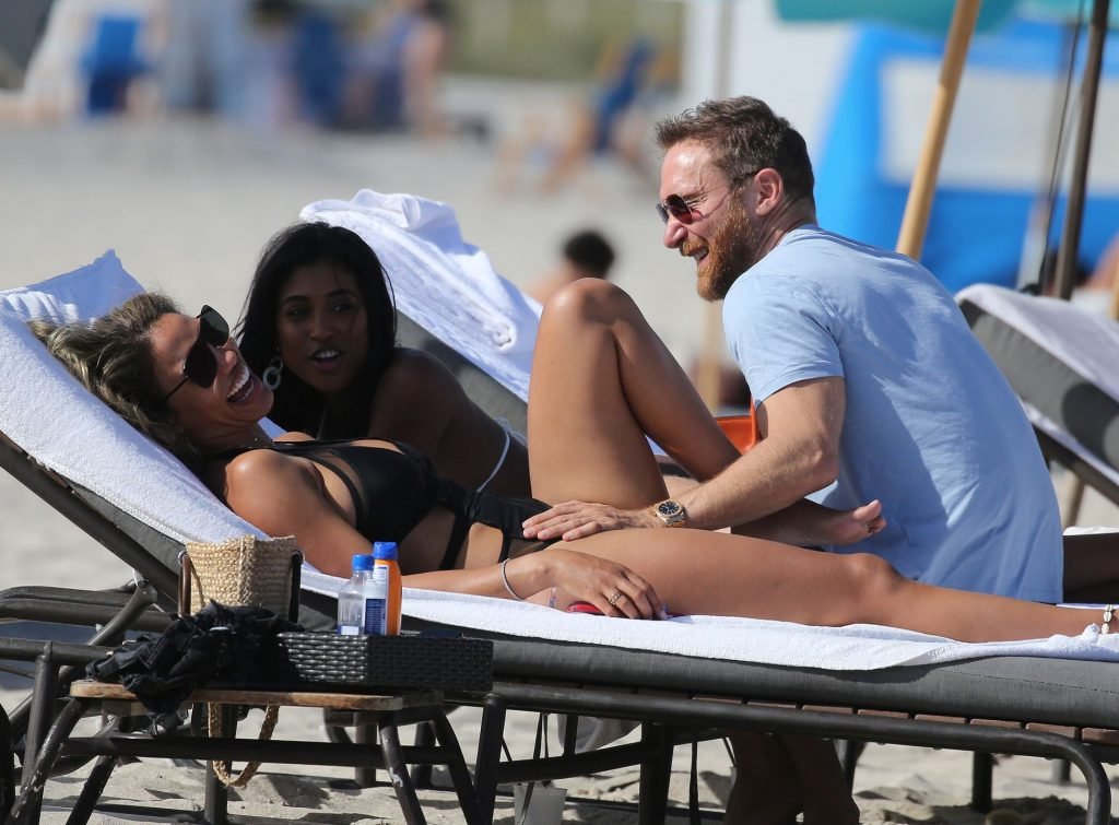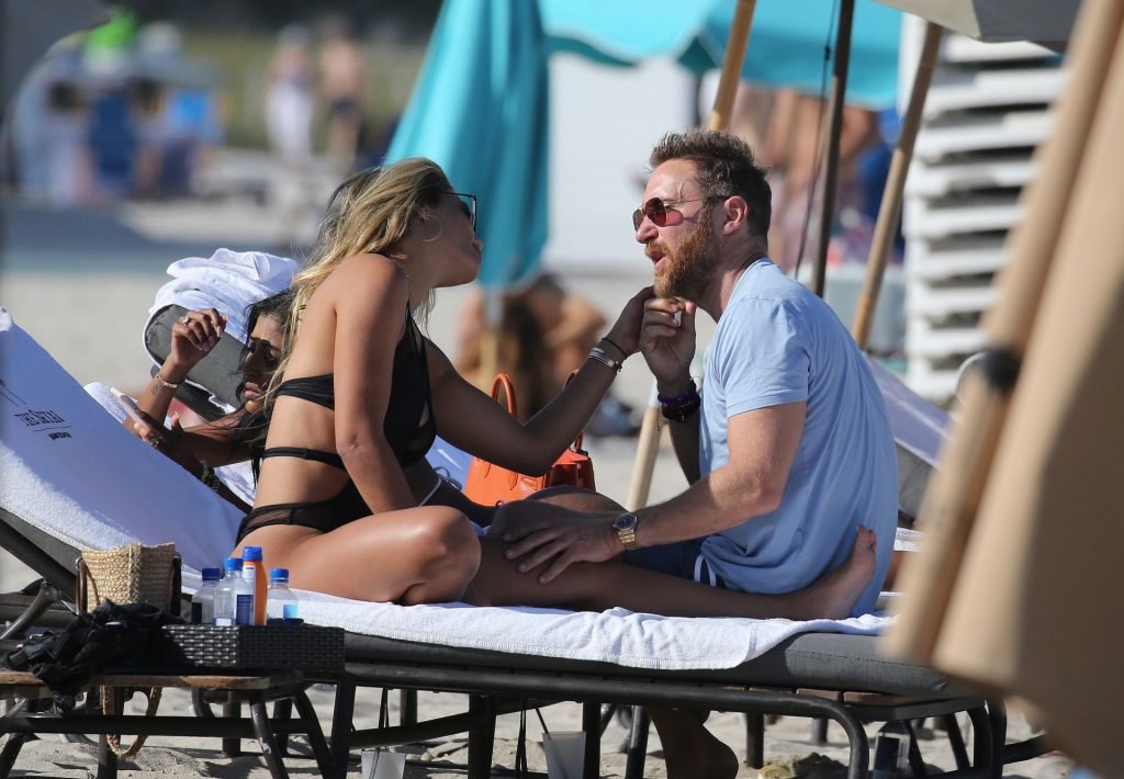Le DJ mondialement connu David Guetta ne peut pas garder ses mains loin de sa petite amie Jessica Ledon sur la plage de Miami, 30/03/2019.