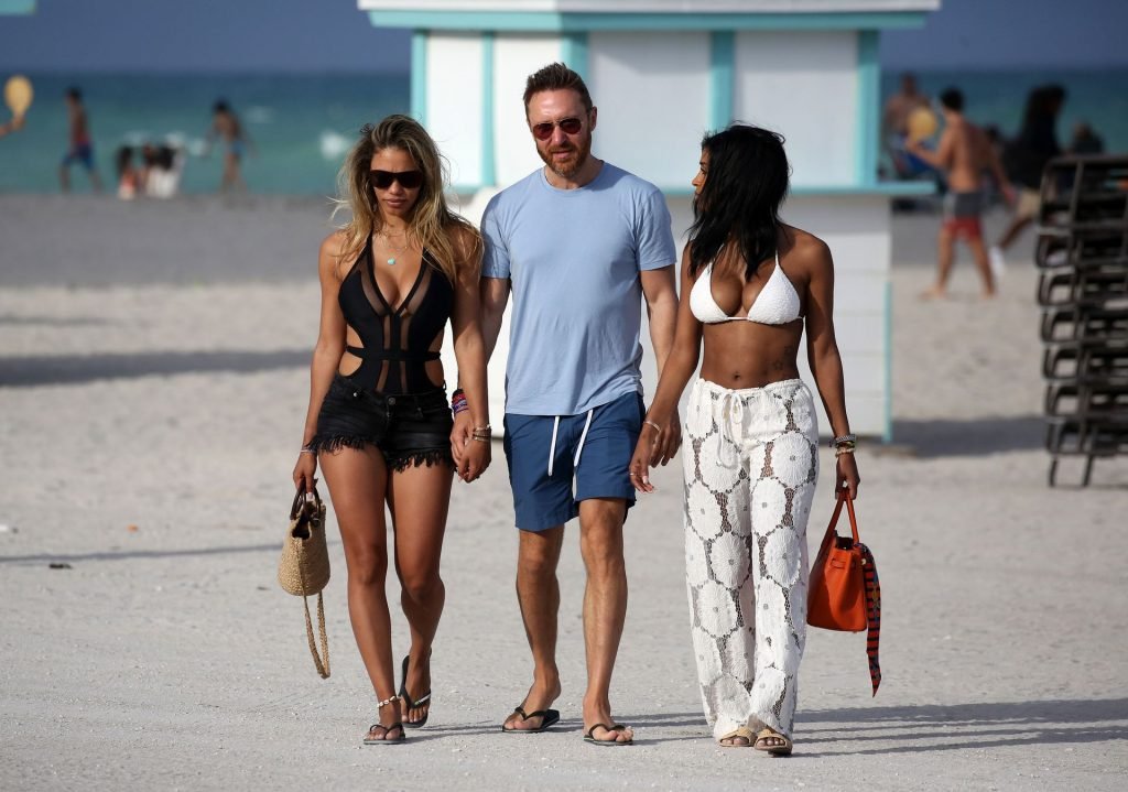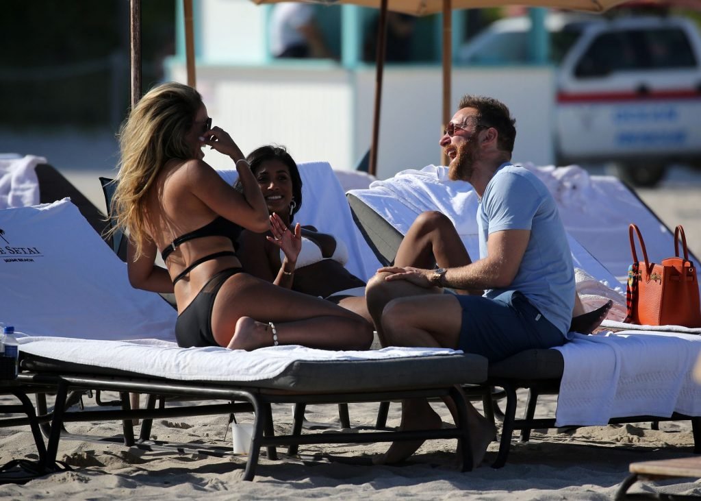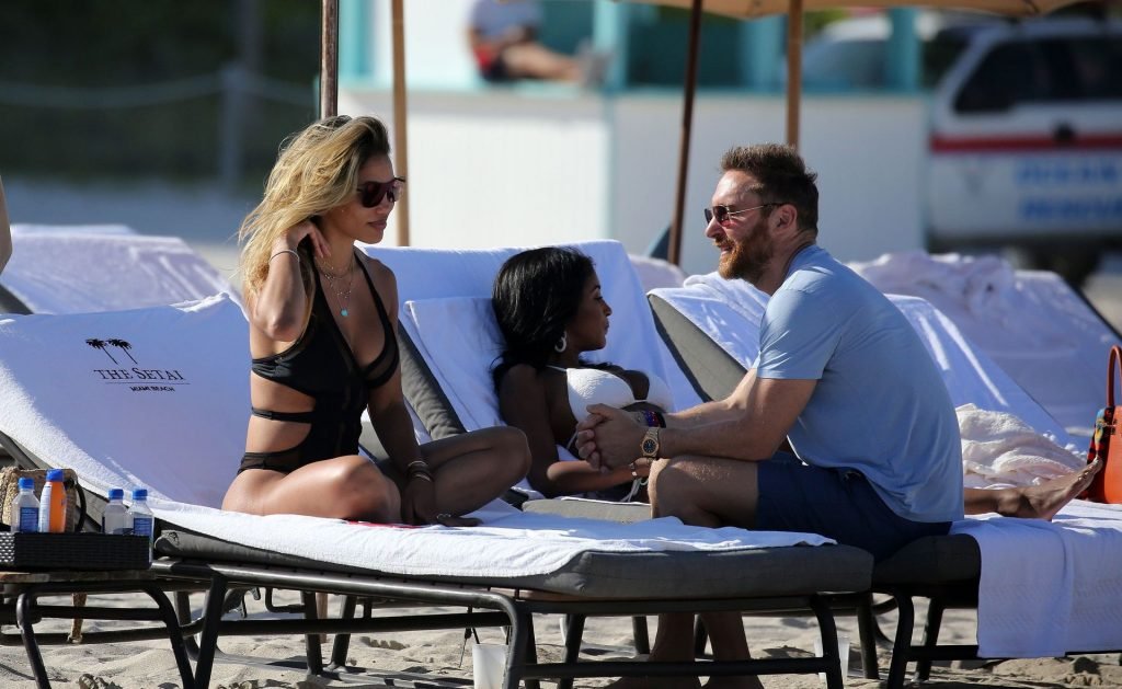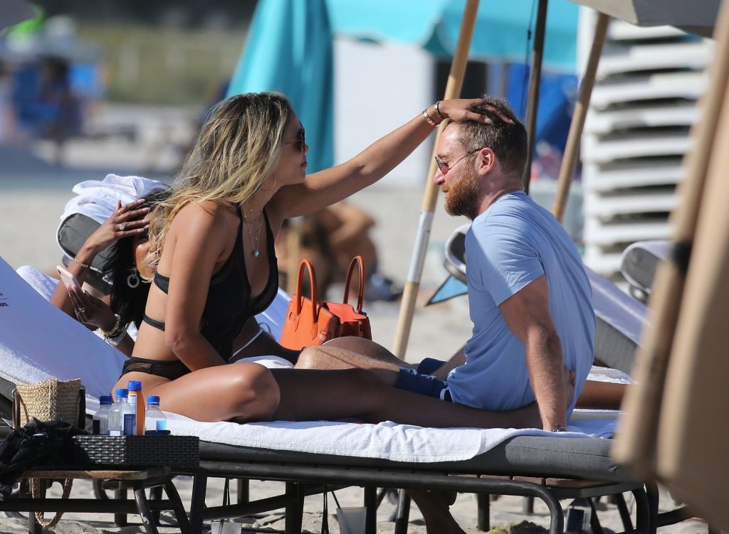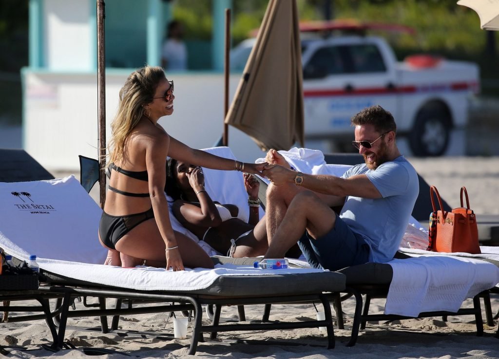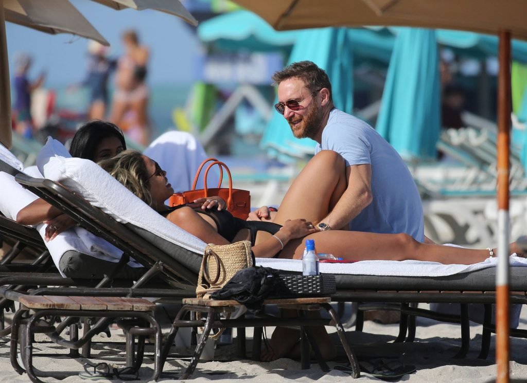 Le DJ mondialement connu David Guetta ne peut pas garder ses mains loin de sa petite amie Jessica Ledon sur la plage de Miami, 30/03/2019.