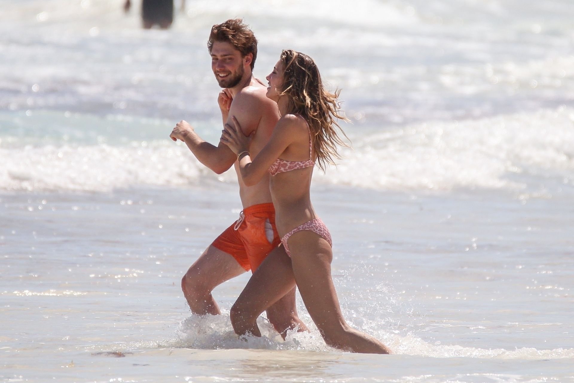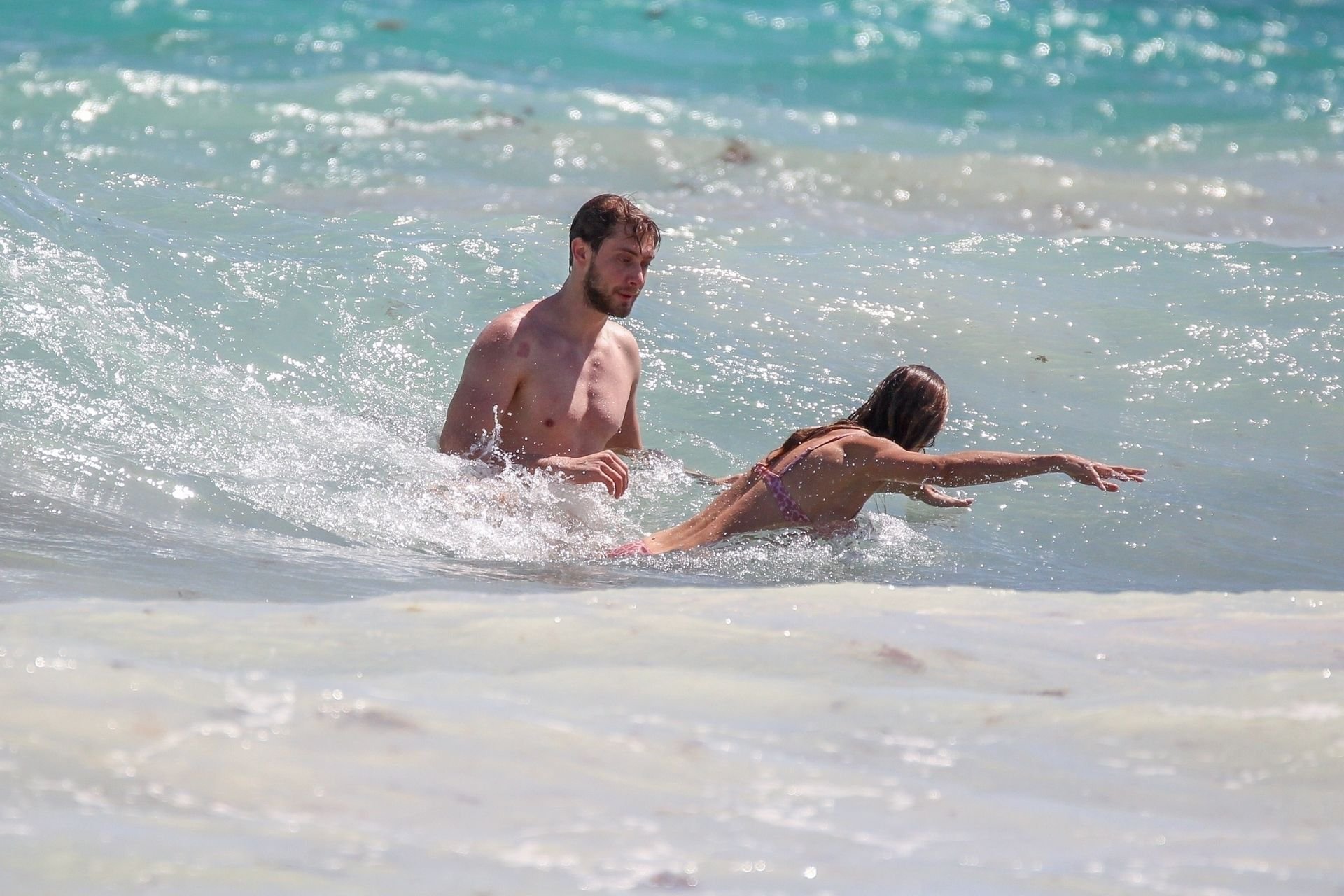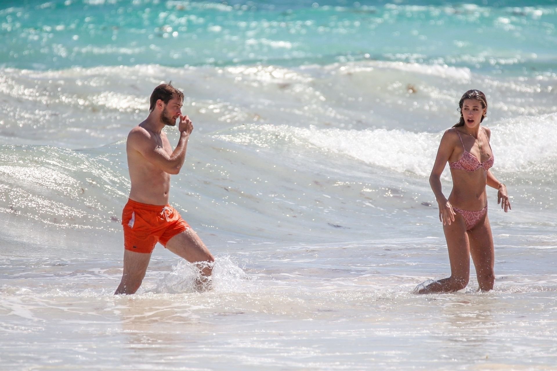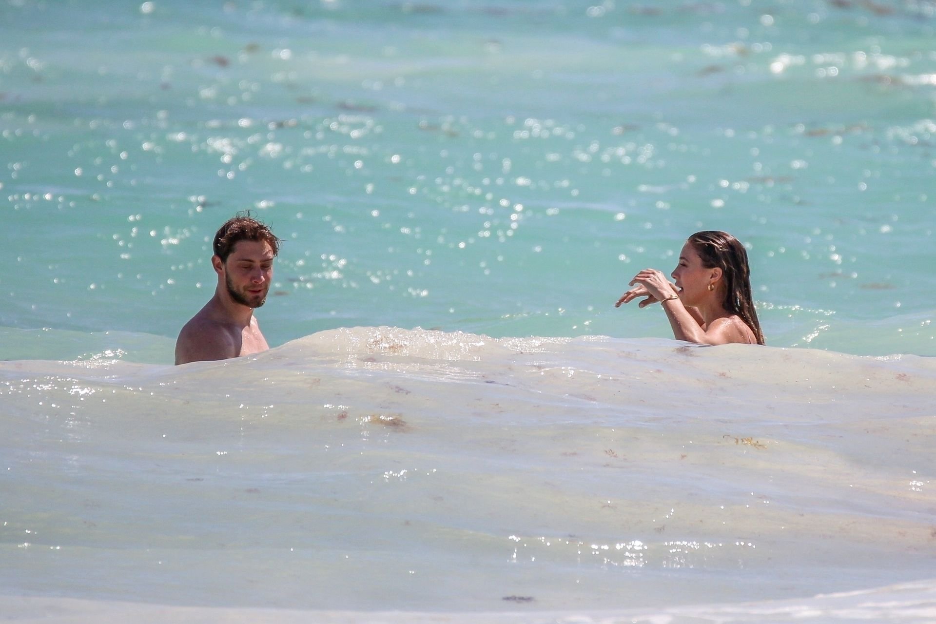 L’actrice et mannequin Jessica Serfaty passe une journée à la plage avec son nouveau compagnon à Tulum, au Mexique, le 01/03/2019. La charmante mannequin joue dans l’océan en bikini sexy à imprimé animal tout en bronzant avec son homme Kaan Gunay.