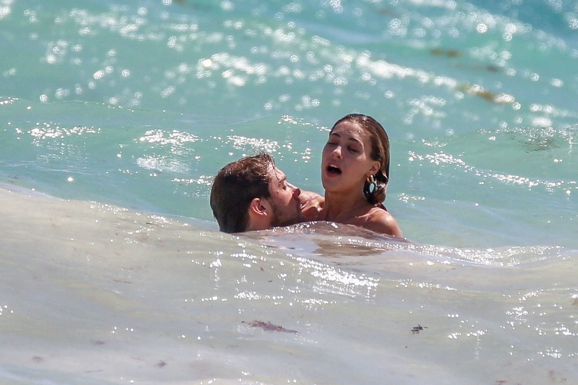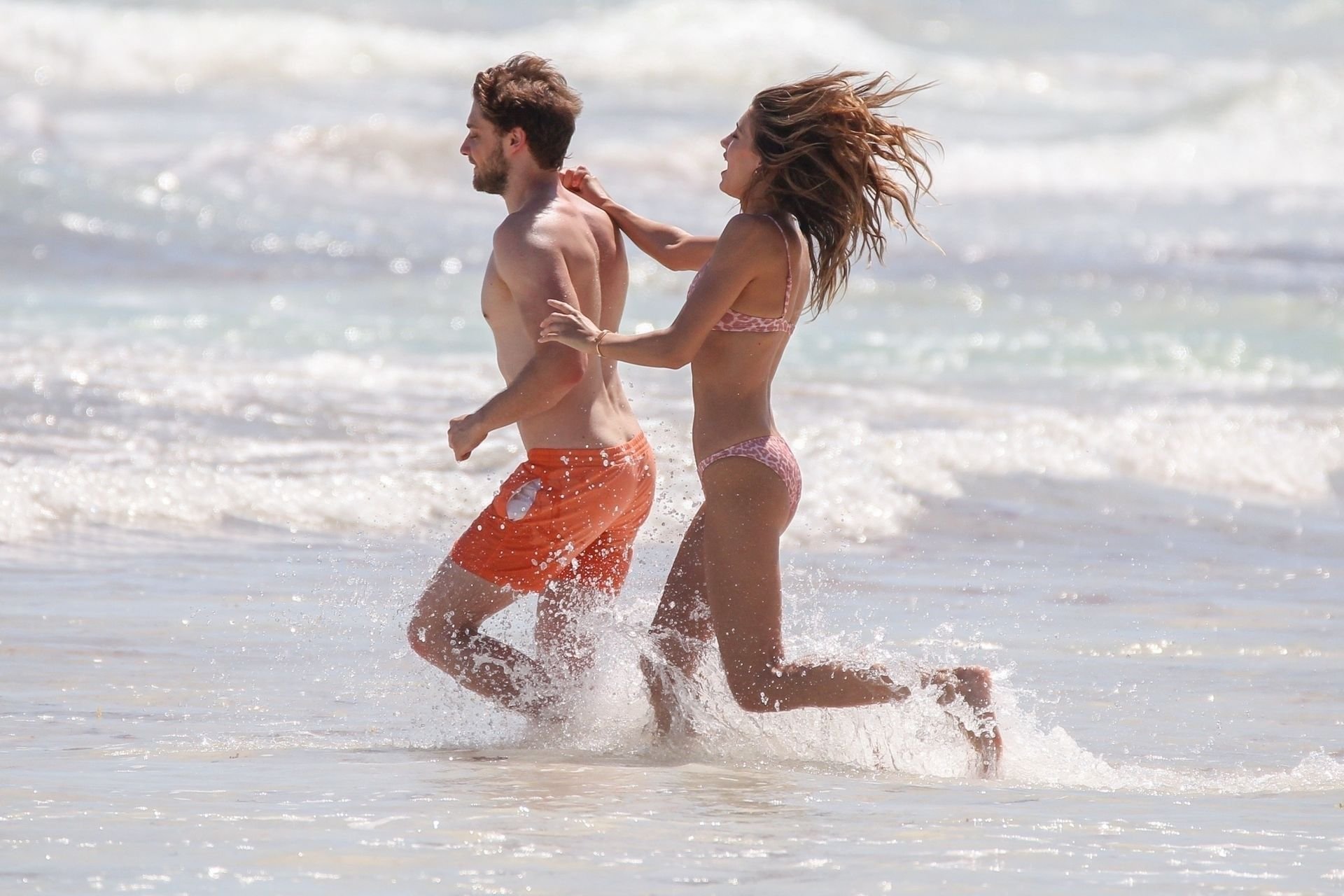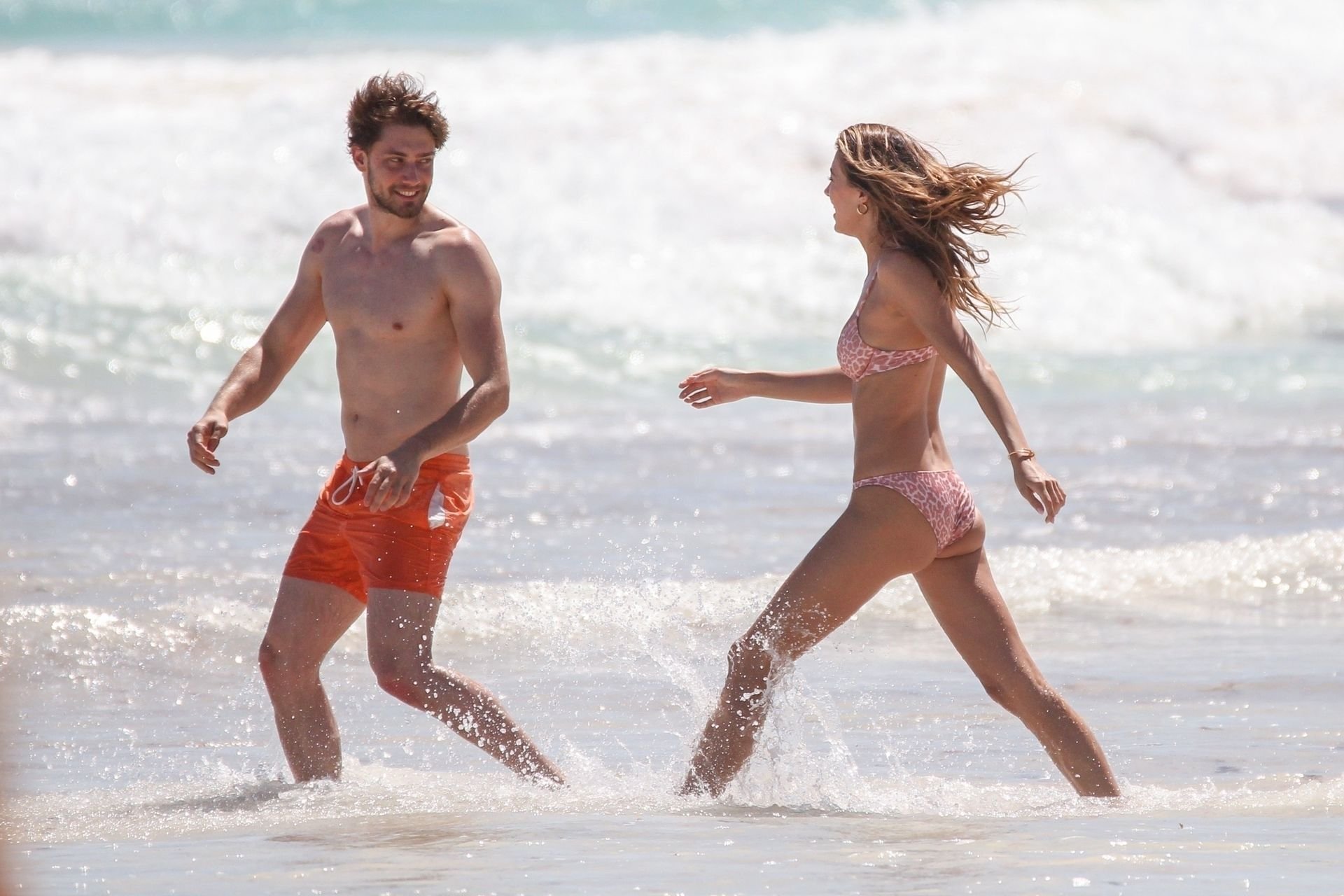 L’actrice et mannequin Jessica Serfaty passe une journée à la plage avec son nouveau compagnon à Tulum, au Mexique, le 01/03/2019. La charmante mannequin joue dans l’océan en bikini sexy à imprimé animal tout en bronzant avec son homme Kaan Gunay.