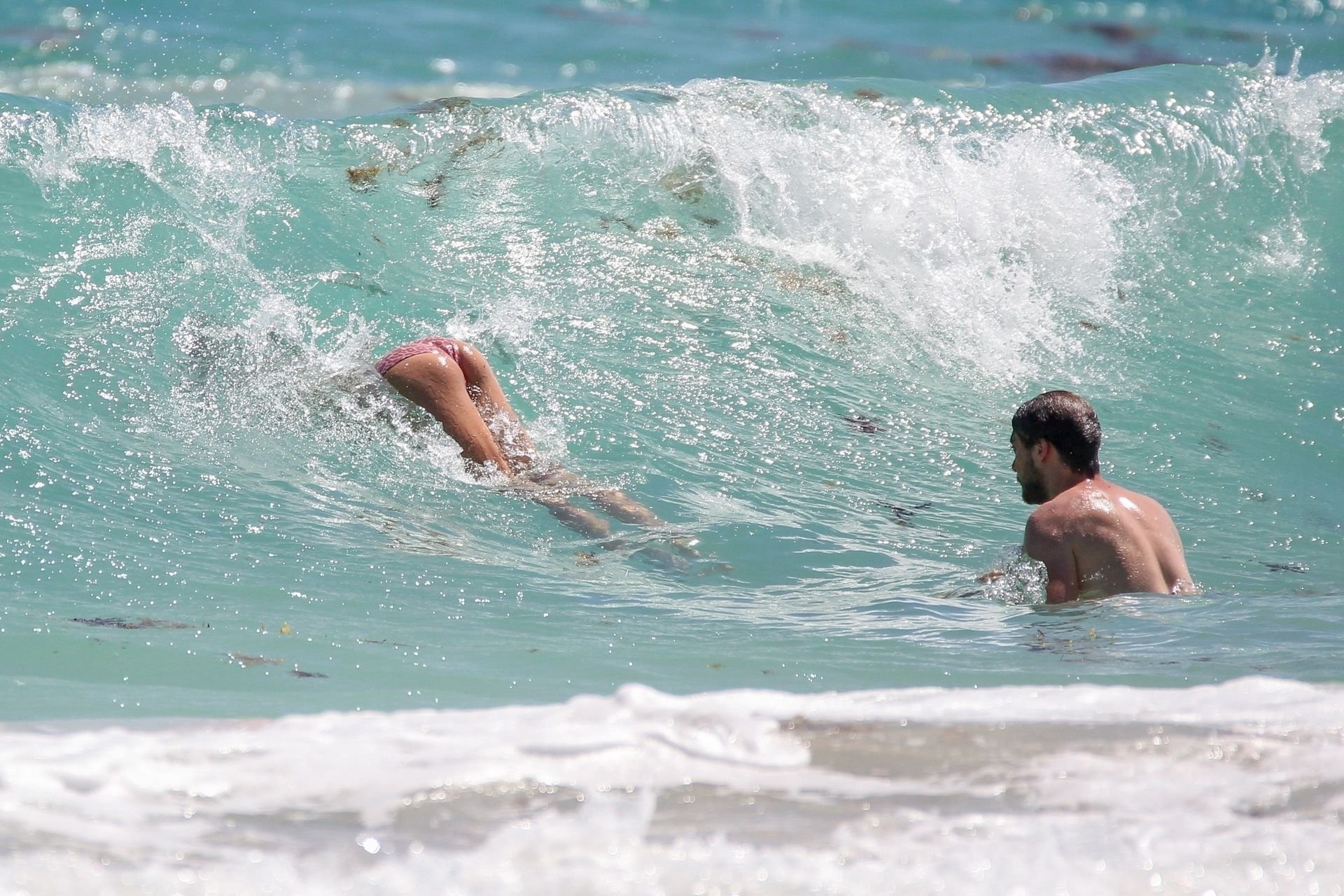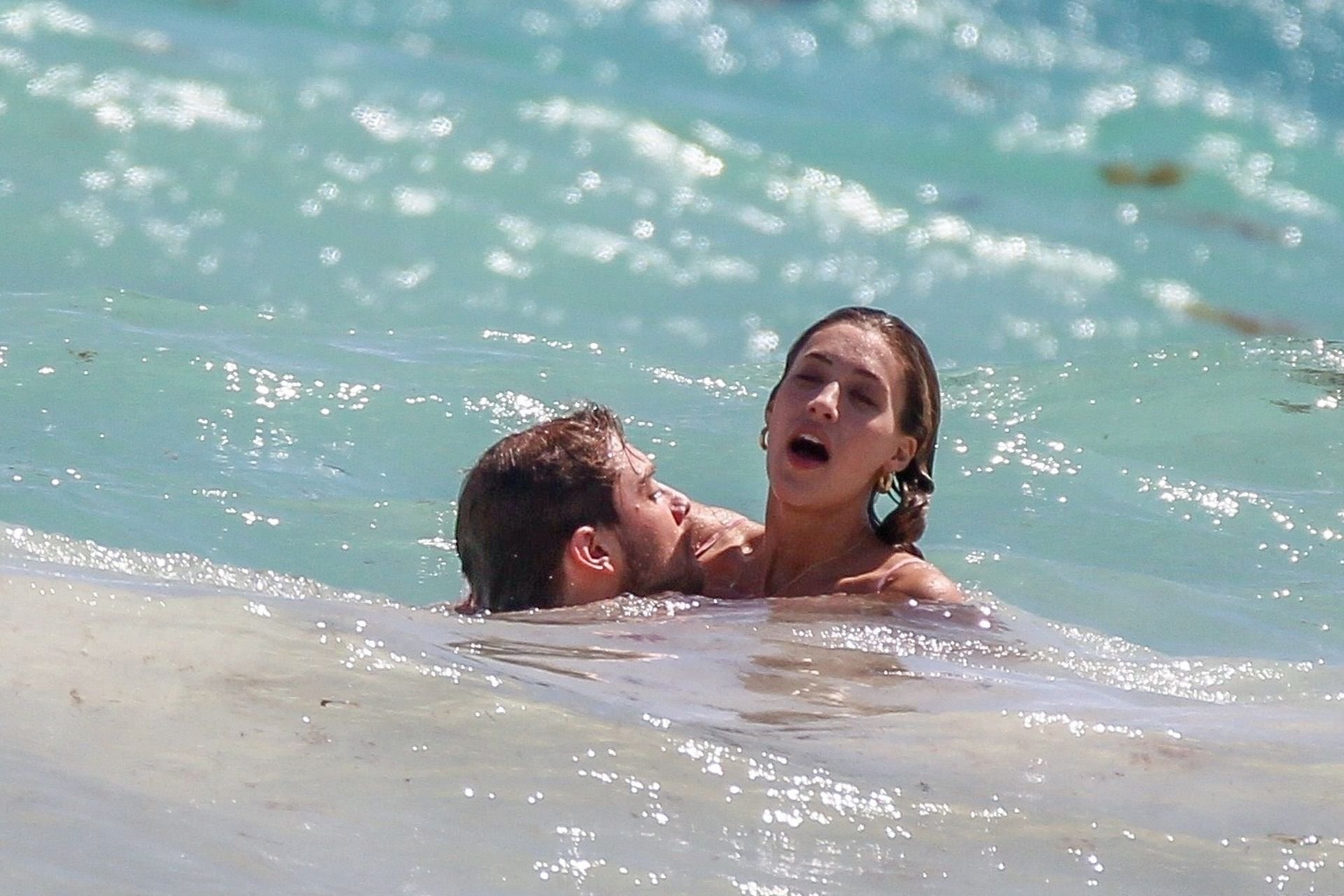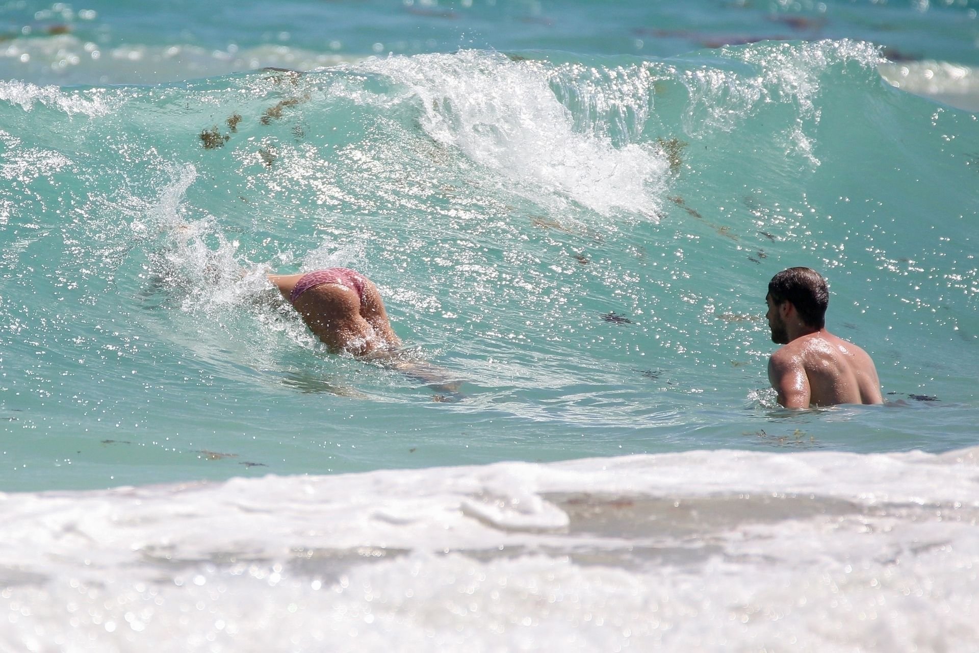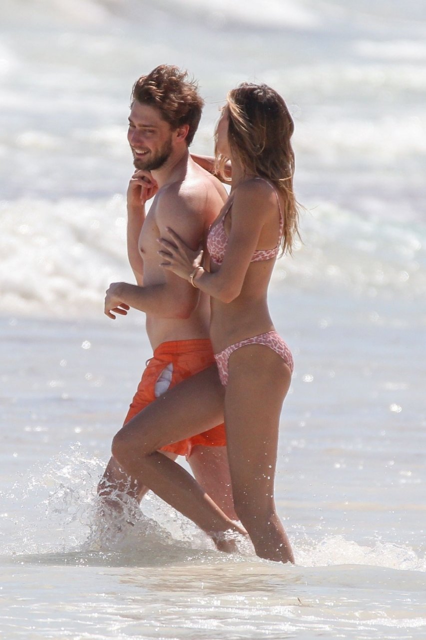 L’actrice et mannequin Jessica Serfaty passe une journée à la plage avec son nouveau compagnon à Tulum, au Mexique, le 01/03/2019. La charmante mannequin joue dans l’océan en bikini sexy à imprimé animal tout en bronzant avec son homme Kaan Gunay.