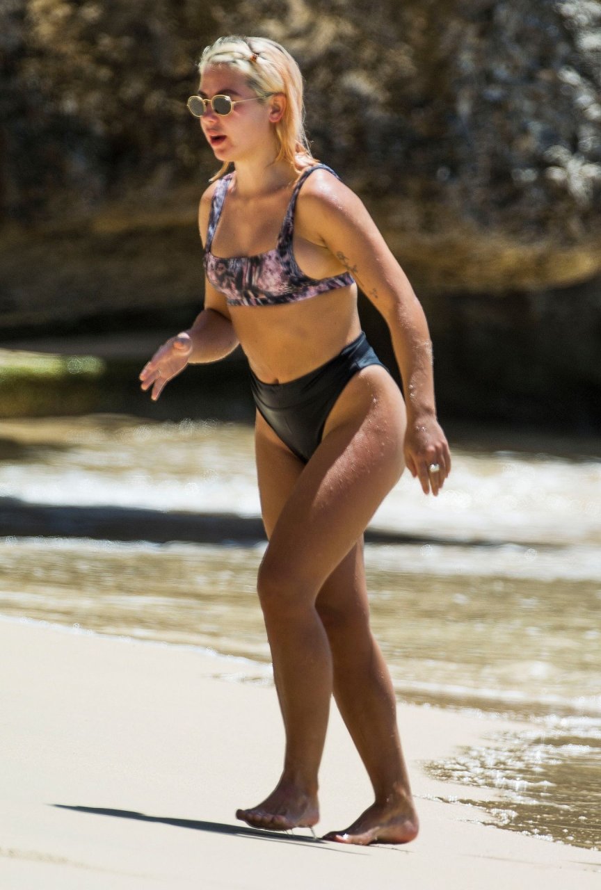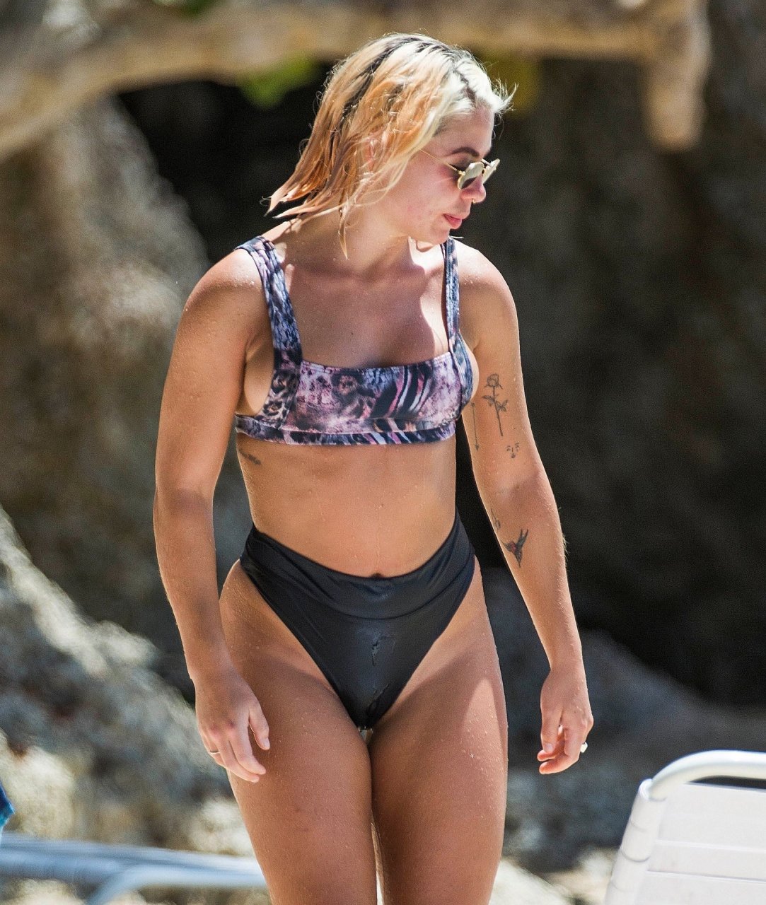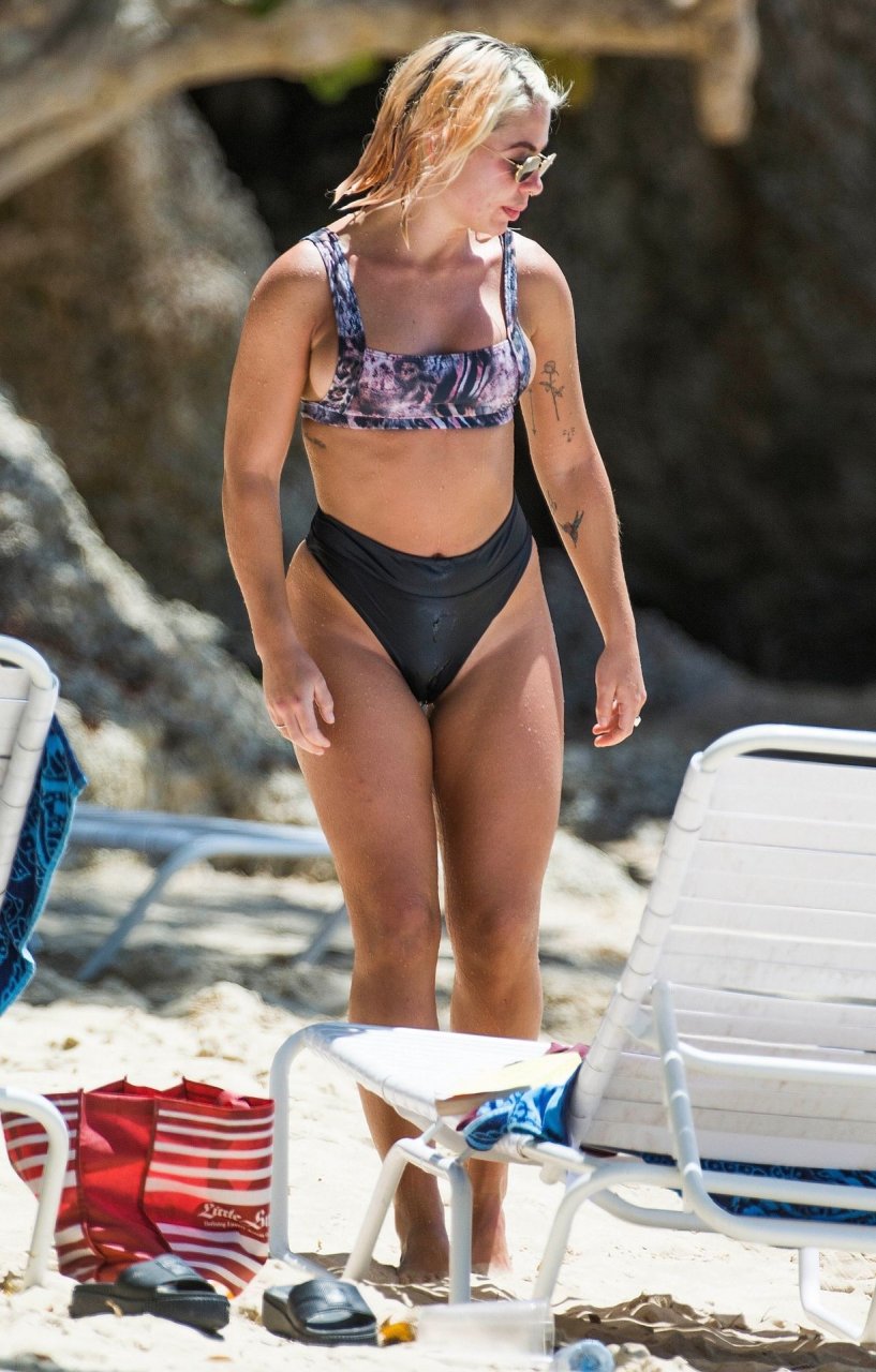 La star de “Made in Chelsea” Jessica Woodley est aperçue sur la plage à la Barbade, 03/05/2019. La personnalité de la télé-réalité affiche sa silhouette tonique dans un bikini string noir et un crop top.