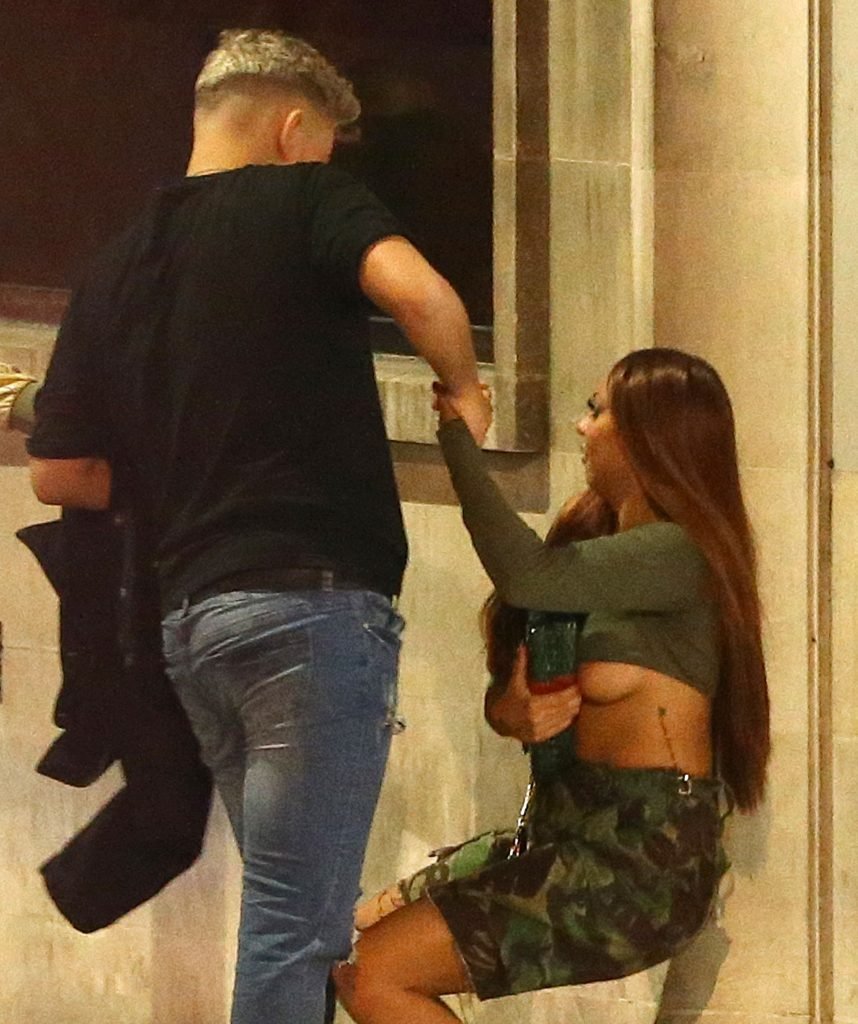 Jesy Nelson ivre a montré son sein en quittant la boîte de nuit Tape à Londres, le 06/02/2018. Jesy Nelson est une star anglaise de la télévision et chanteuse pop de 27 ans qui a gagné en notoriété avec Little Mix.