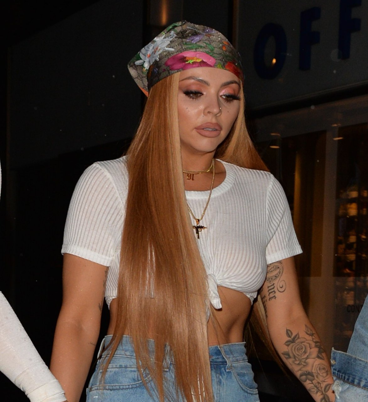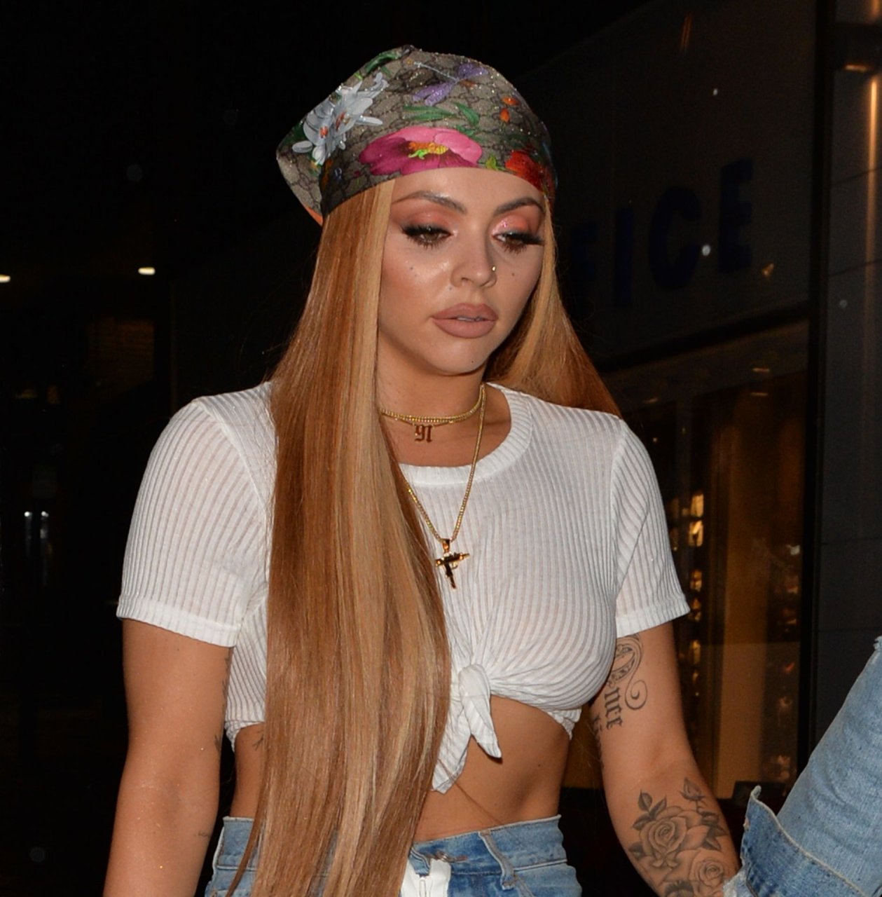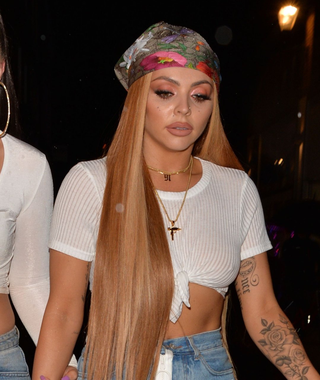 Jesy Nelson affiche ses abdominaux toniques lors d’une sortie nocturne au Bunga Bunga à Covent Garden, Londres, 02/09/2019. La star de “Little Mix” sans soutien-gorge était éblouissante avec un foulard Gucci, un tee-shirt côtelé noué devant et un jean droit.