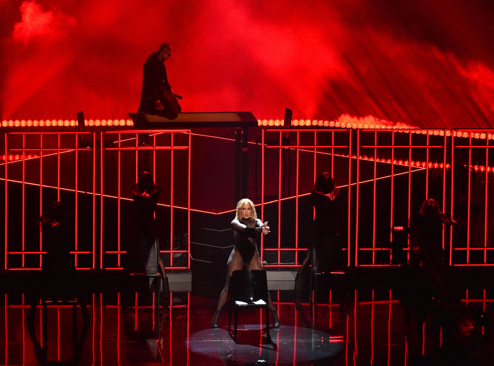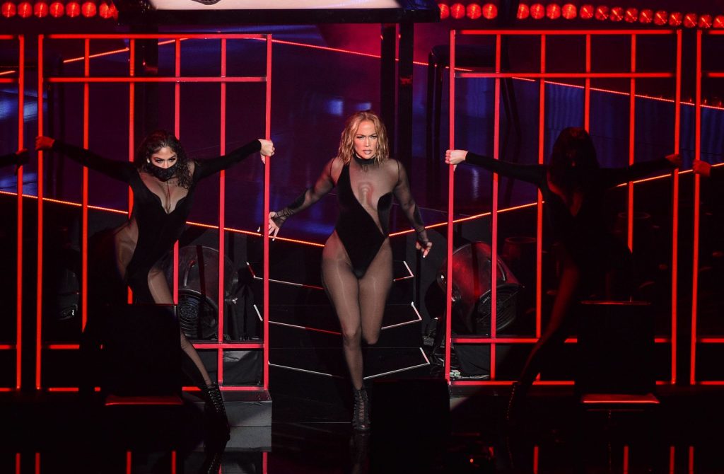 La chanteuse/actrice Jennifer Lopez arrive aux American Music Awards 2020 au Microsoft Theatre de Los Angeles, le 22/11/2020. La superstar exhibe son corps sexy de MILF alors qu’elle performe dans un body noir.