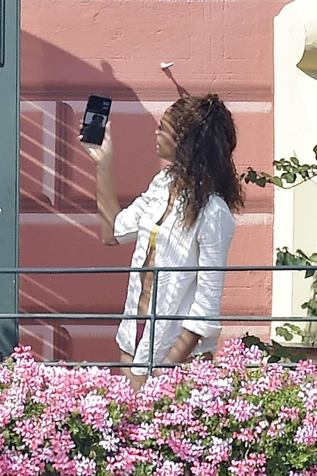 Joan portait une série de tenues légères sous le soleil italien, prenant quelques selfies et faisant monter la température avec sa silhouette svelte et sexy.