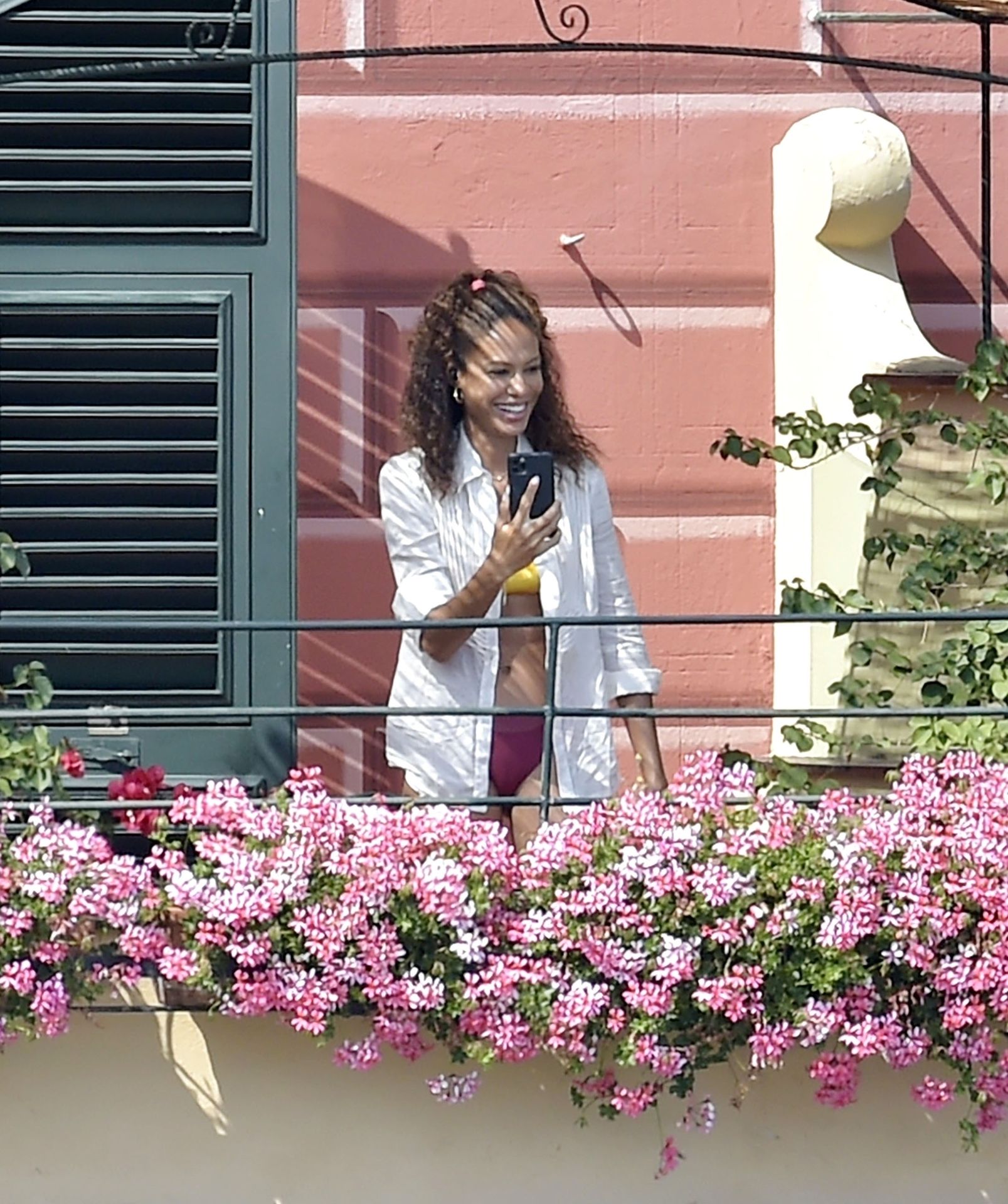 Après avoir récemment appelé l’industrie de la mode à soutenir le mouvement BLM, la supermodèle portoricaine Joan Smalls prend un peu de temps pour se détendre avec son petit ami Henry Junior Chalhoub lors de leurs vacances romantiques à Portofino, le 22/07/2020.