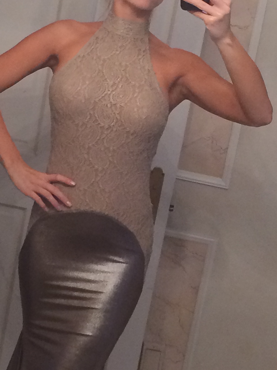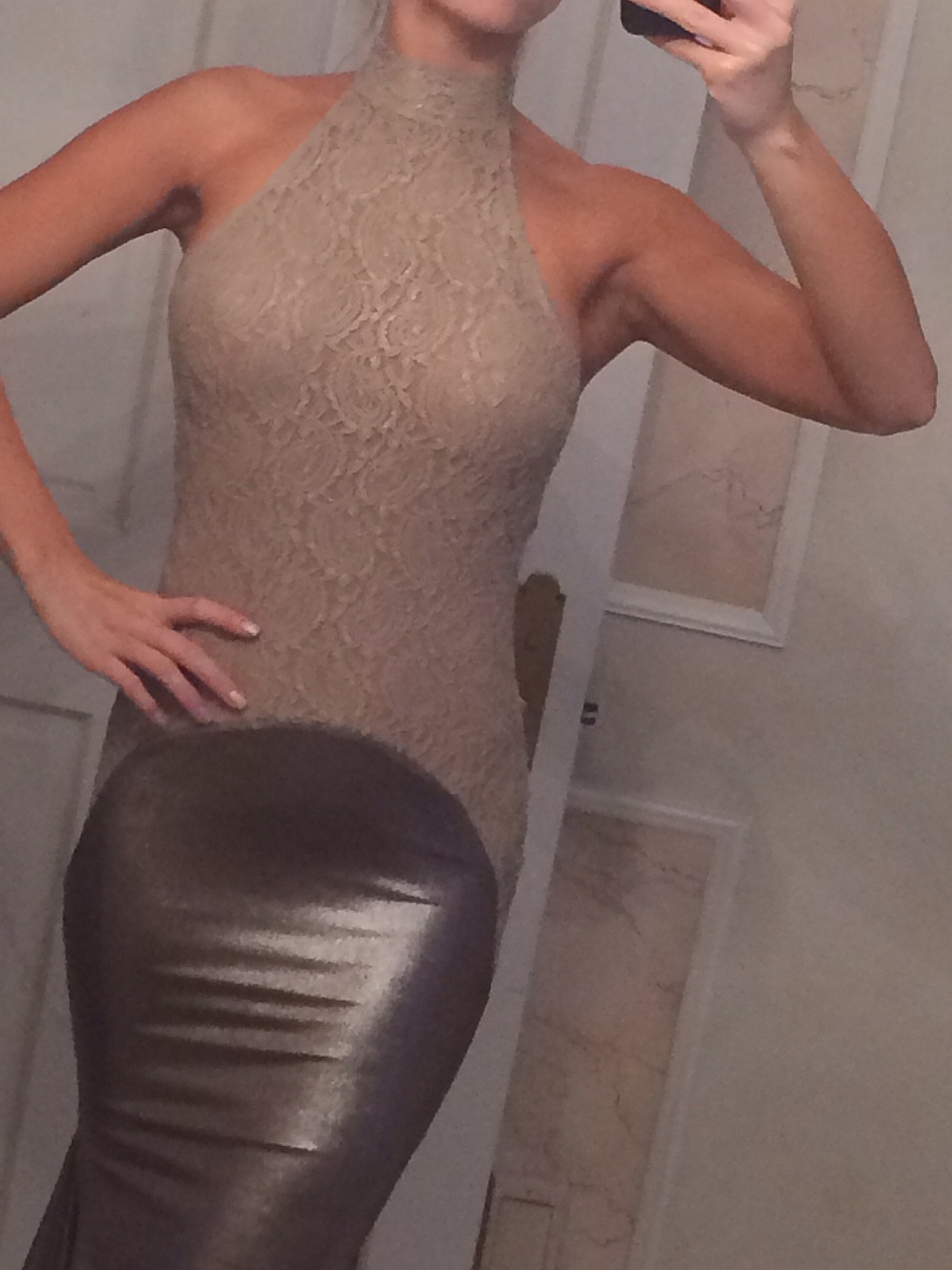 Nue ? Ouais, c’est ça. Pas de photos de chatte ou de trou du cul = pas nue. Par contre, belles nichons.