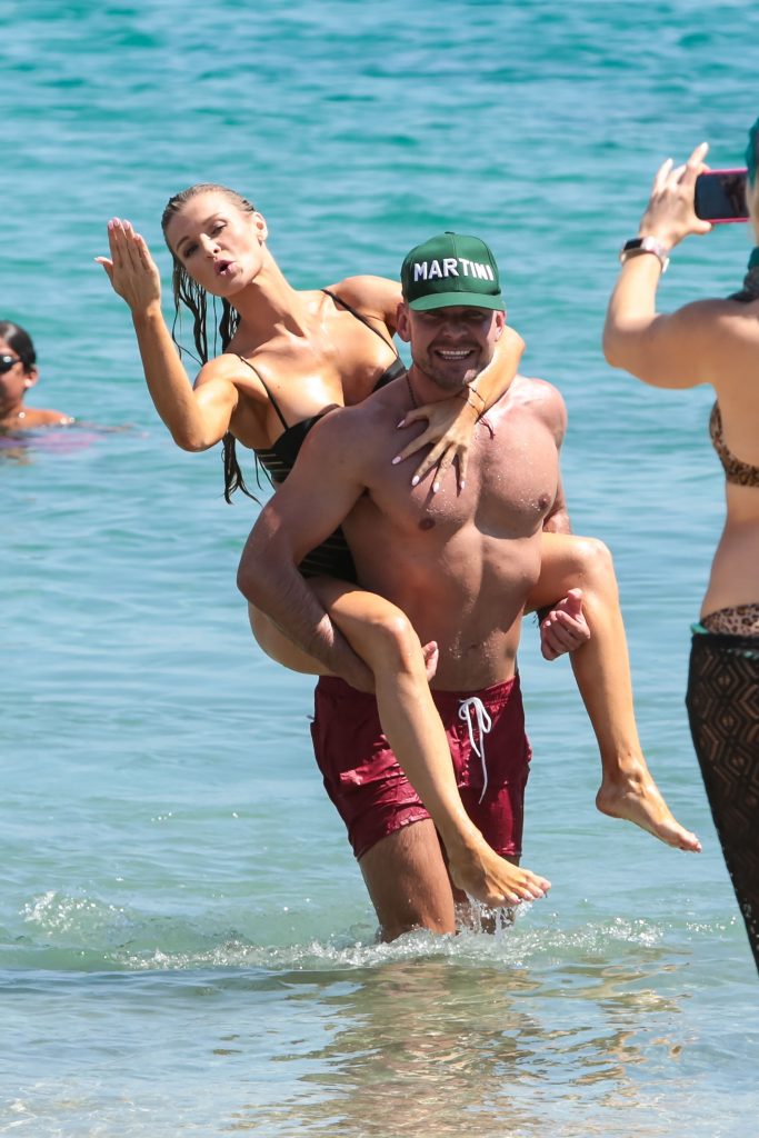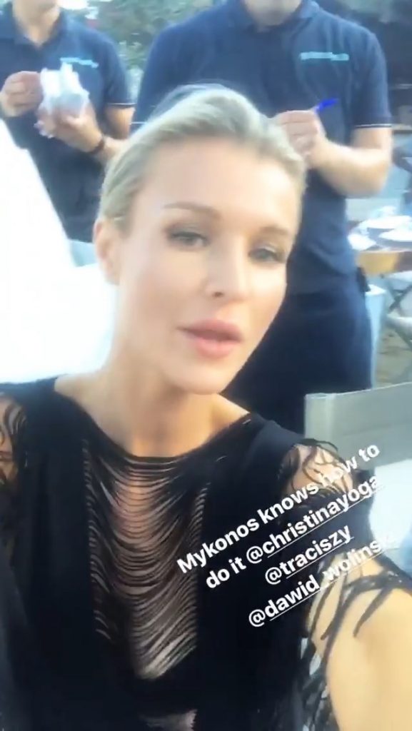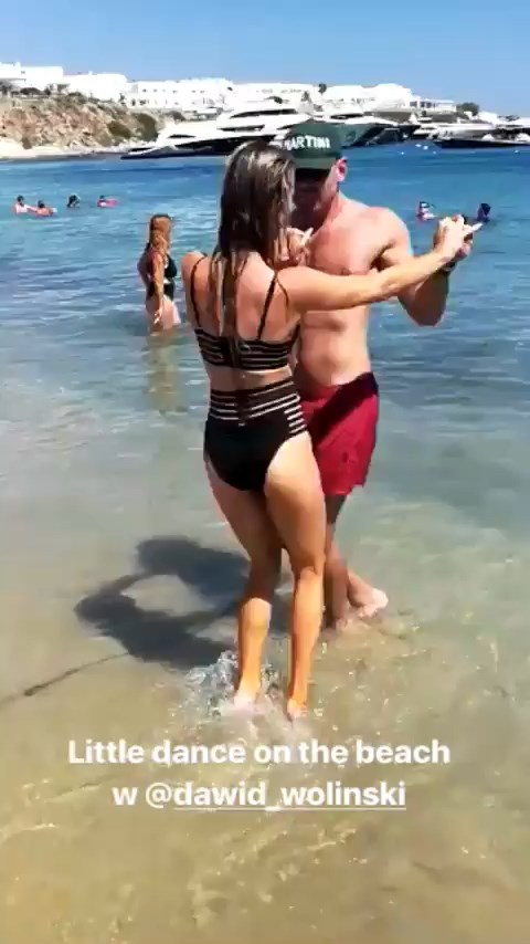 La actrice et mannequin de 38 ans Joanna Krupa et Dawid Wolinski dansent et s’amusent sur l’île de Mykonos, Grèce, 19/07/2017.