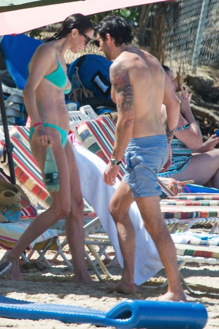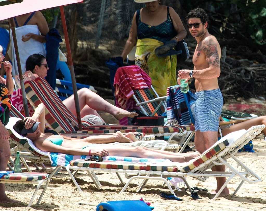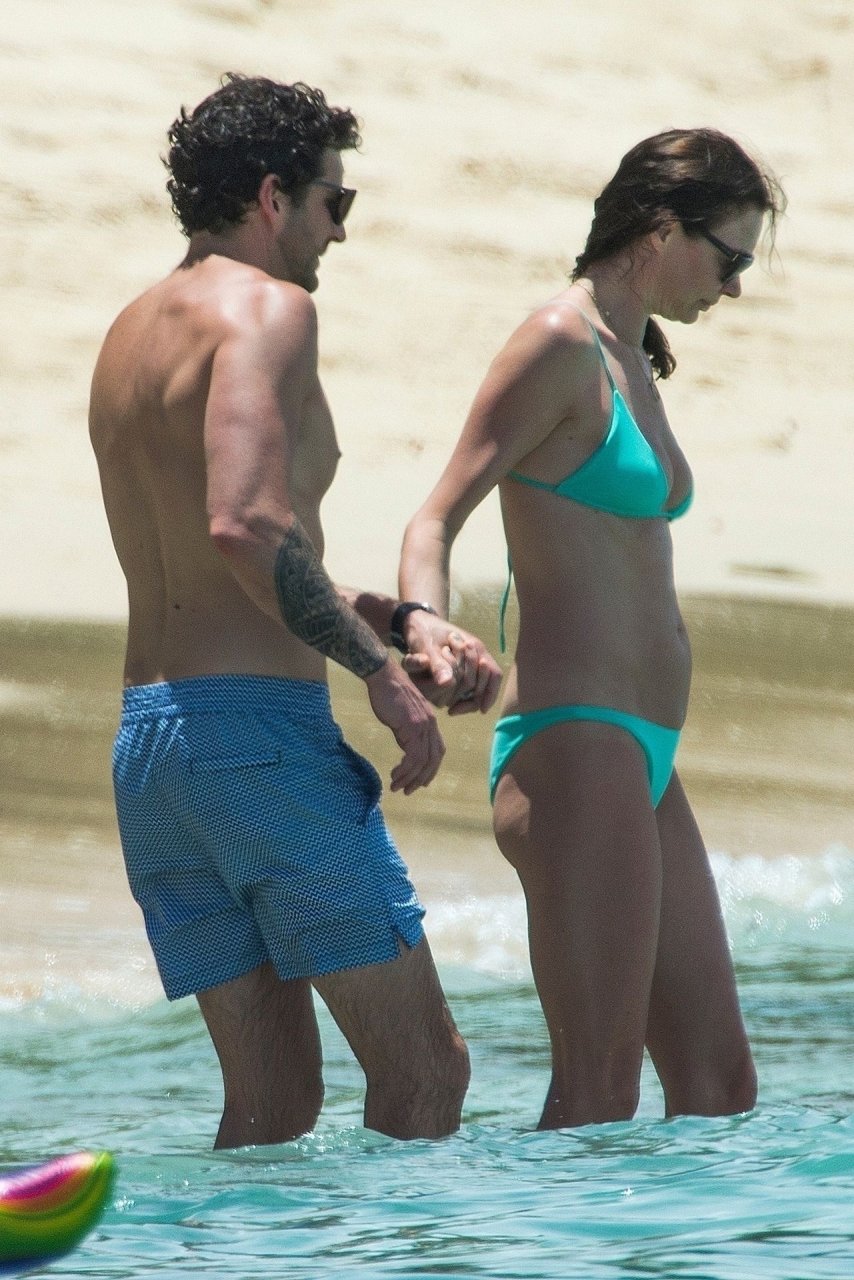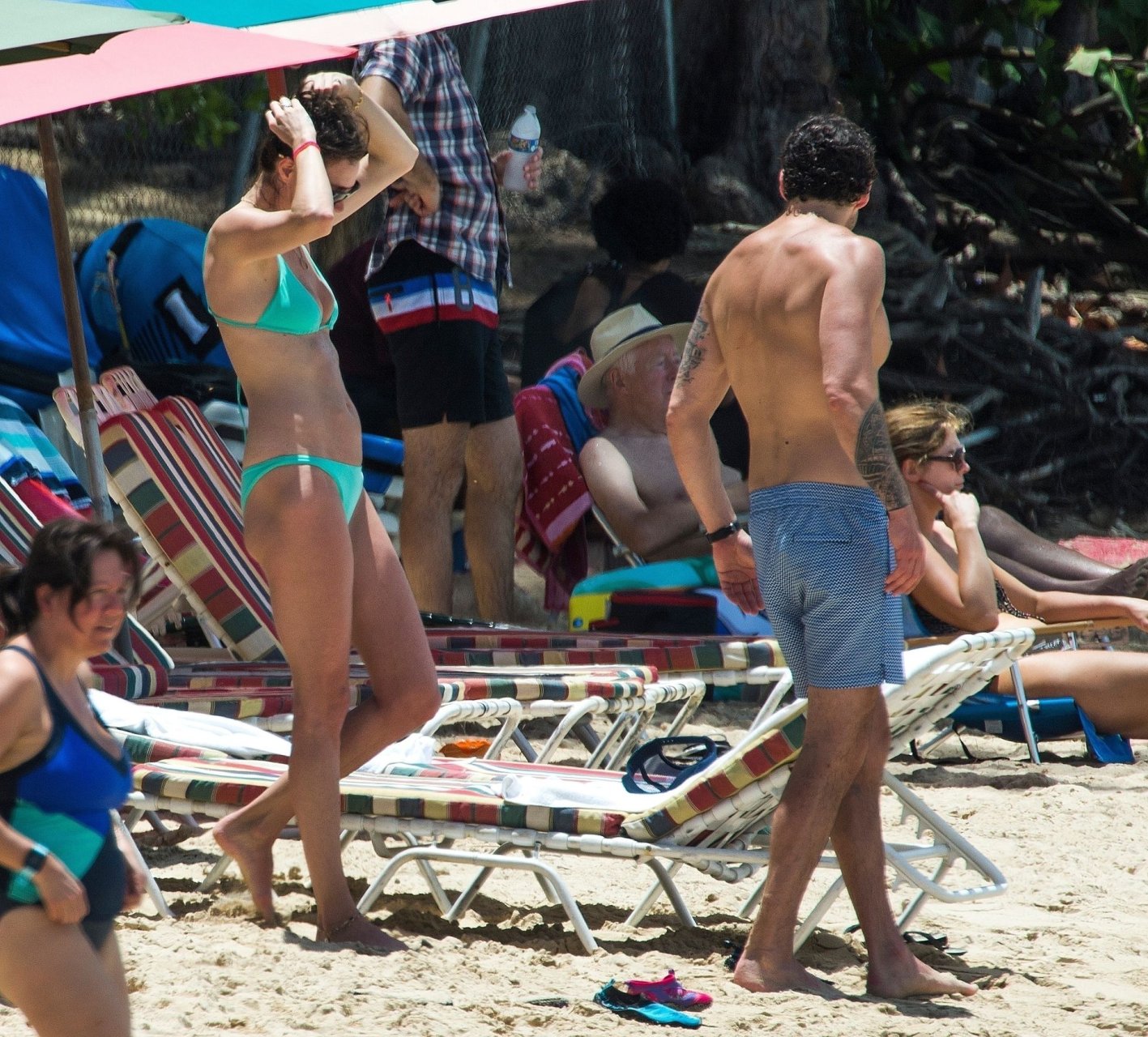 L’ancienne mannequin britannique Jodie Kidd (40 ans) et son petit ami Joesph Bates ont été aperçus sur la plage à la Barbade, le 10/04/2019.