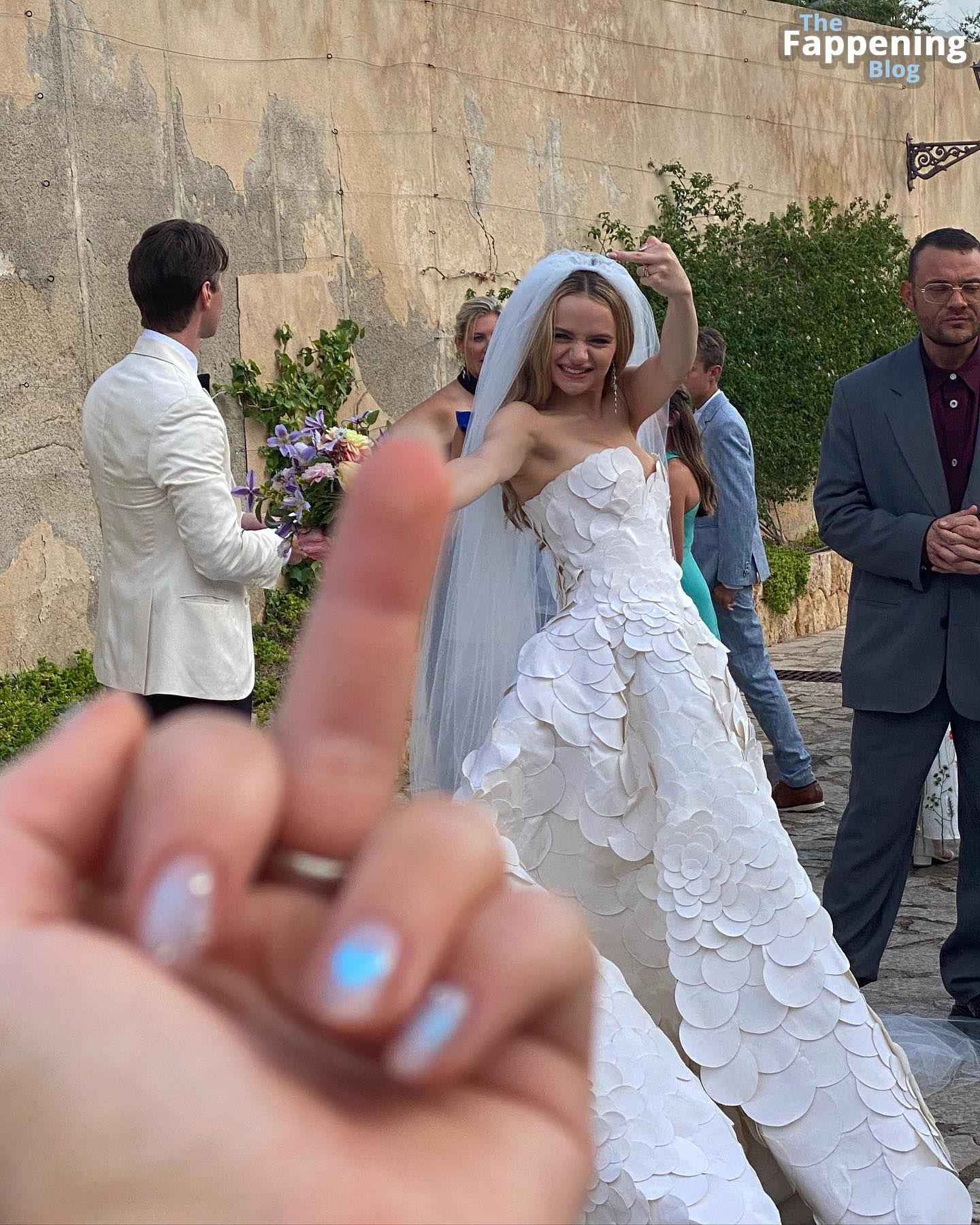 Joey King affiche un décolleté ravageur avec ses formes généreuses dans une robe de mariée sexy et décolletée, aussi séduisante que jamais alors qu’elle se marie.