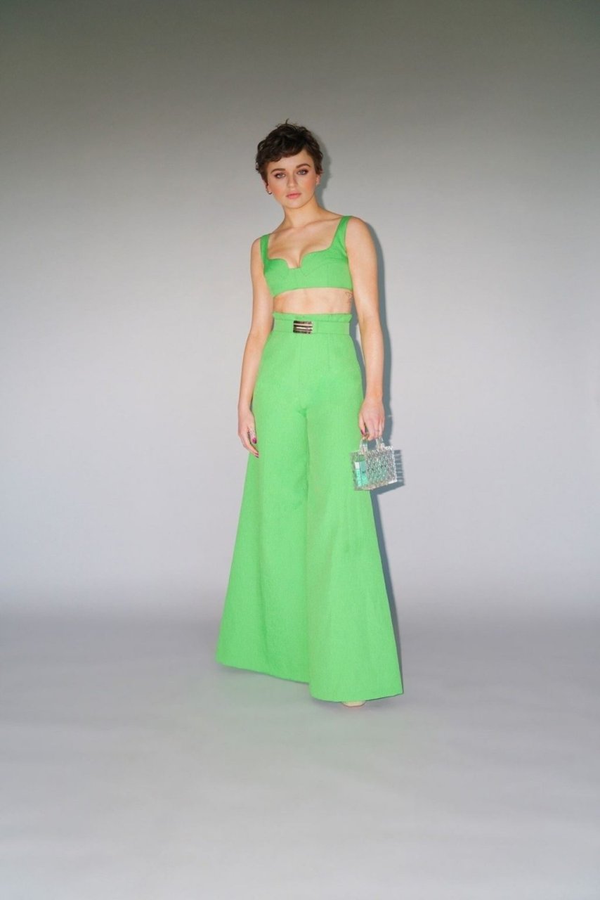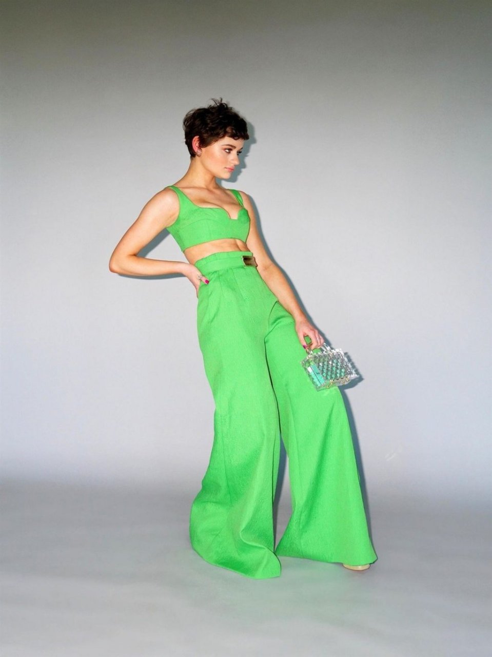 Cheveux de vieille dame et un affreux tailleur-pantalon vert. Est-ce qu'elle canalise sa Hillary Clinton intérieure ?