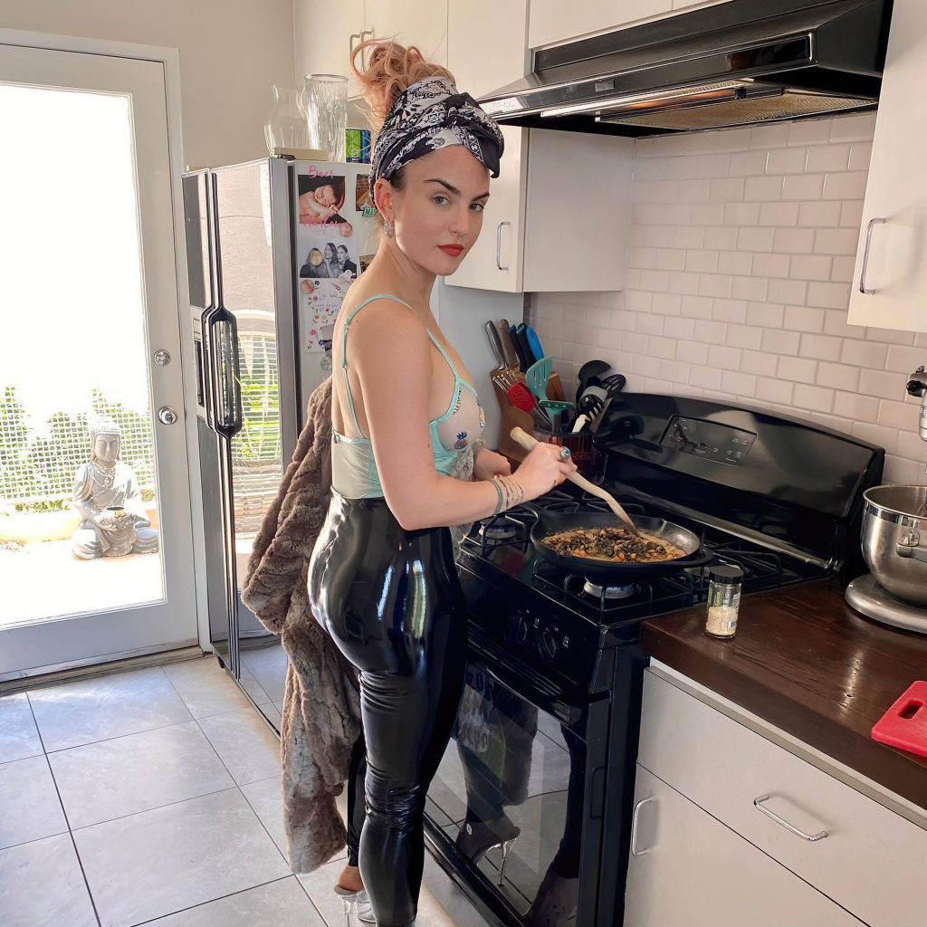 Comme beaucoup de célébrités, elle affiche une posture vertueuse en portant un masque, car les célébrités sont des agents de propagande.