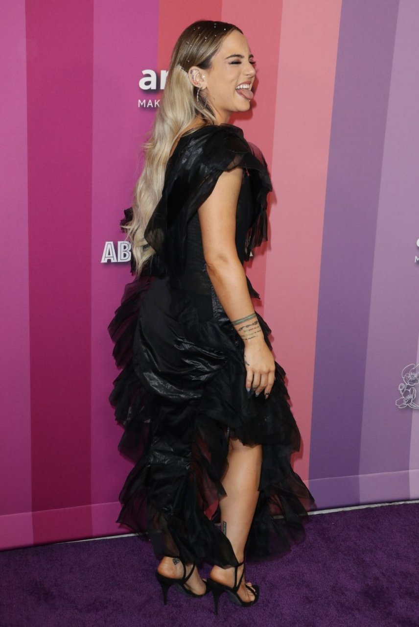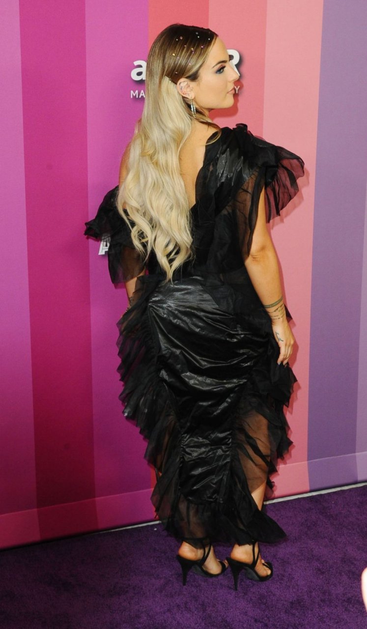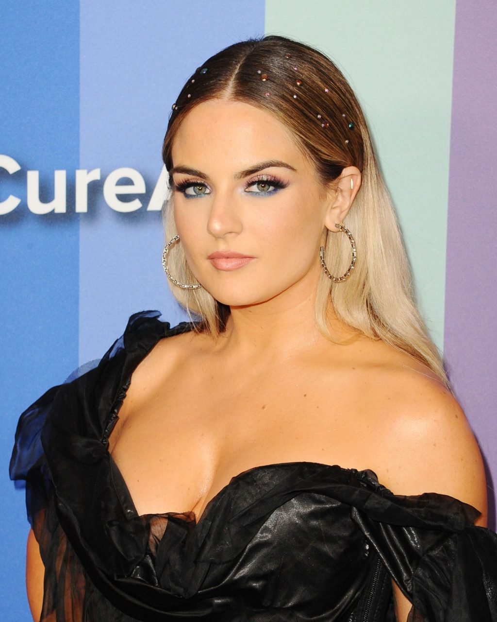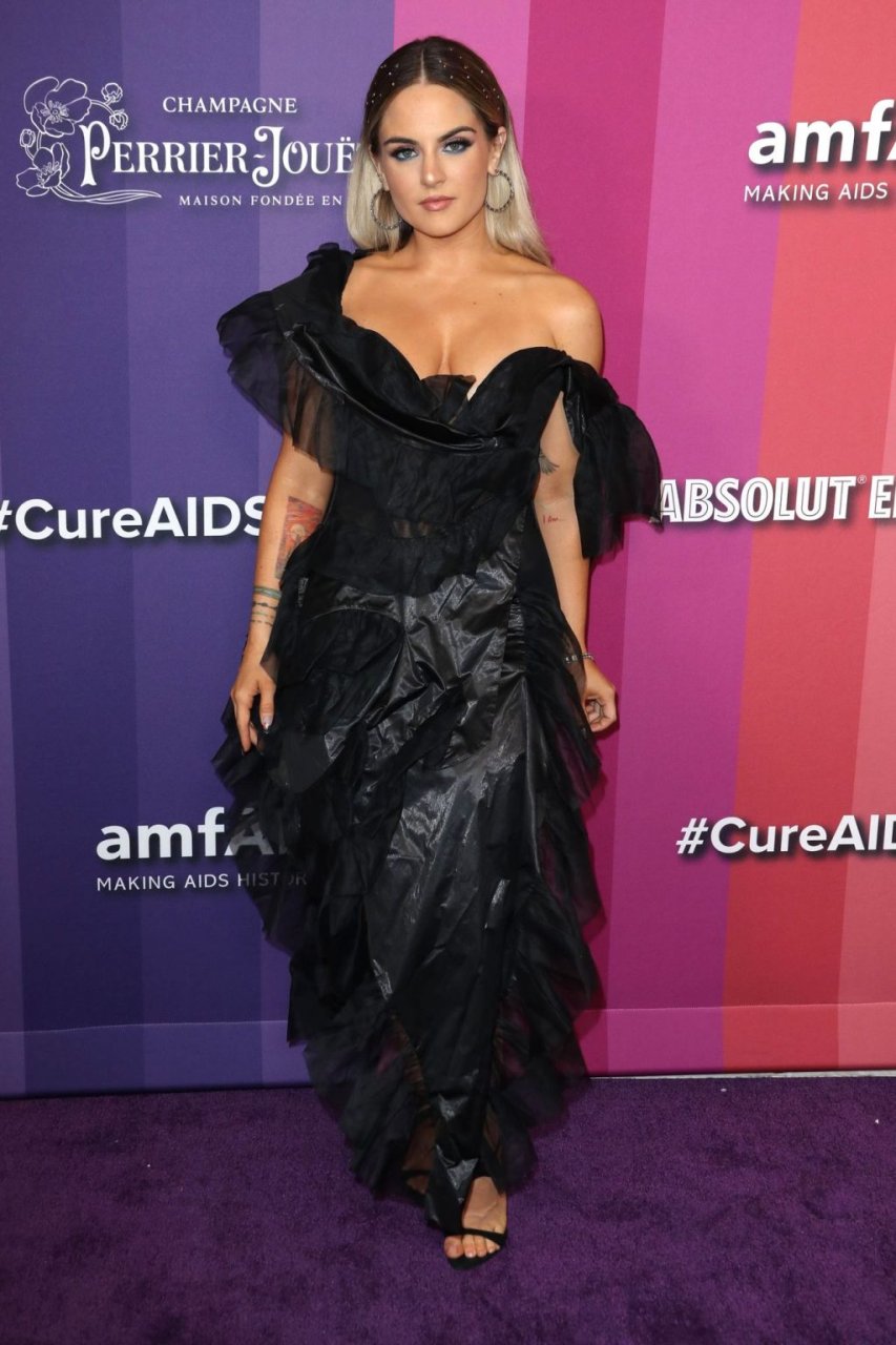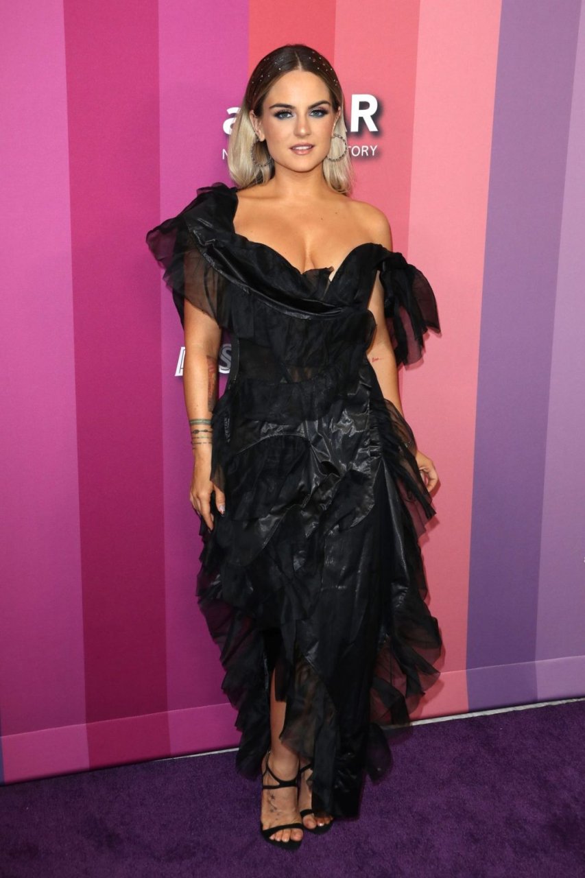 La chanteuse américaine Joanna Noëlle Levesque (alias JoJo) a été vue en robe noire, exhibant son décolleté lors du gala amfAR 2019 à Los Angeles, qui s’est tenu au Milk Studios, le 10/10/2019.