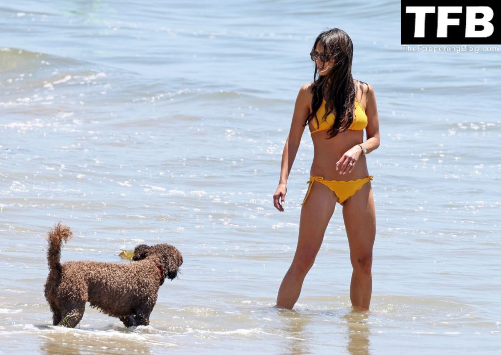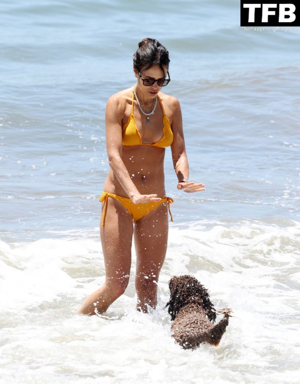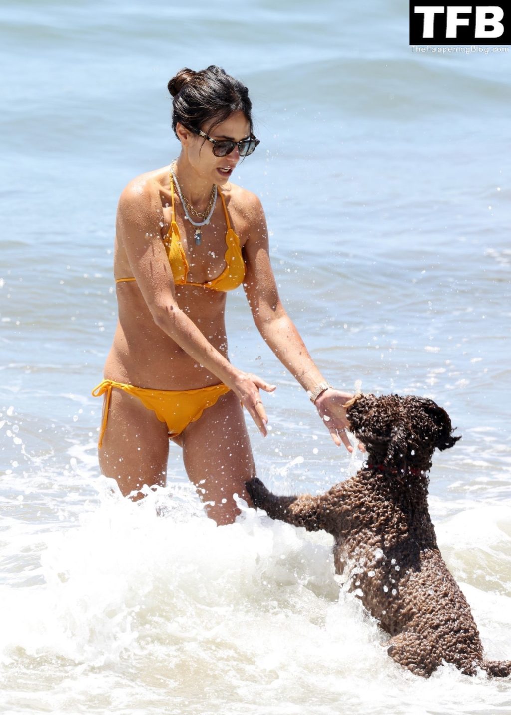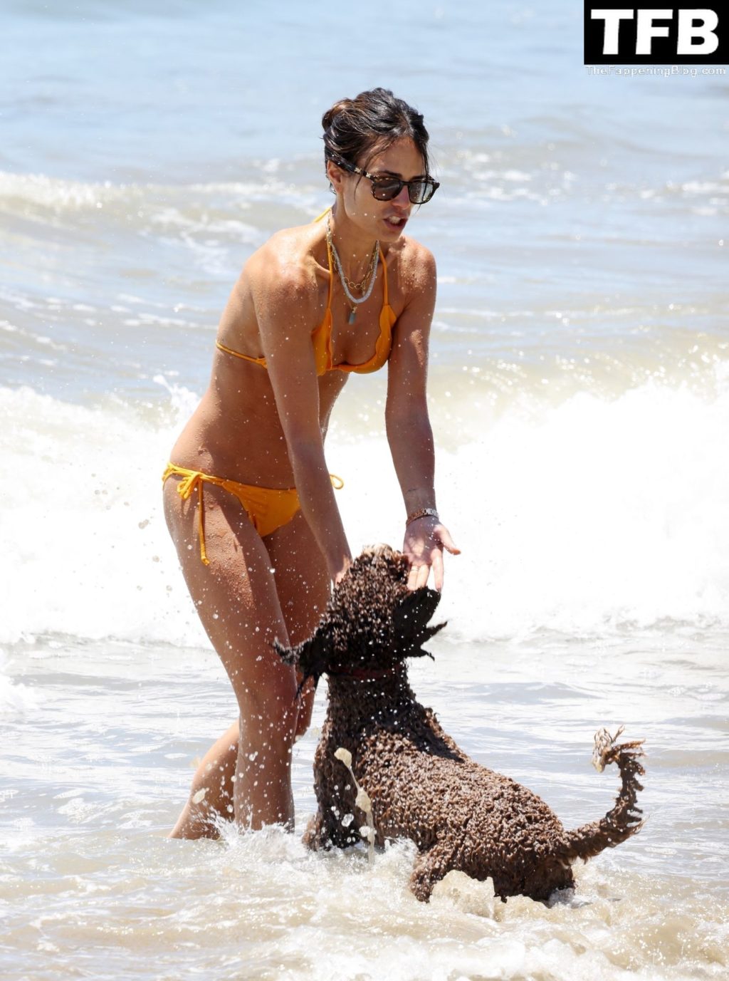Jordana Brewster montre sa bague de fiançailles et son corps en bikini lors du week-end du 4 juillet. Elle a été aperçue sur la plage de Santa Monica en train de jouer avec un chien dans l’eau alors que son ex Andrew Form épouse Alexandra Daddario à la Nouvelle-Orléans.