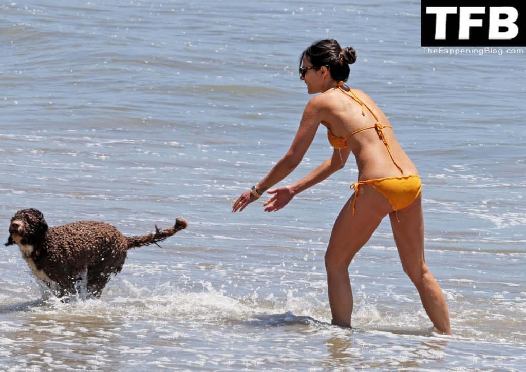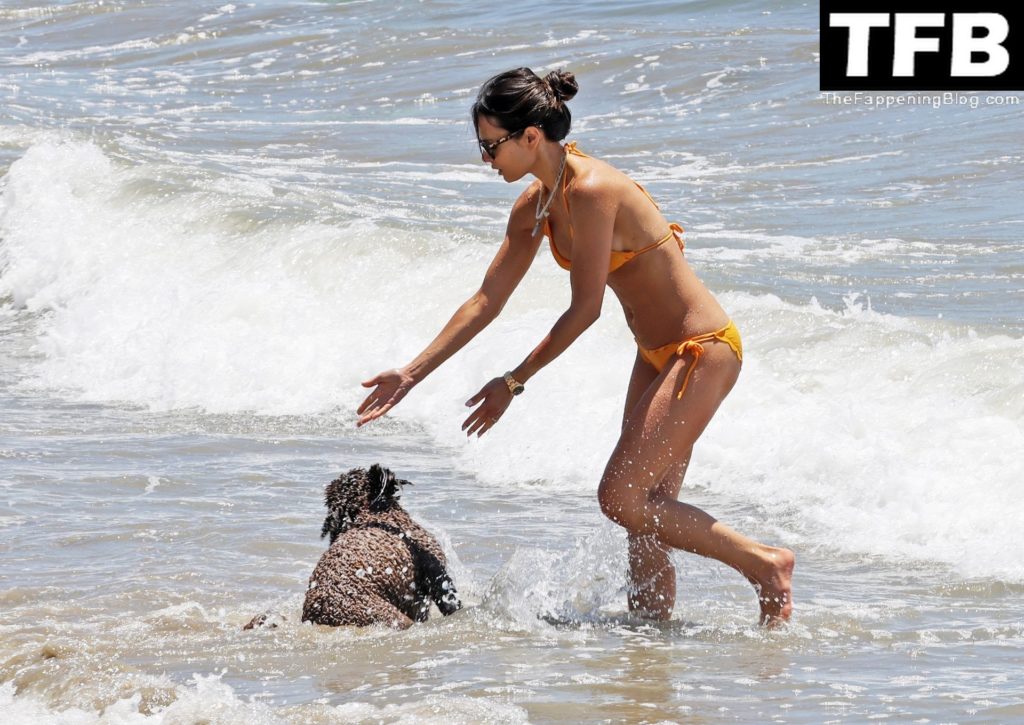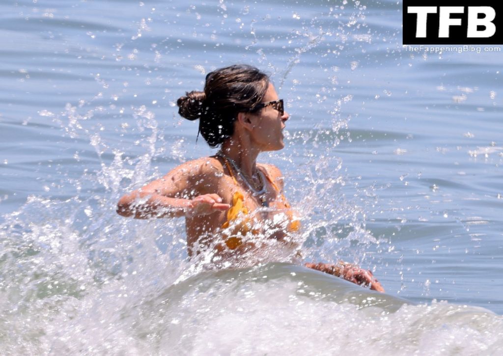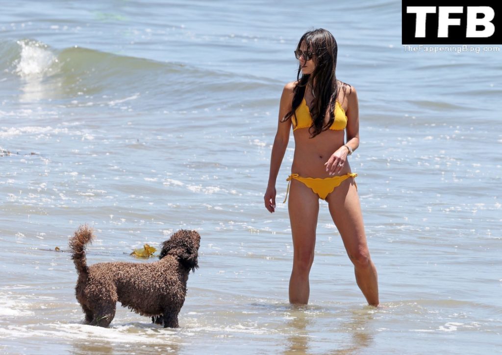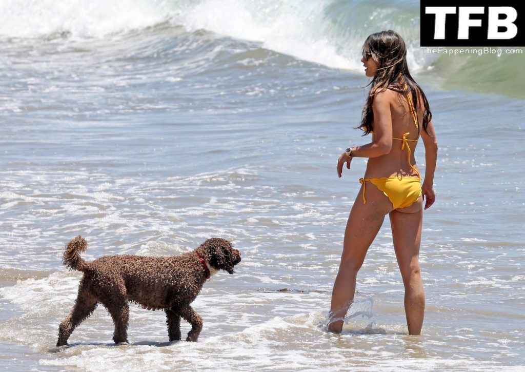 Jordana Brewster montre sa bague de fiançailles et son corps en bikini lors du week-end du 4 juillet. Elle a été aperçue sur la plage de Santa Monica en train de jouer avec un chien dans l’eau alors que son ex Andrew Form épouse Alexandra Daddario à la Nouvelle-Orléans.