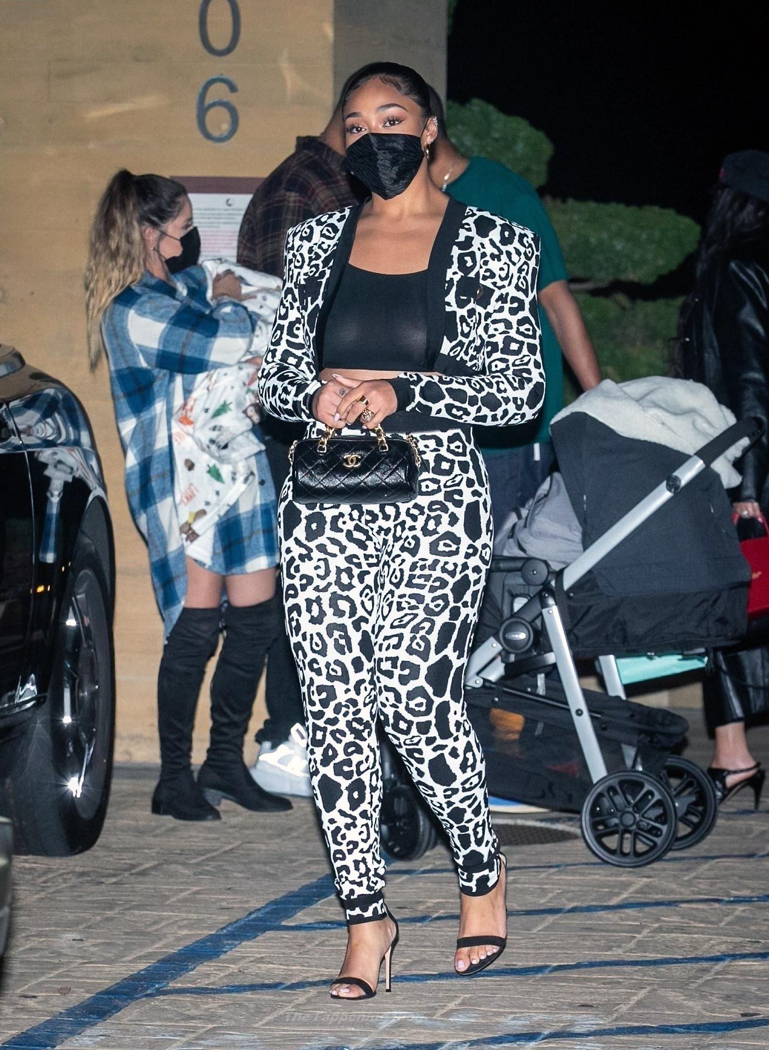 All right, guys, so here are some photos showing miss Jordyn Woods’s tits in a see-through top! She wore this outfit while out celebrating her mom’s birthday in Malibu. She didn’t forget to put her mask on, but she left her bra at home!