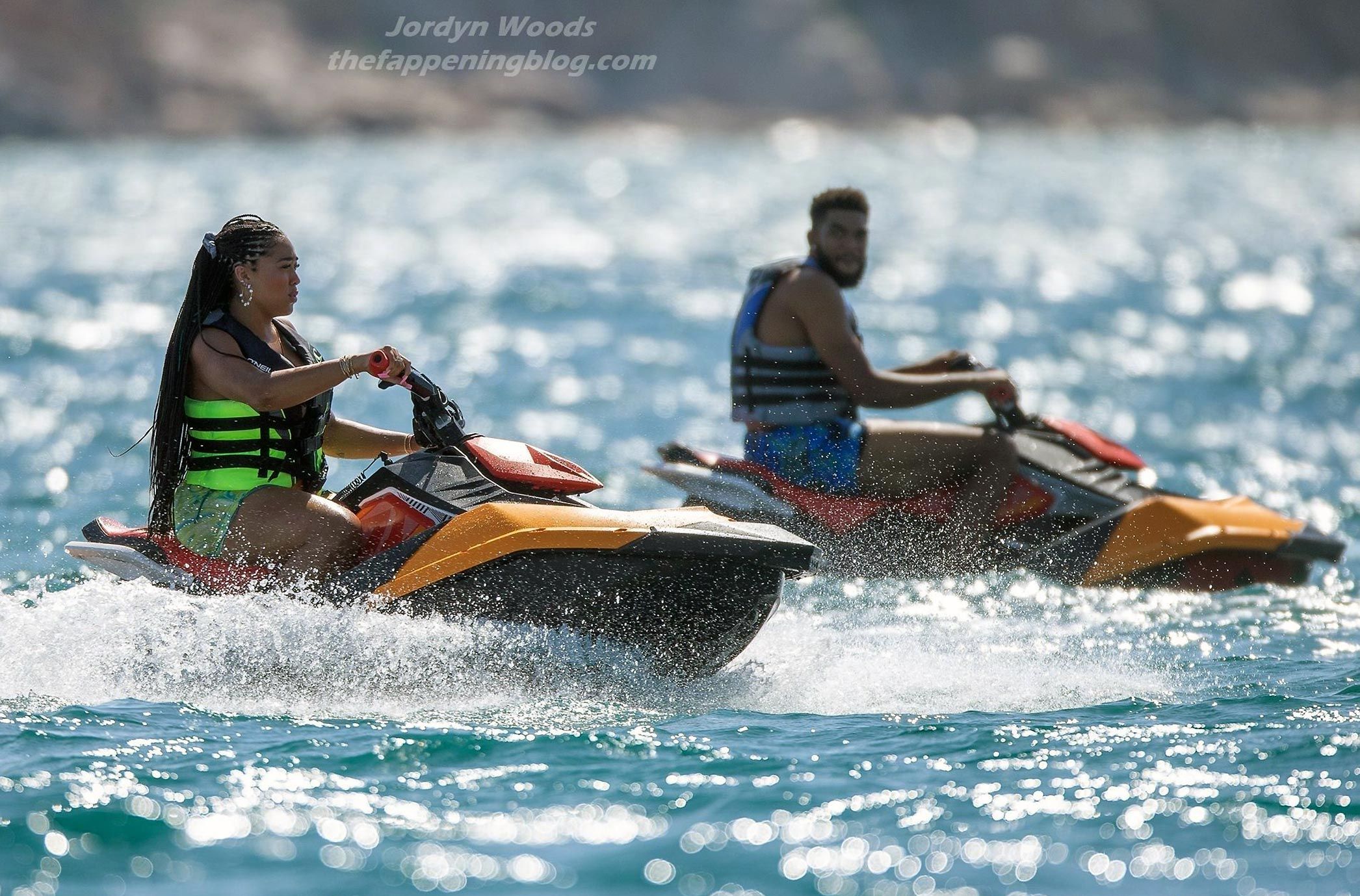 Jordyn Woods celebrated her birthday with alleged boyfriend Karl-Anthony Towns in Mexico on September 23, 2020. Jordyn was showered with luxury bags worth over $50 000 from the Minnesota Timberwolves player, including an ostrich Hermes Birkin, a second Birkin, and a crystal-covered Chanel case. Jordyn’s birthday celebration featured a black and red theme, complete with personalized “Woods” jerseys bearing the number 23! Jordyn was also sent a signed Michael Jordan jersey by Towns, which sells for about $8 000. Jordyn is in Cabo for a holiday, and the couple was seen relaxing on a yacht, jet skiing, and getting together during the day.