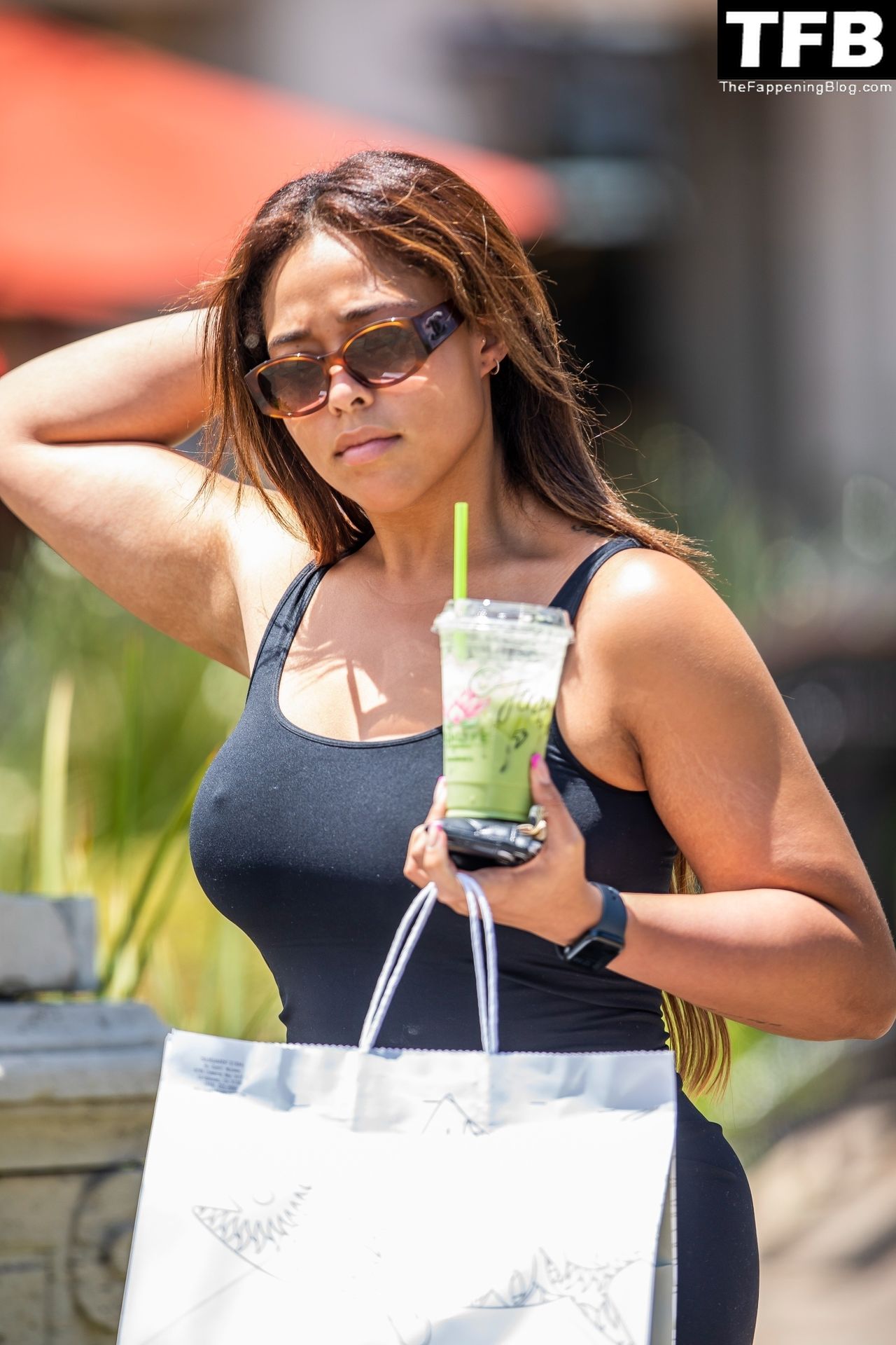 Jordyn Woods a été vue en train de récupérer des sushis Sugarfish et un smoothie Mystic chez Sunlife Organics à Calabasas, le 01/08/2022. Elle portait une robe noire moulante lors de cette sortie en solo.