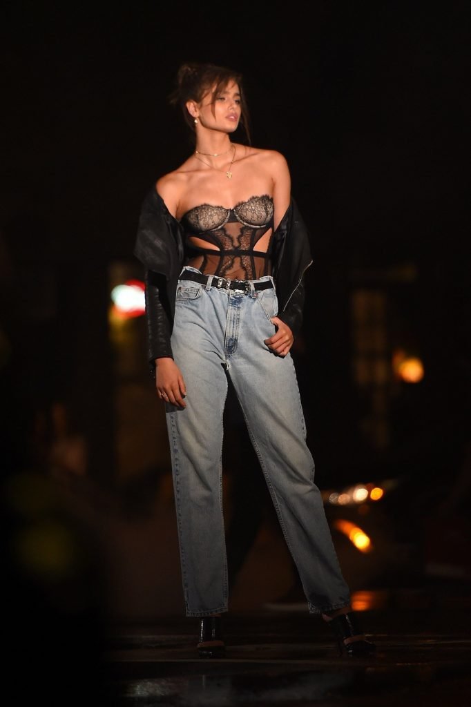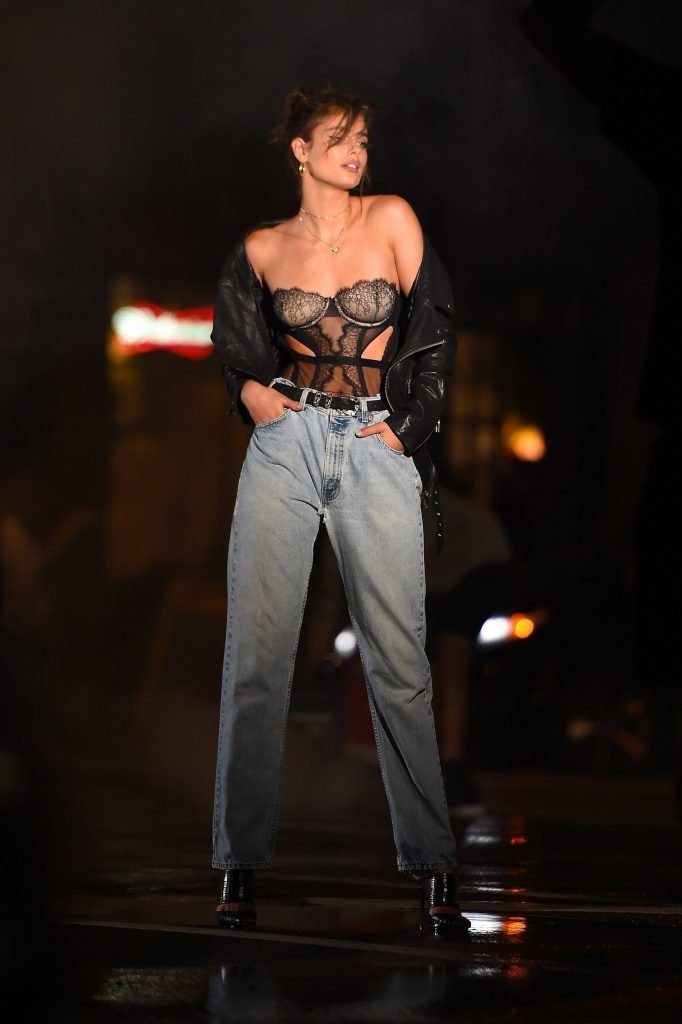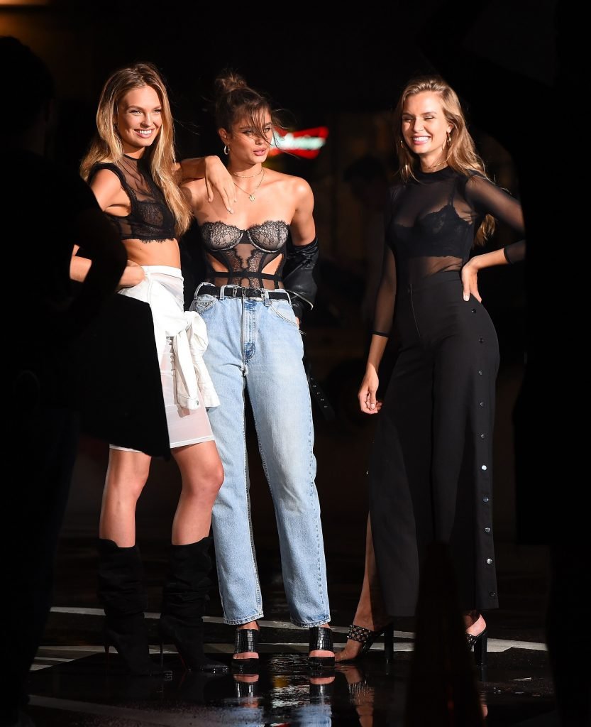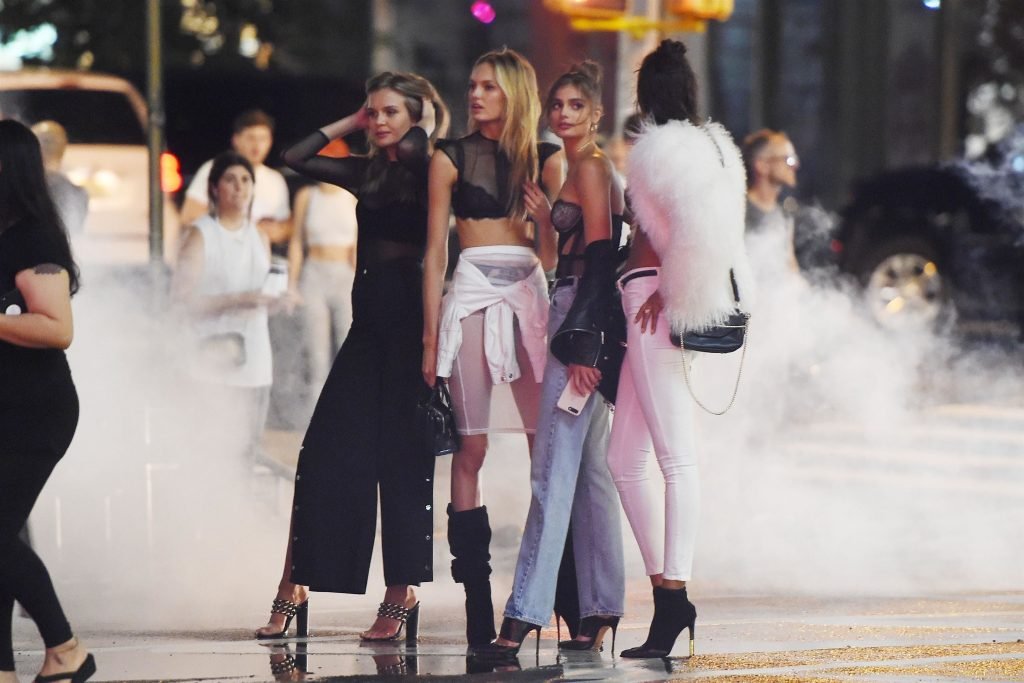 Supermodels Josephine Skriver, Jasmine Tookes, Romee Strijd, Lais Ribeiro font une séance photo nocturne tardive à Soho, New York, 17/07/2017.
