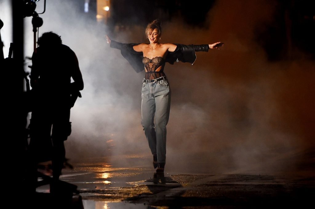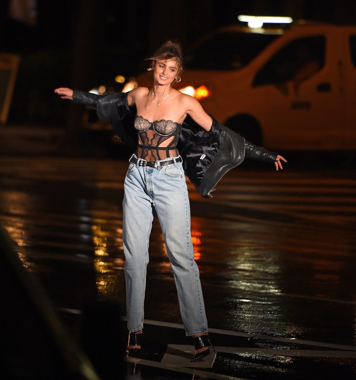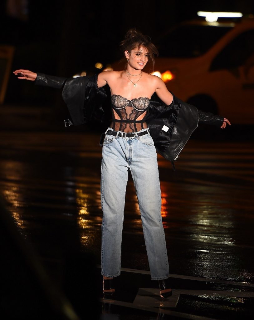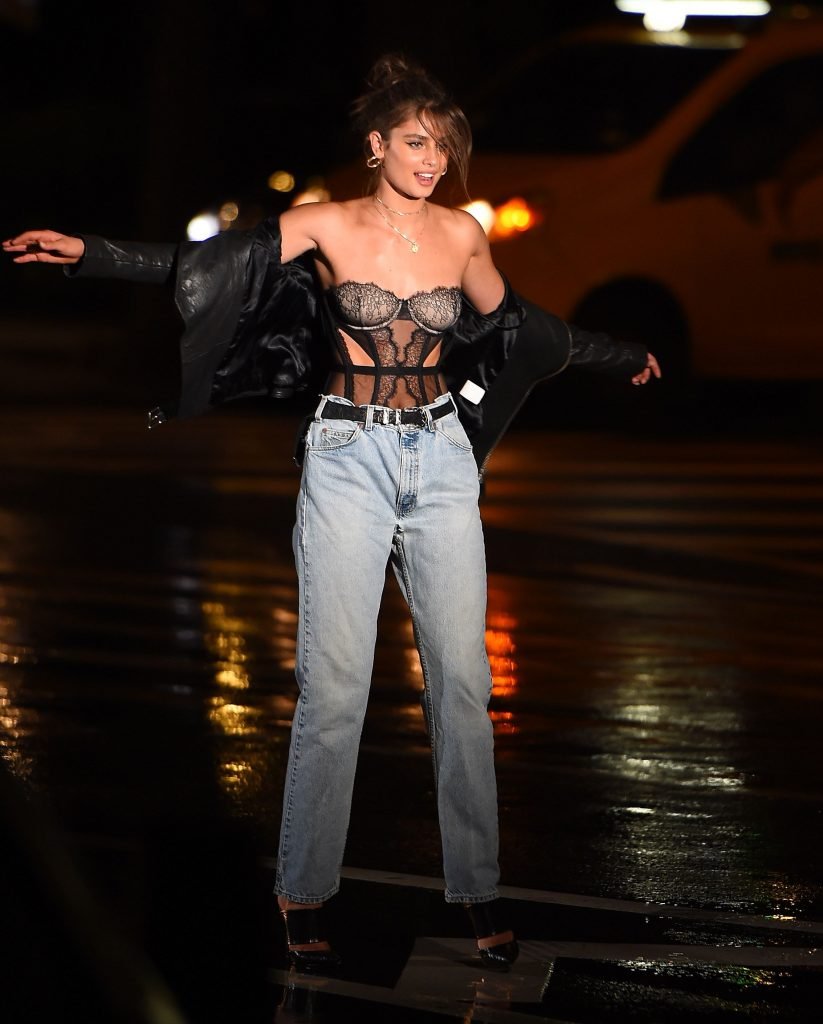 Supermodels Josephine Skriver, Jasmine Tookes, Romee Strijd, Lais Ribeiro font une séance photo nocturne tardive à Soho, New York, 17/07/2017.