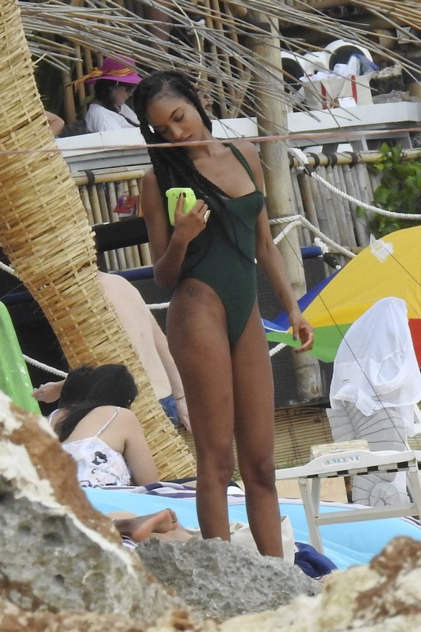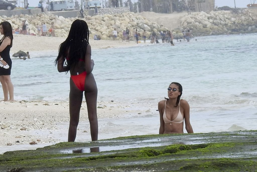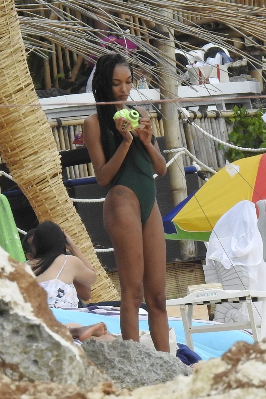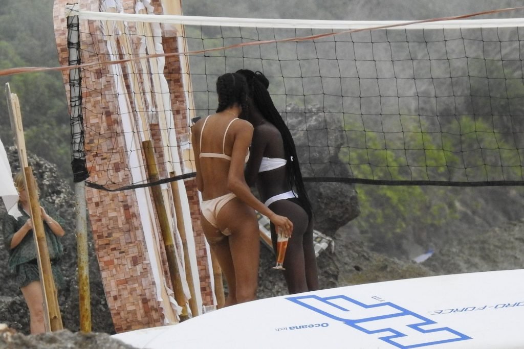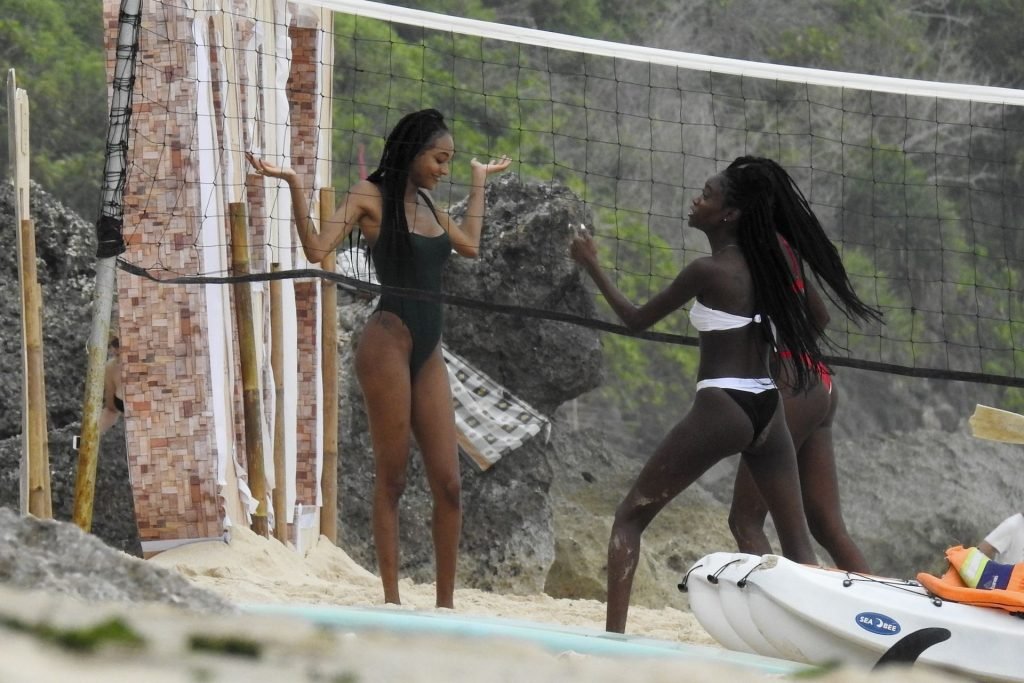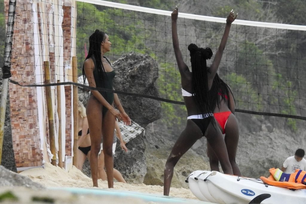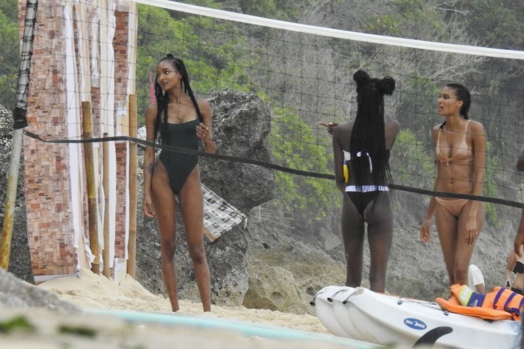 Les supermodels Jourdan Dunn et Cindy Bruna exhibent leurs physiques athlétiques dans des maillots de bain élégants tout en profitant d’une journée amusante avec des amis sur la plage à Bali, 01/03/2019.