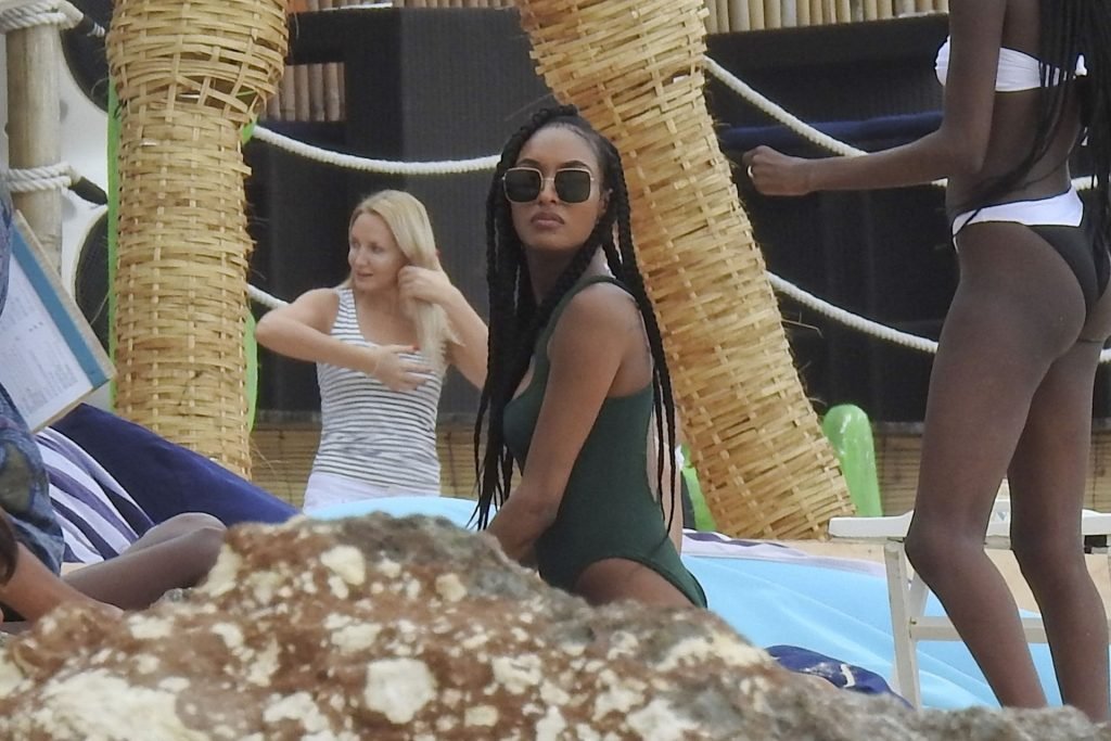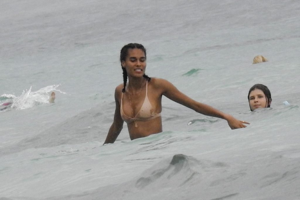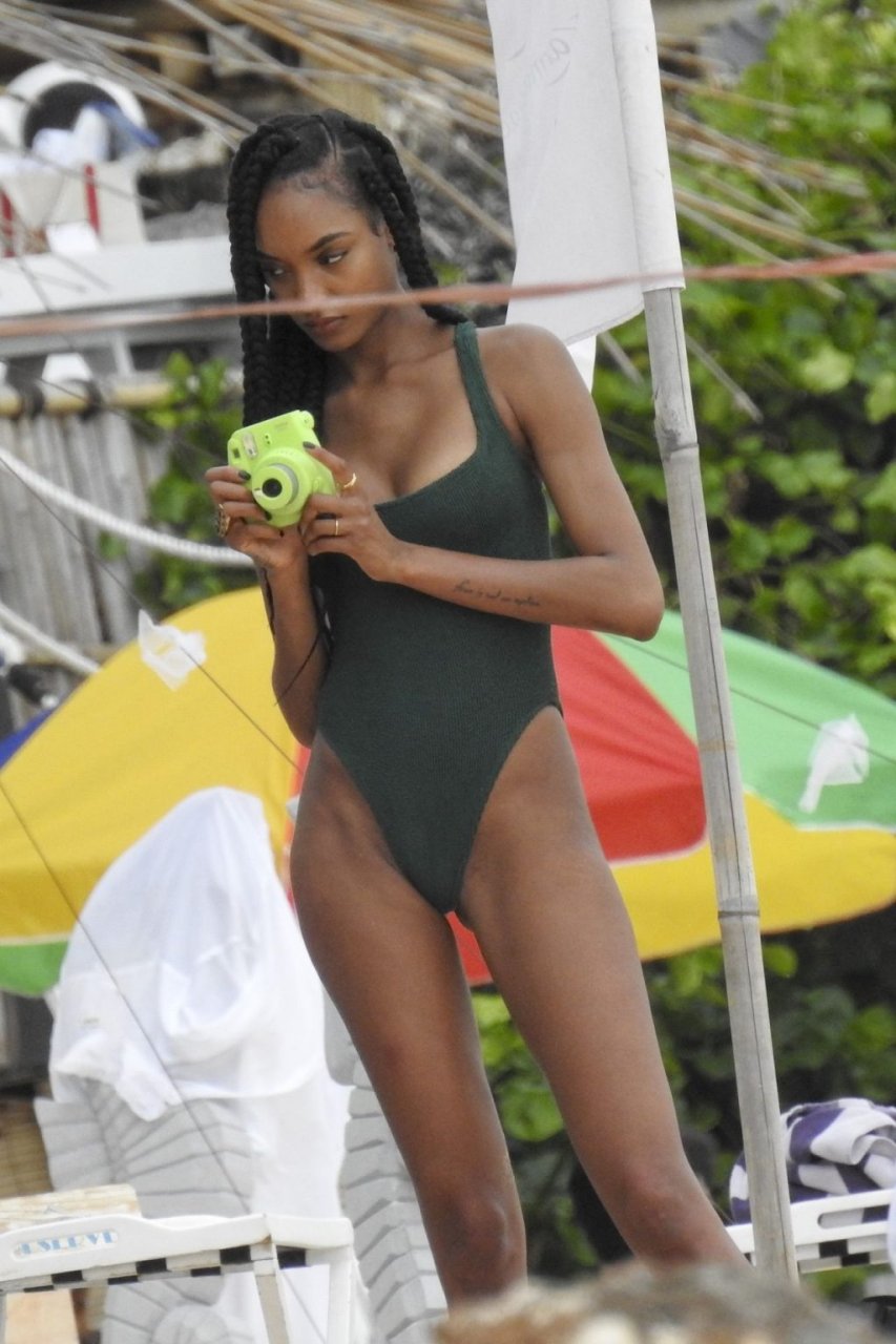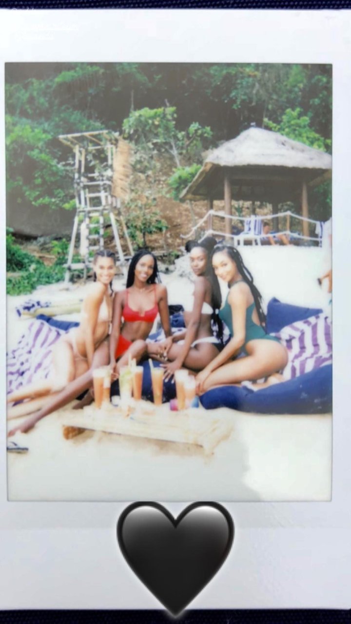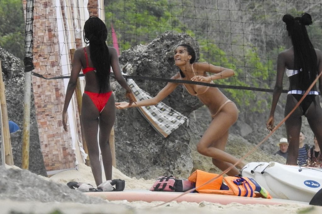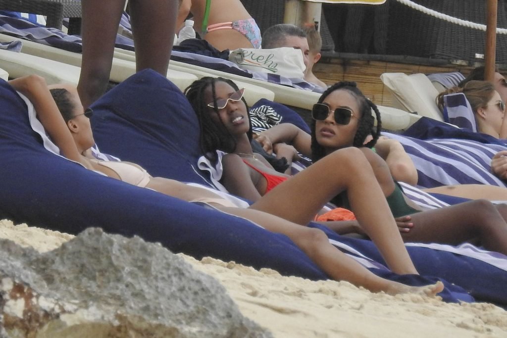 Les supermodels Jourdan Dunn et Cindy Bruna exhibent leurs physiques athlétiques dans des maillots de bain élégants tout en profitant d’une journée amusante avec des amis sur la plage à Bali, 01/03/2019.