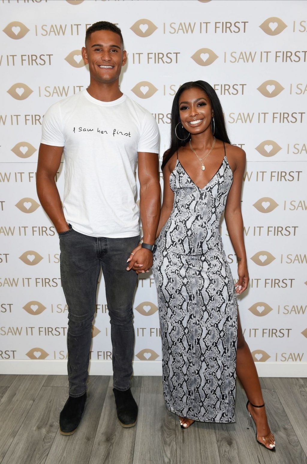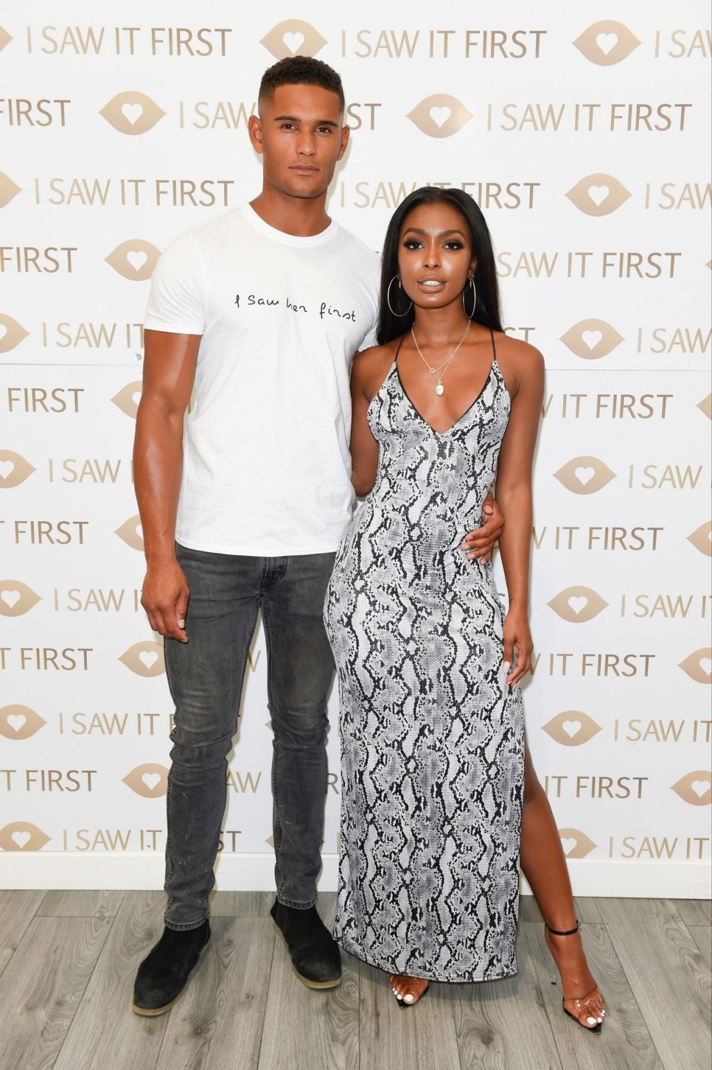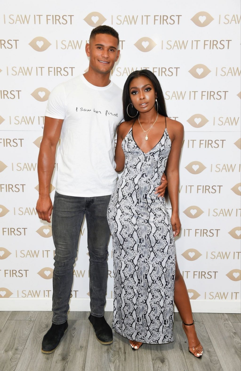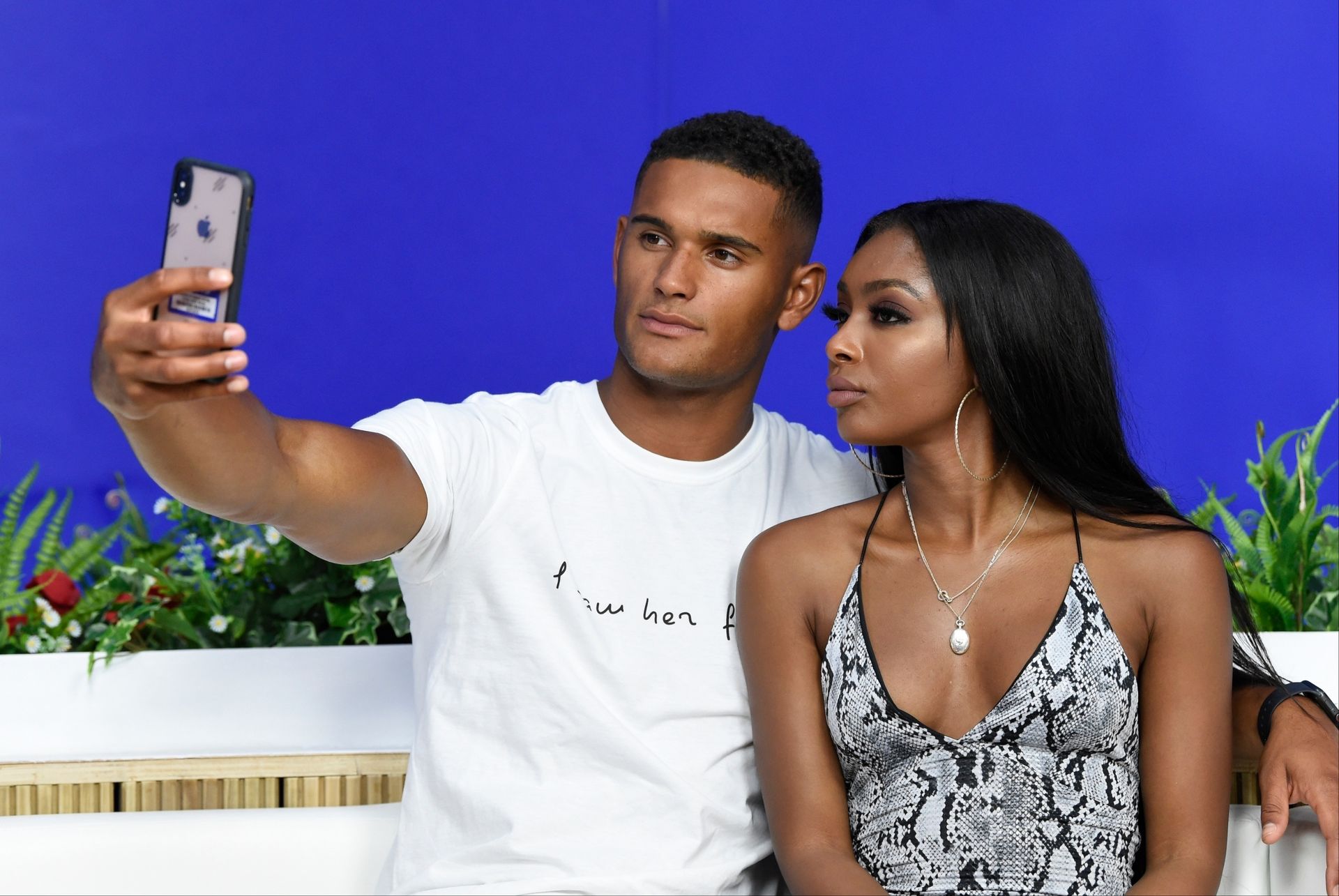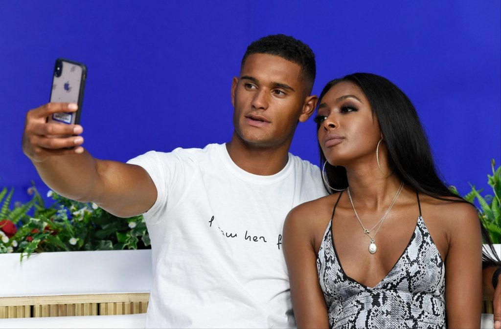 Le couple de “Love Island” Danny et Jourdan Riane Hammond affichent une très belle complicité amoureuse alors qu’ils prennent le contrôle des réseaux sociaux de I Saw It First pour la journée dans leur siège à Manchester, le 15/07/2019.