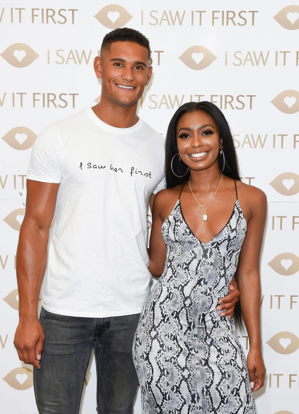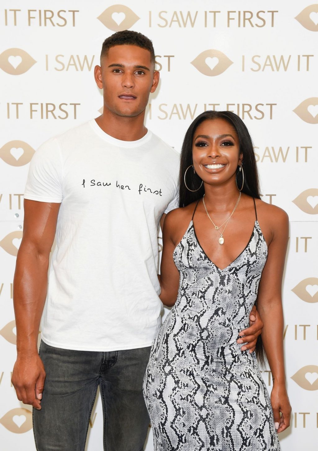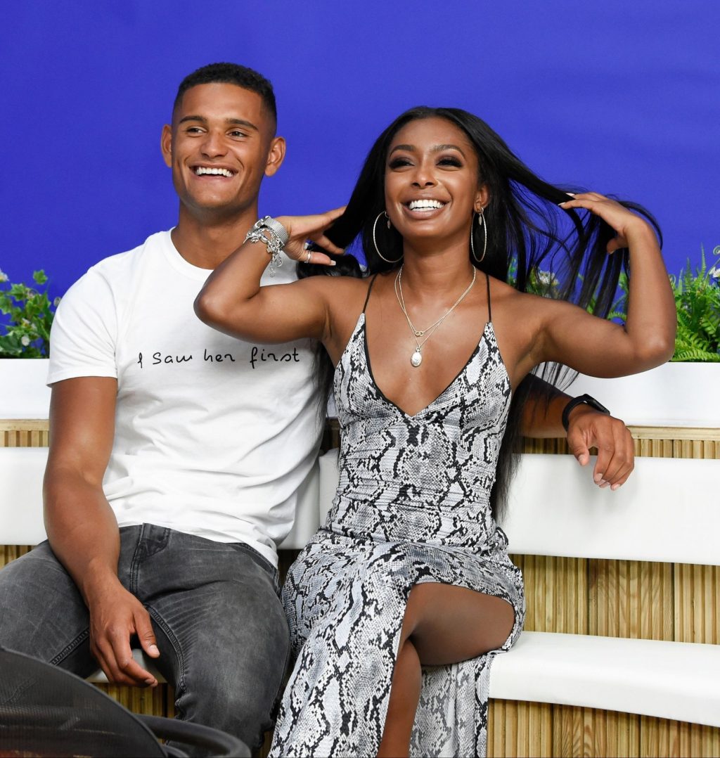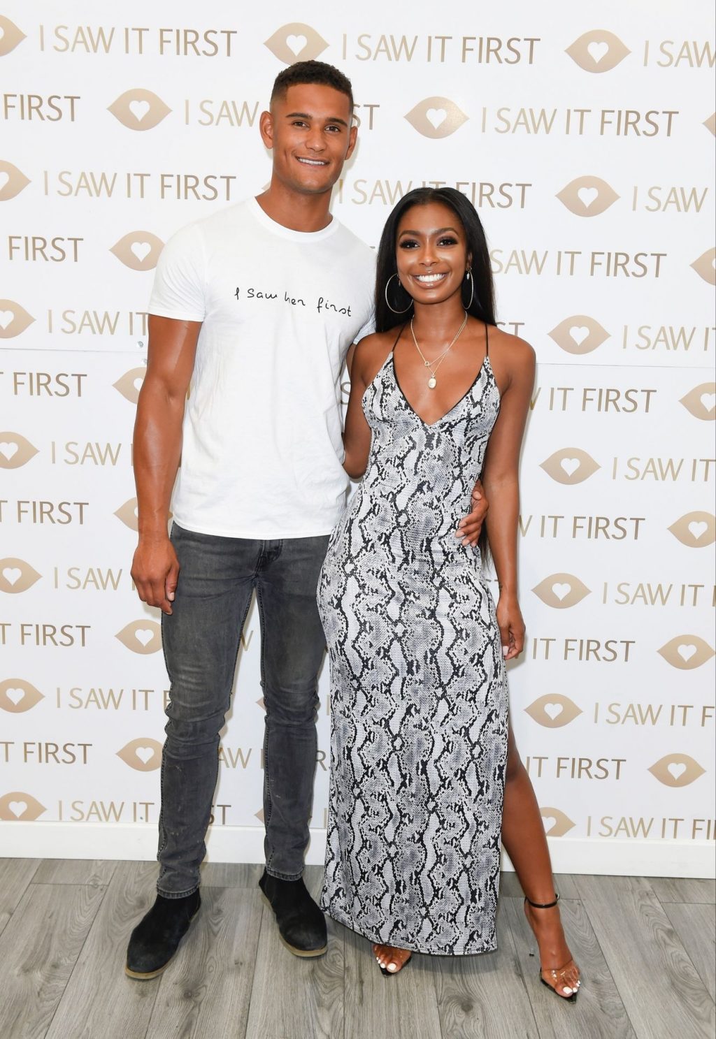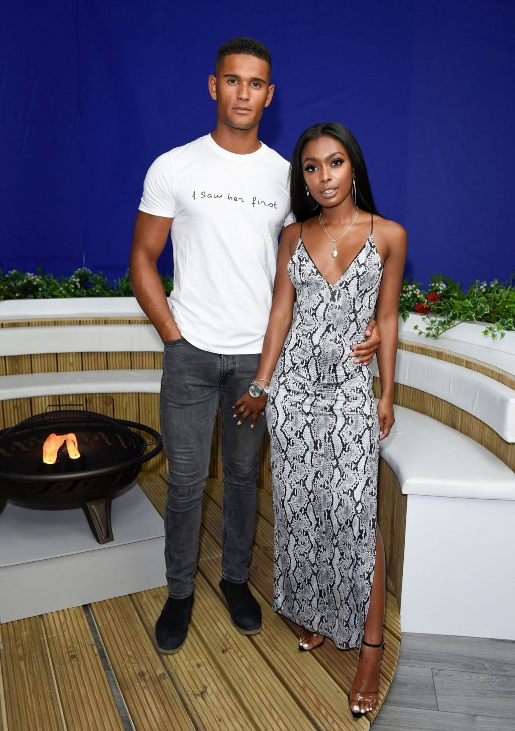 Le couple de “Love Island” Danny et Jourdan Riane Hammond affichent une très belle complicité amoureuse alors qu’ils prennent le contrôle des réseaux sociaux de I Saw It First pour la journée dans leur siège à Manchester, le 15/07/2019.