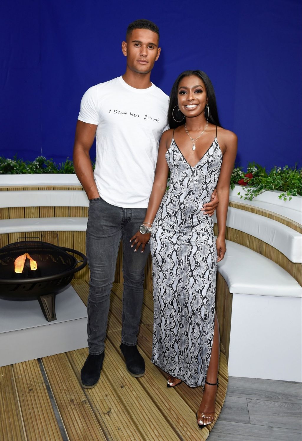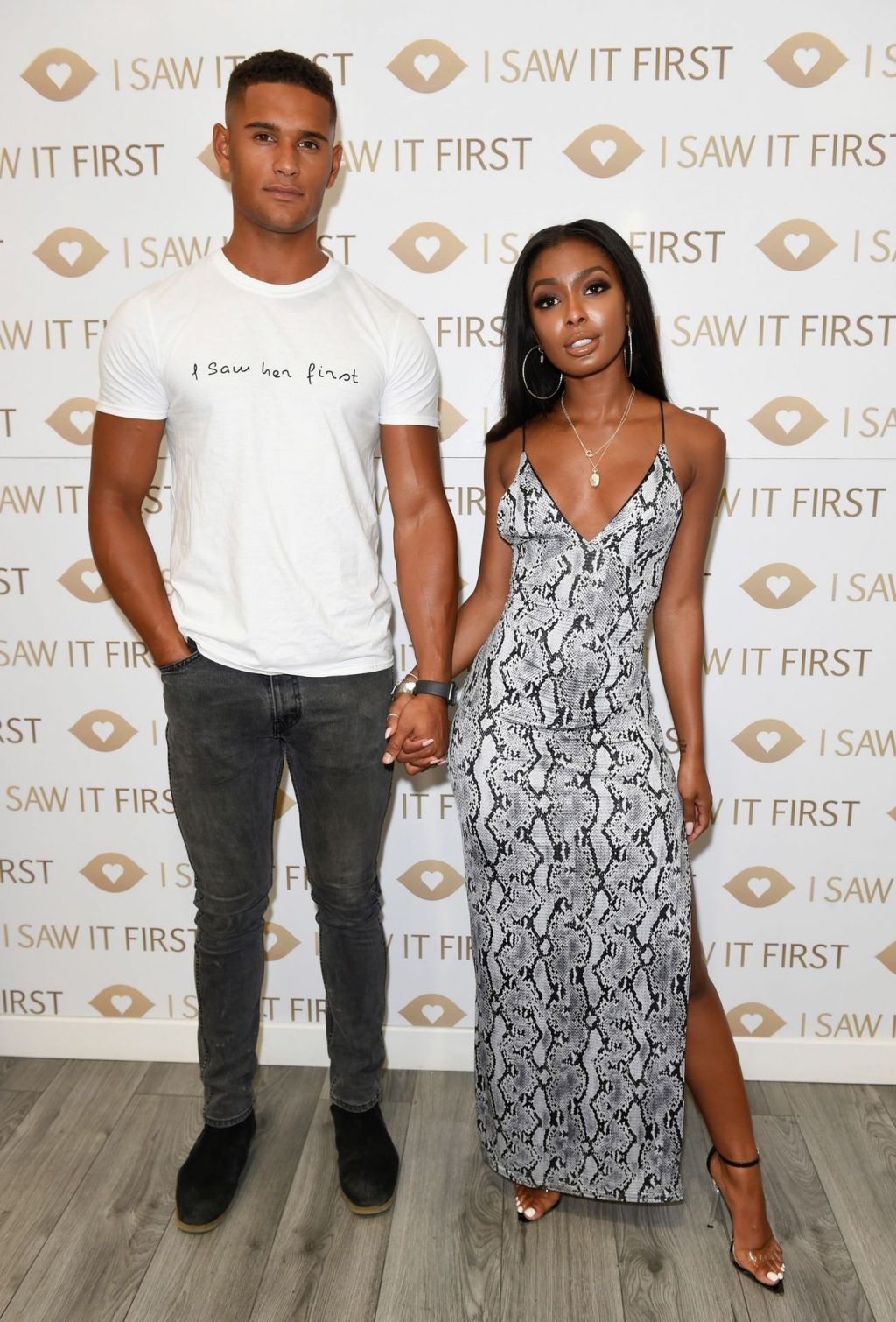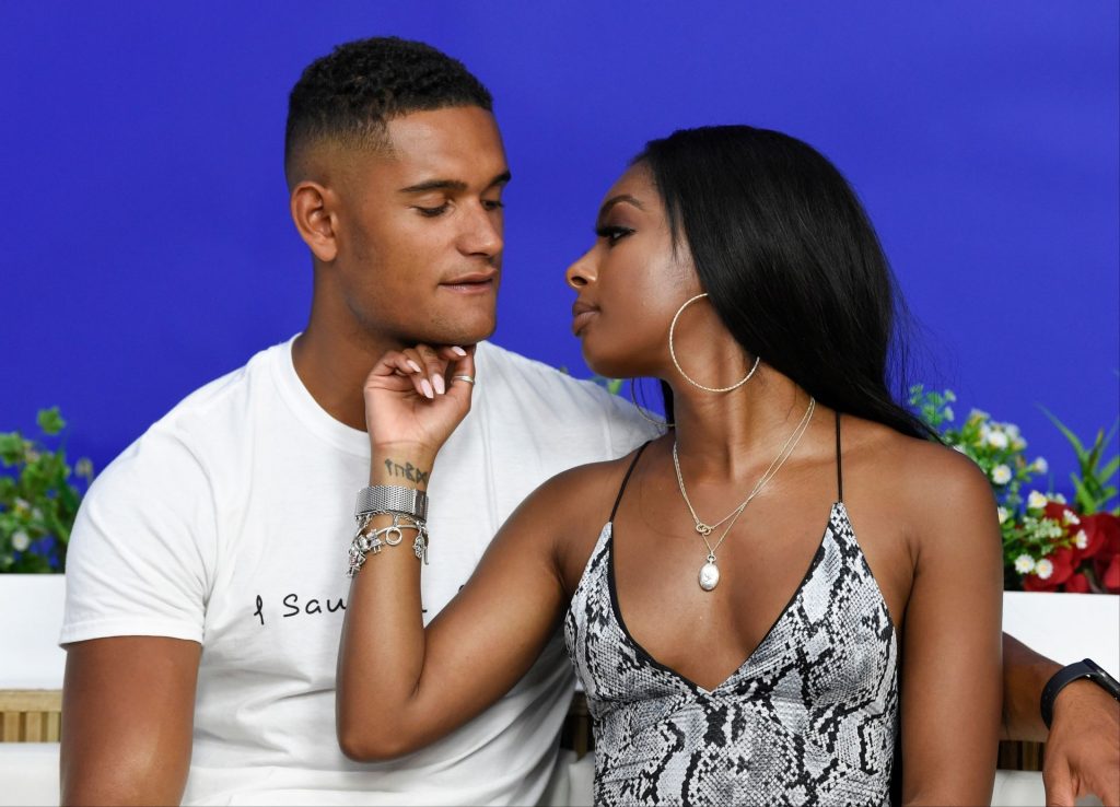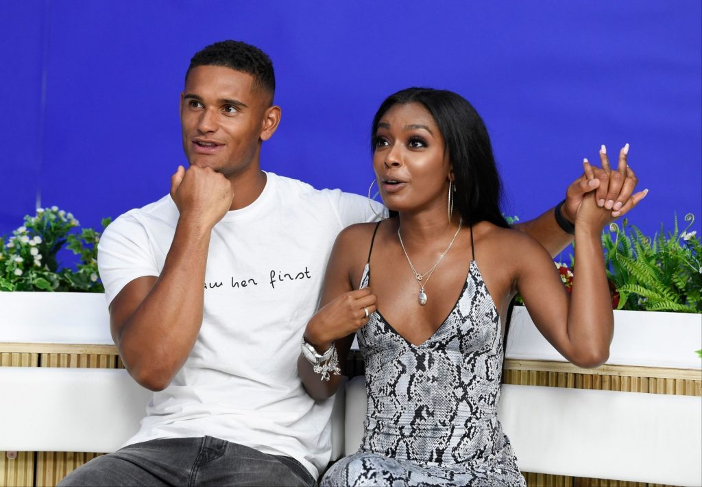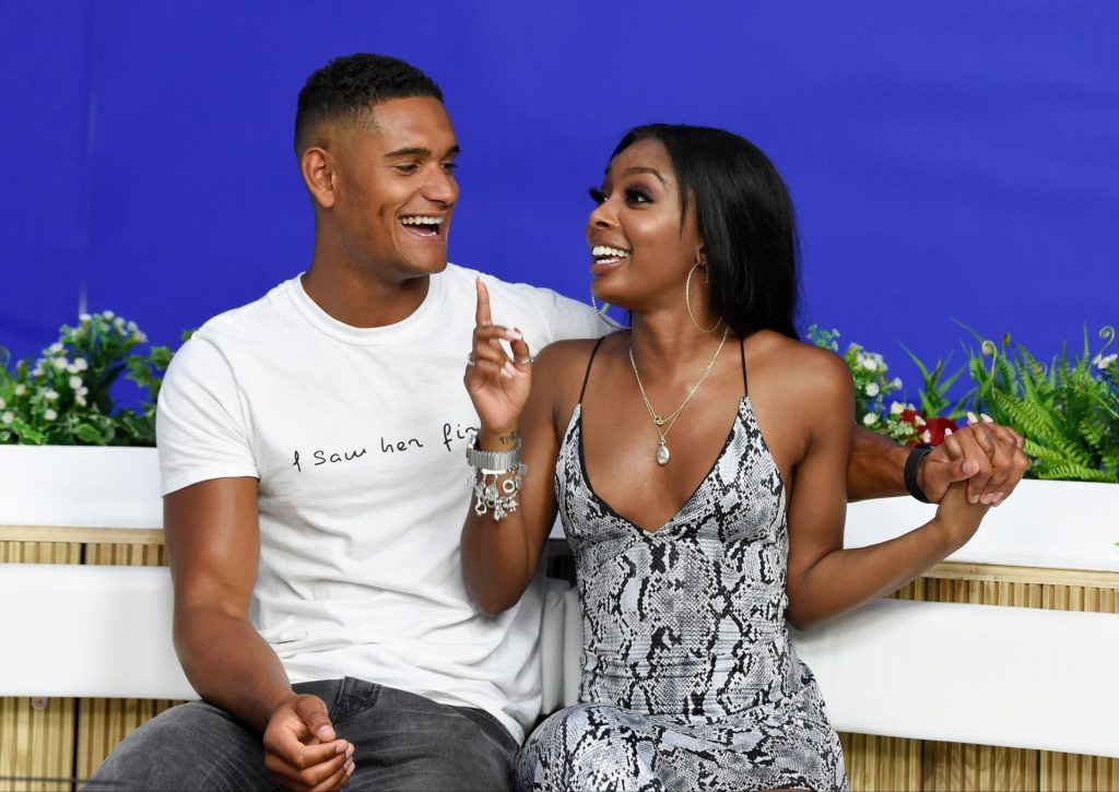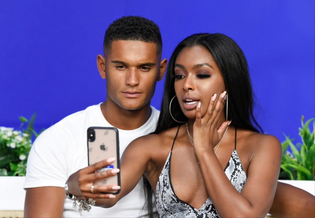 Le couple de “Love Island” Danny et Jourdan Riane Hammond affichent une très belle complicité amoureuse alors qu’ils prennent le contrôle des réseaux sociaux de I Saw It First pour la journée dans leur siège à Manchester, le 15/07/2019.