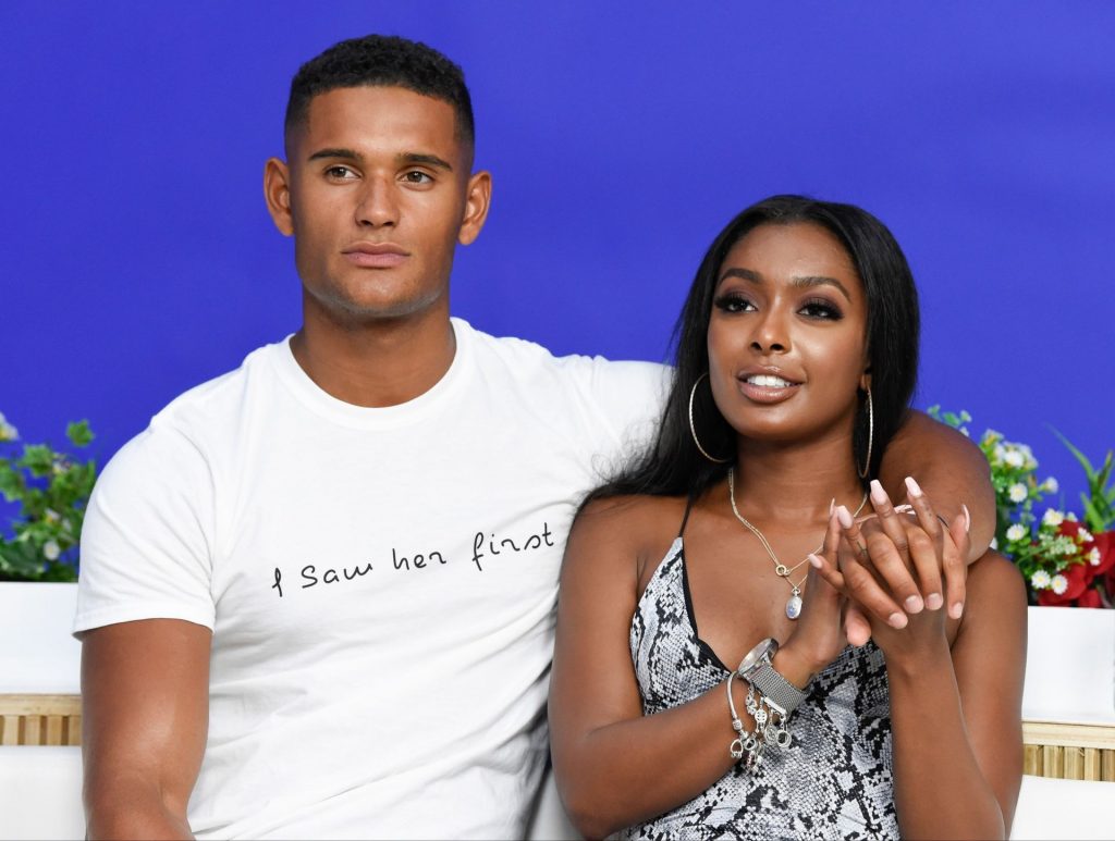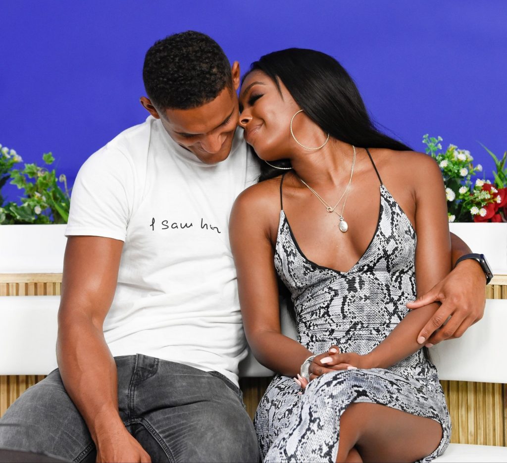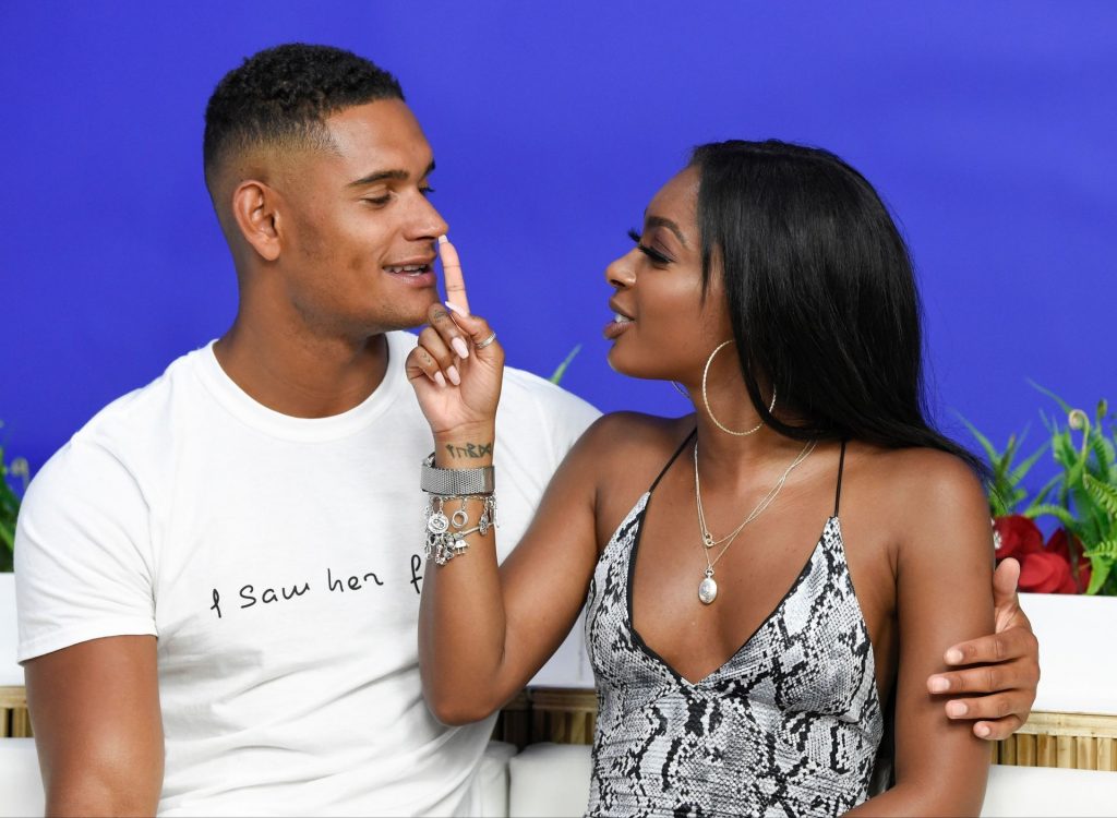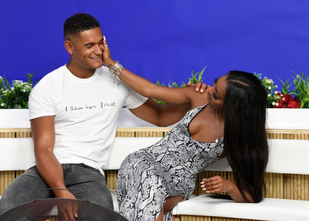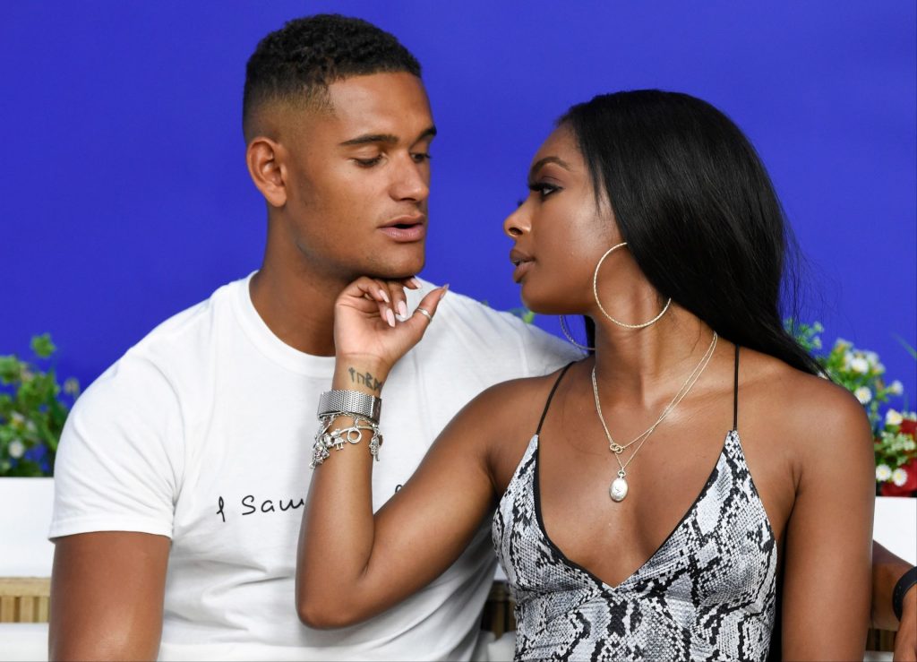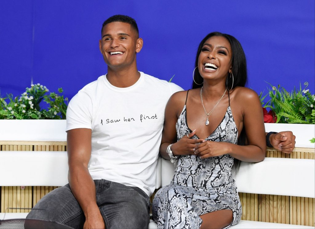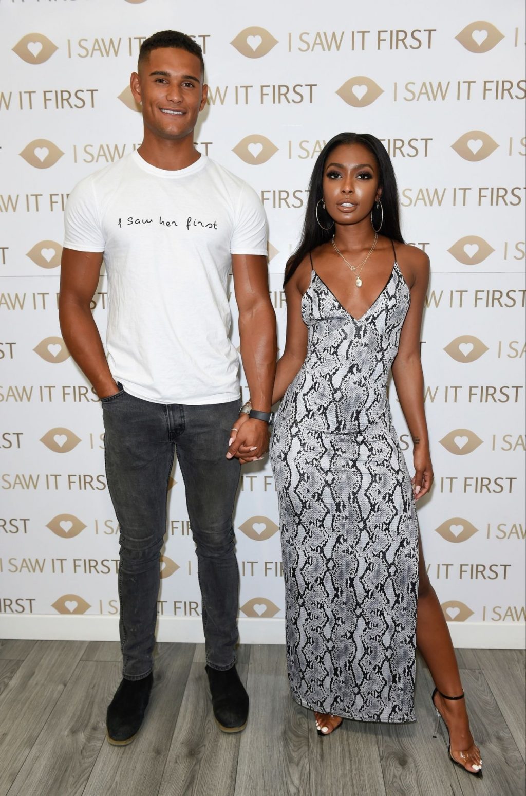 Le couple de “Love Island” Danny et Jourdan Riane Hammond affichent une très belle complicité amoureuse alors qu’ils prennent le contrôle des réseaux sociaux de I Saw It First pour la journée dans leur siège à Manchester, le 15/07/2019.