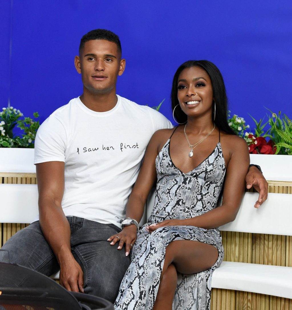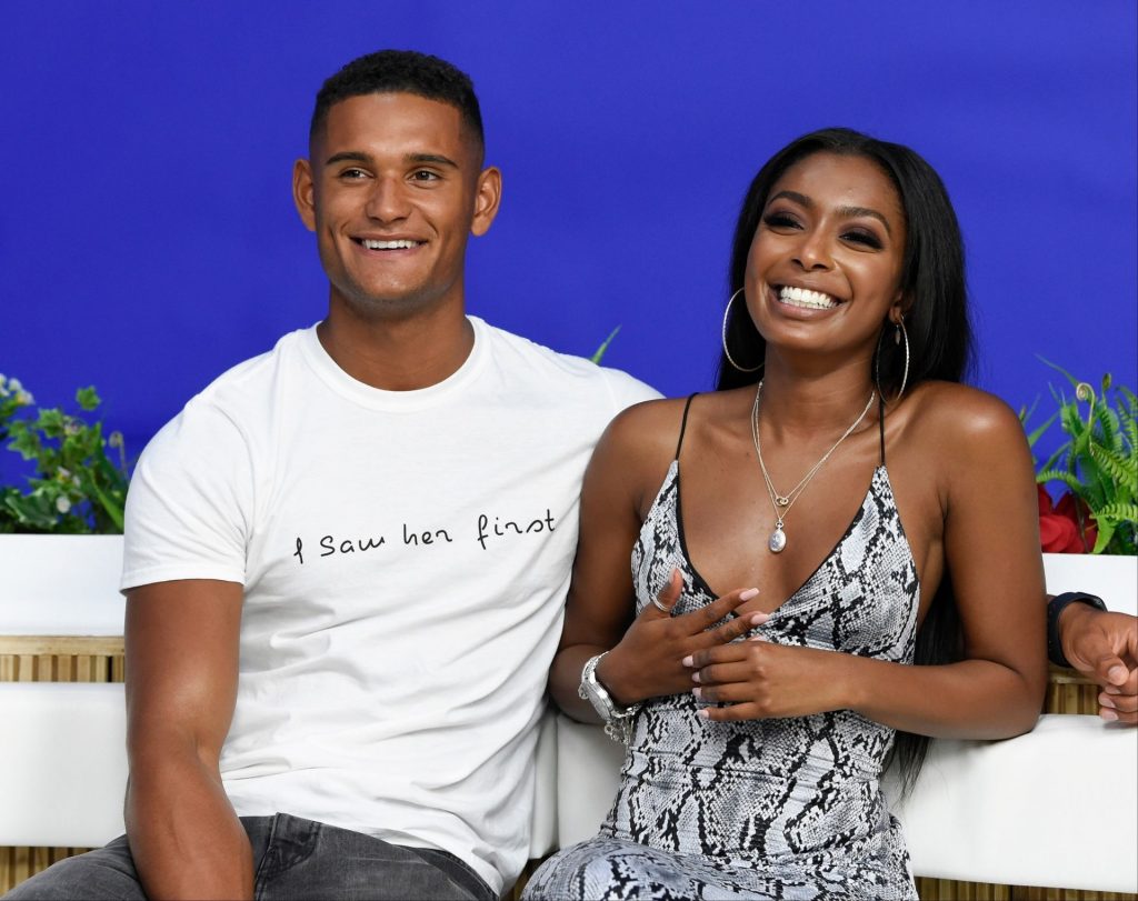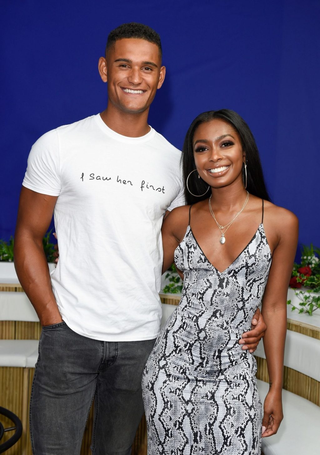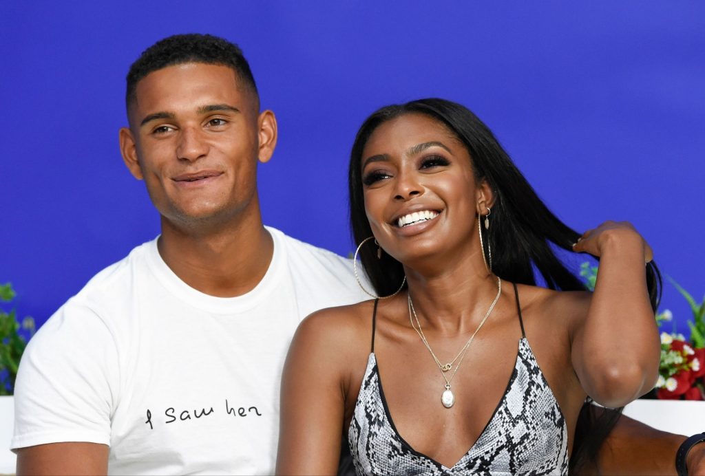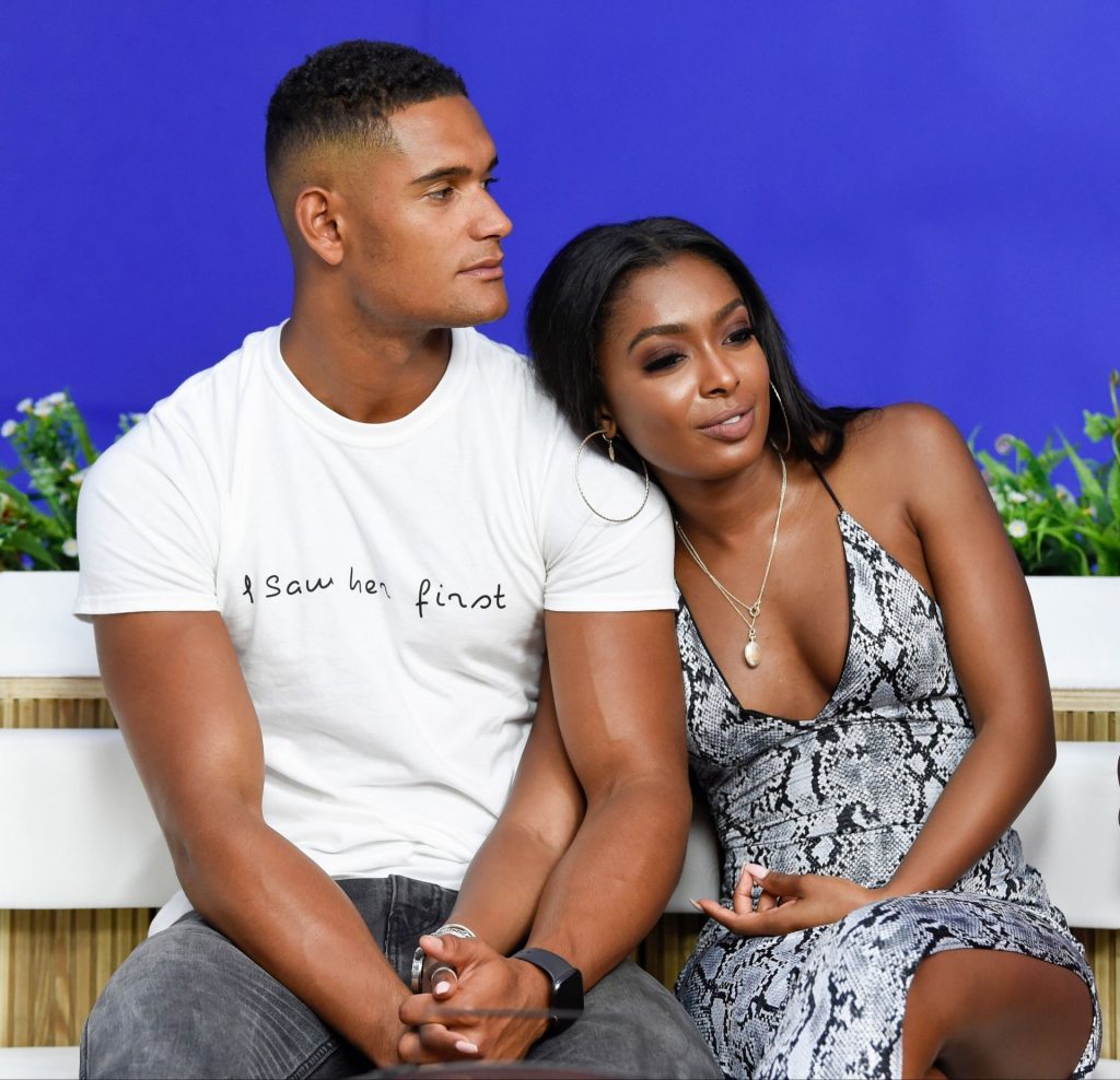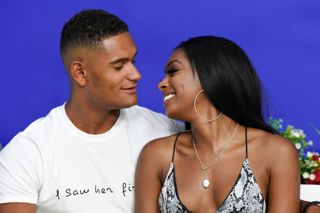 Le couple de “Love Island” Danny et Jourdan Riane Hammond affichent une très belle complicité amoureuse alors qu’ils prennent le contrôle des réseaux sociaux de I Saw It First pour la journée dans leur siège à Manchester, le 15/07/2019.