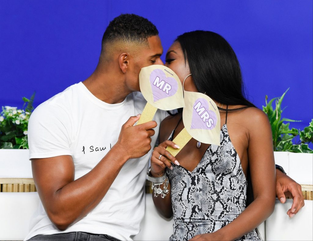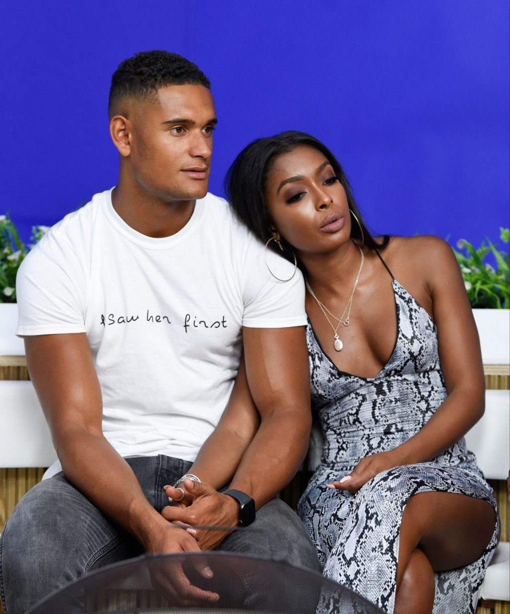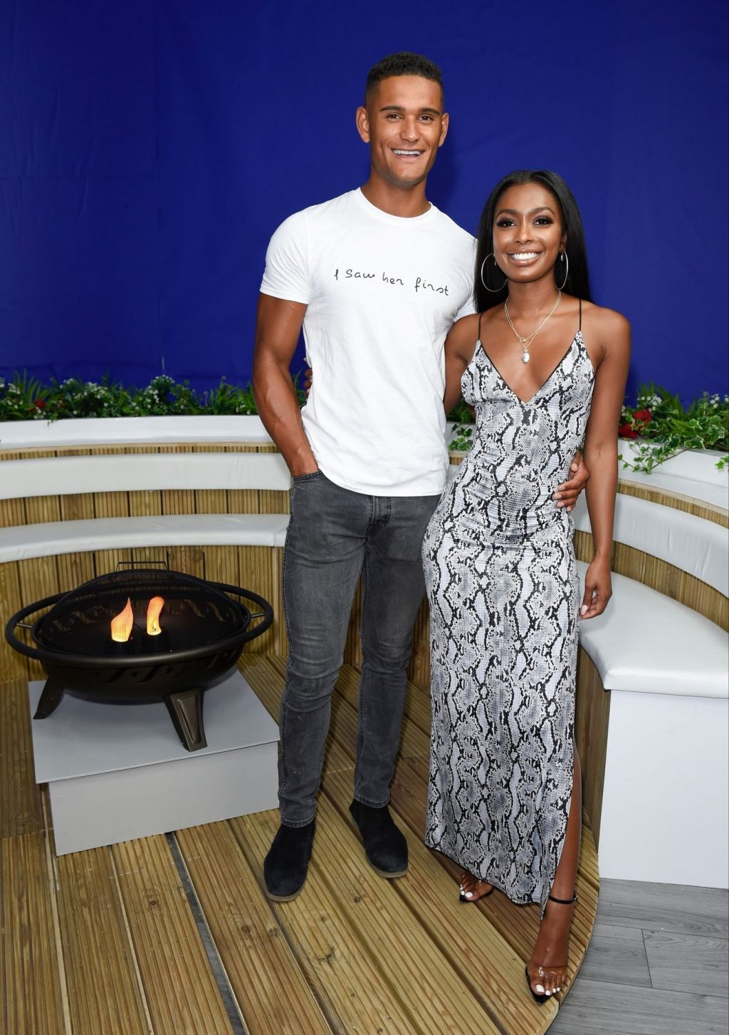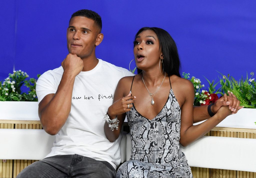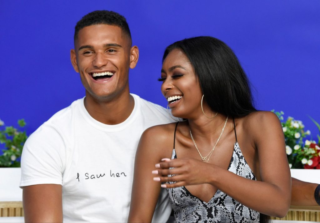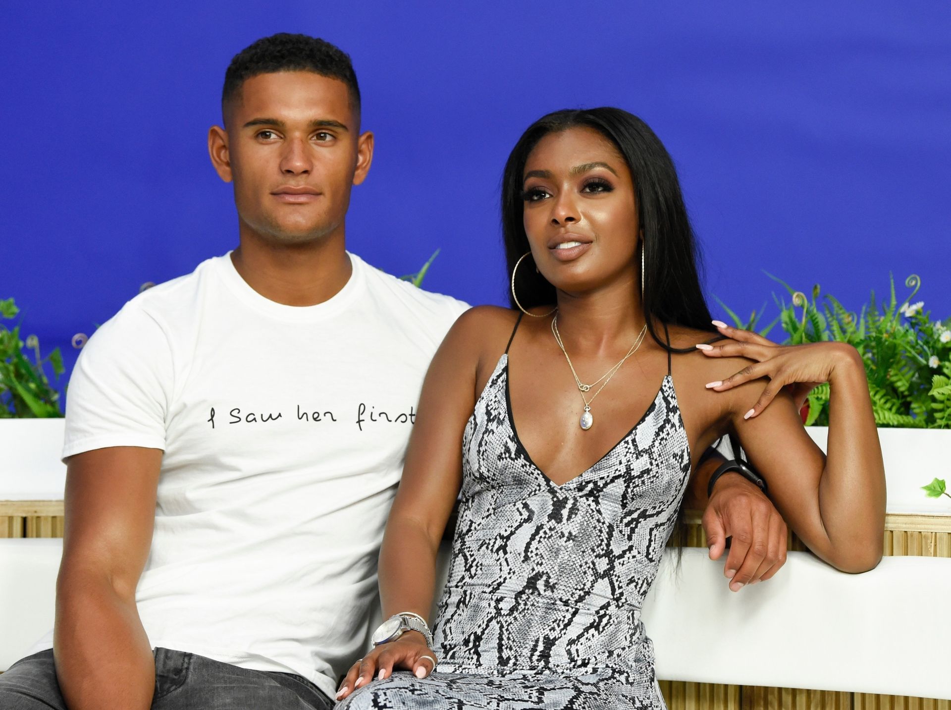Le couple de “Love Island” Danny et Jourdan Riane Hammond affichent une très belle complicité amoureuse alors qu’ils prennent le contrôle des réseaux sociaux de I Saw It First pour la journée dans leur siège à Manchester, le 15/07/2019.