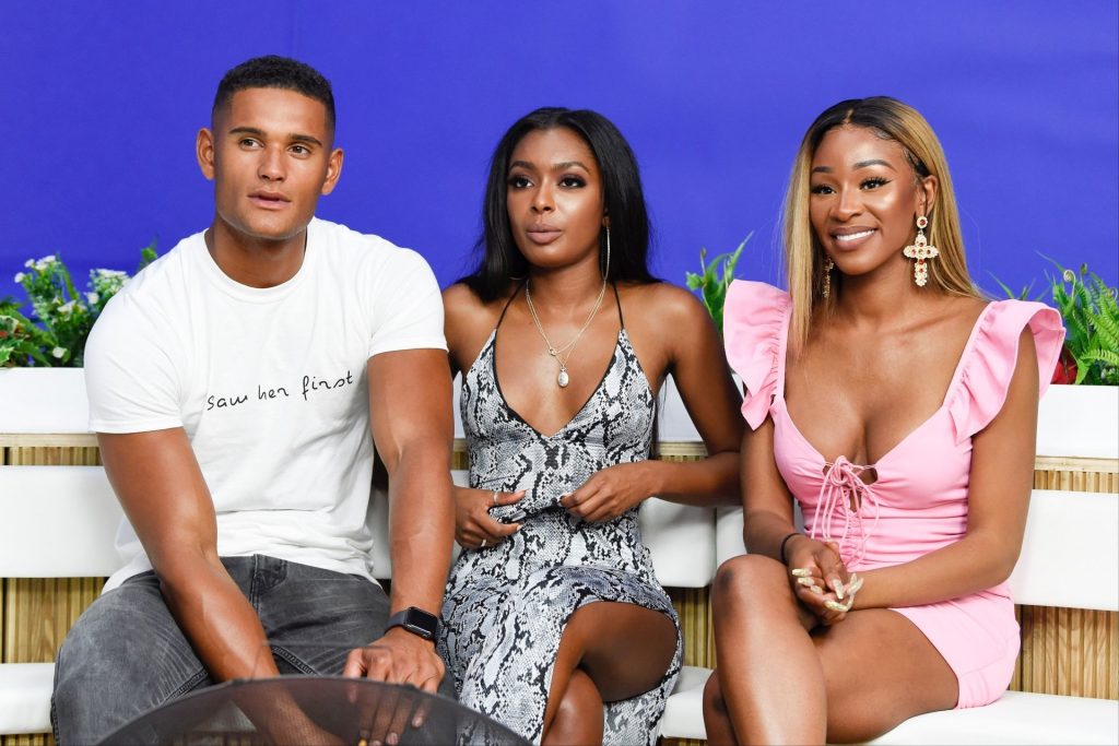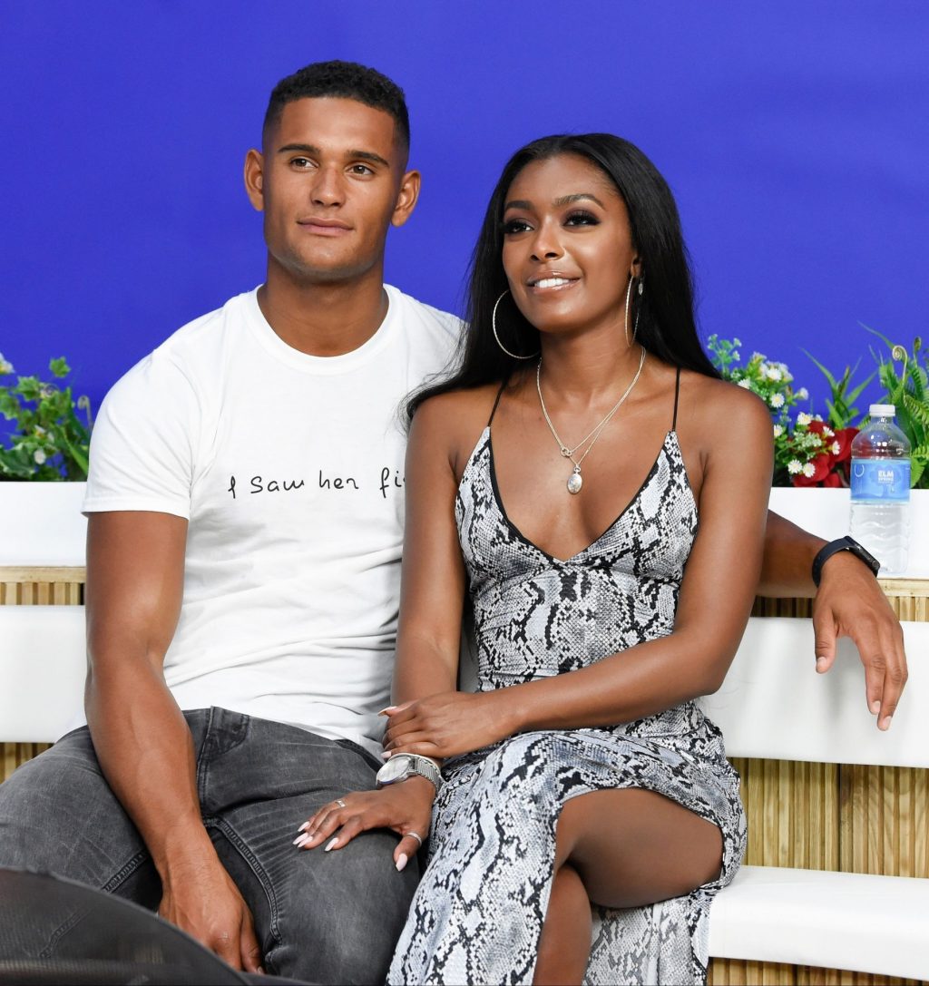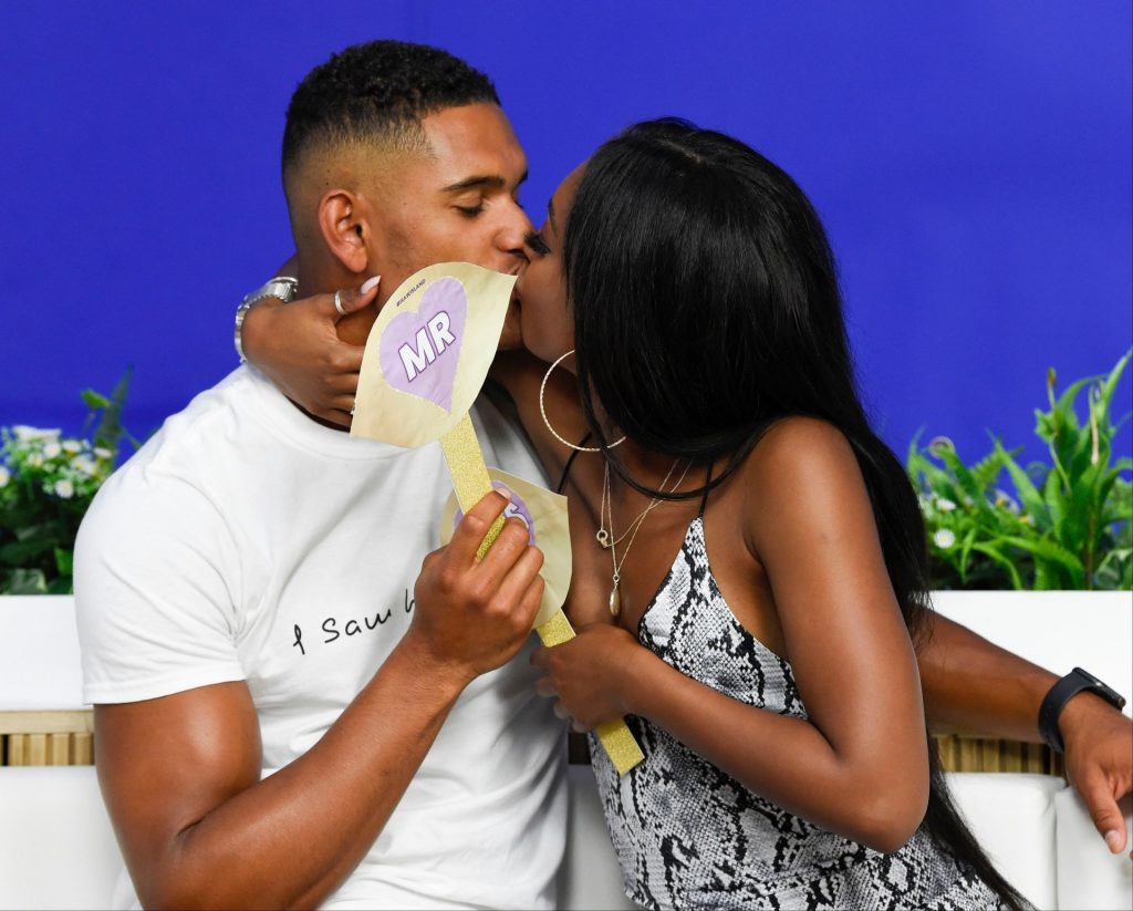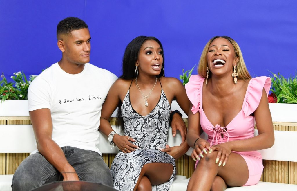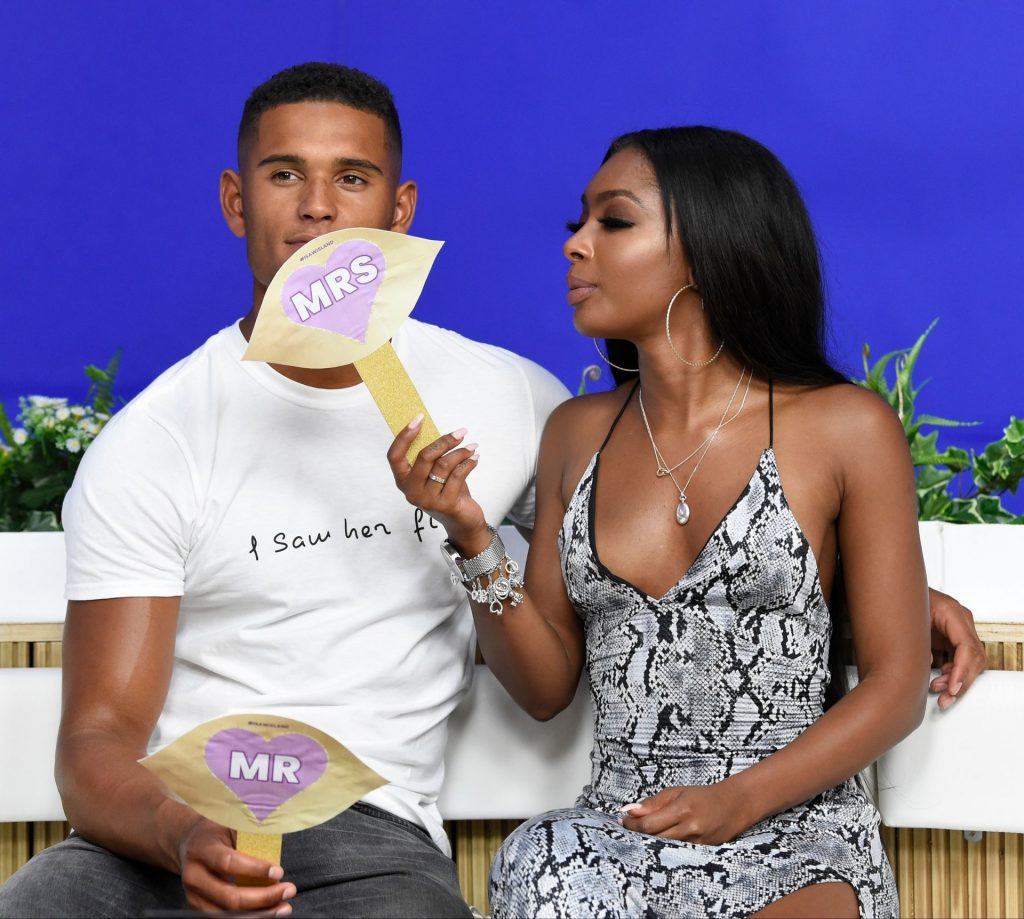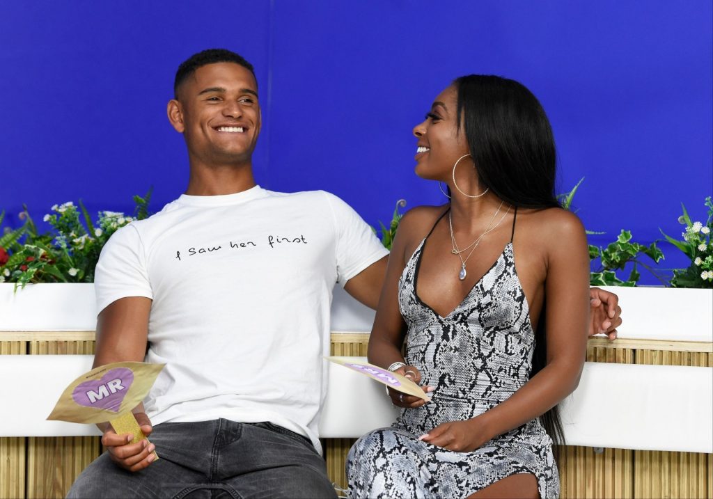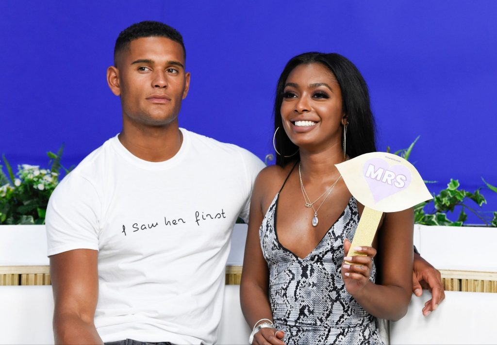 Le couple de “Love Island” Danny et Jourdan Riane Hammond affichent une très belle complicité amoureuse alors qu’ils prennent le contrôle des réseaux sociaux de I Saw It First pour la journée dans leur siège à Manchester, le 15/07/2019.