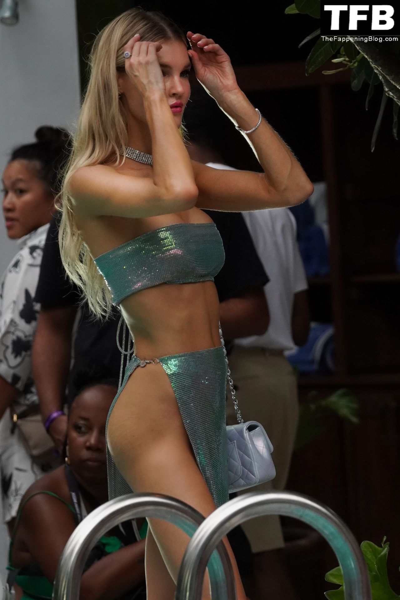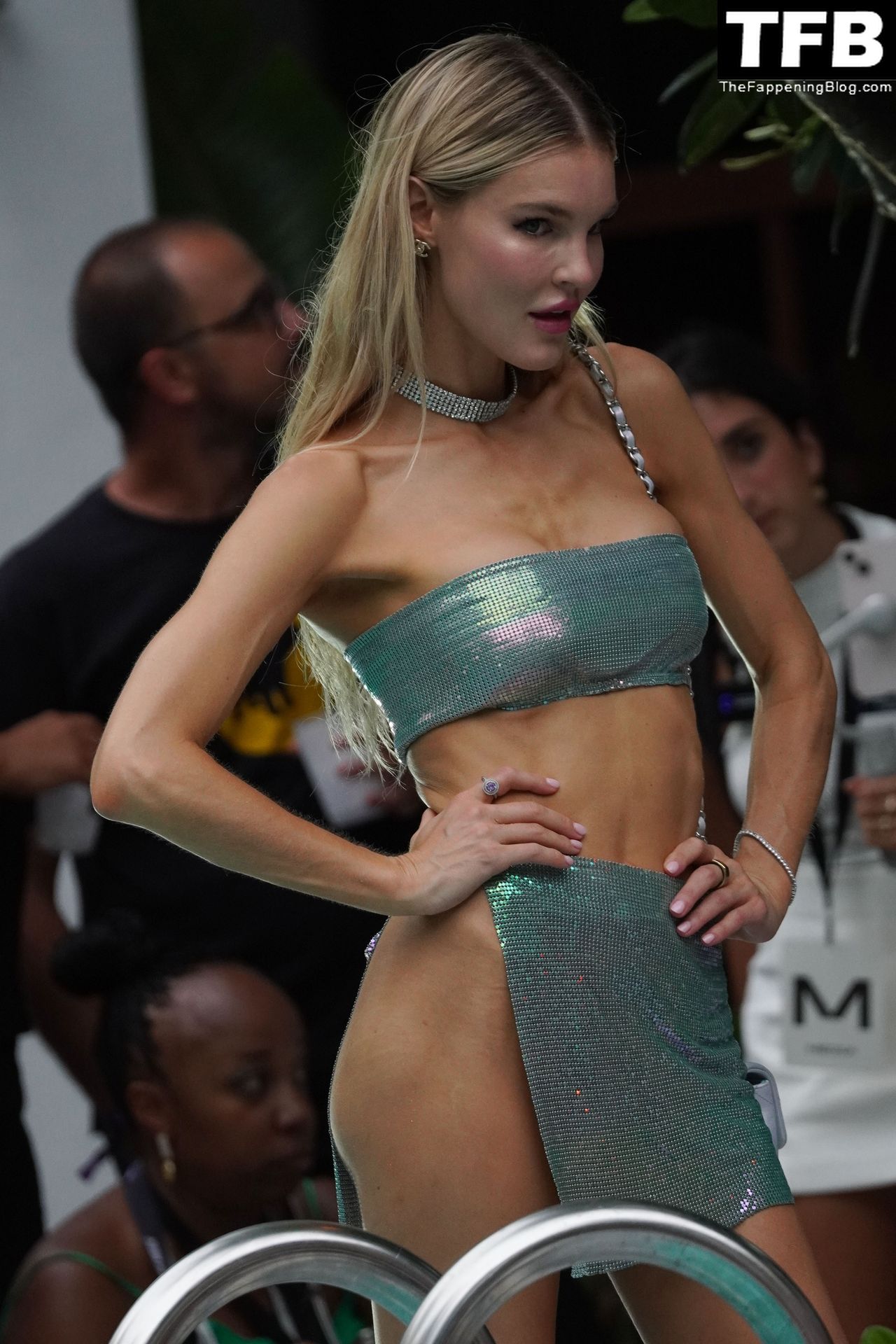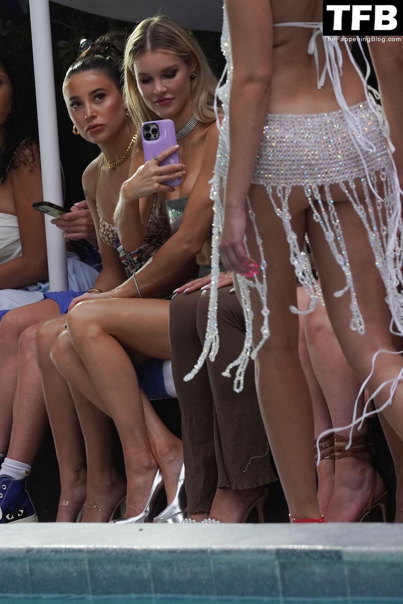 Le mannequin Joy Corrigan assiste au défilé de maillots de bain “Poster Girl” Cruise ’23 dans un ensemble de bain métallique à peine visible au Soho Beach House à South Beach, le 16/07/2022.