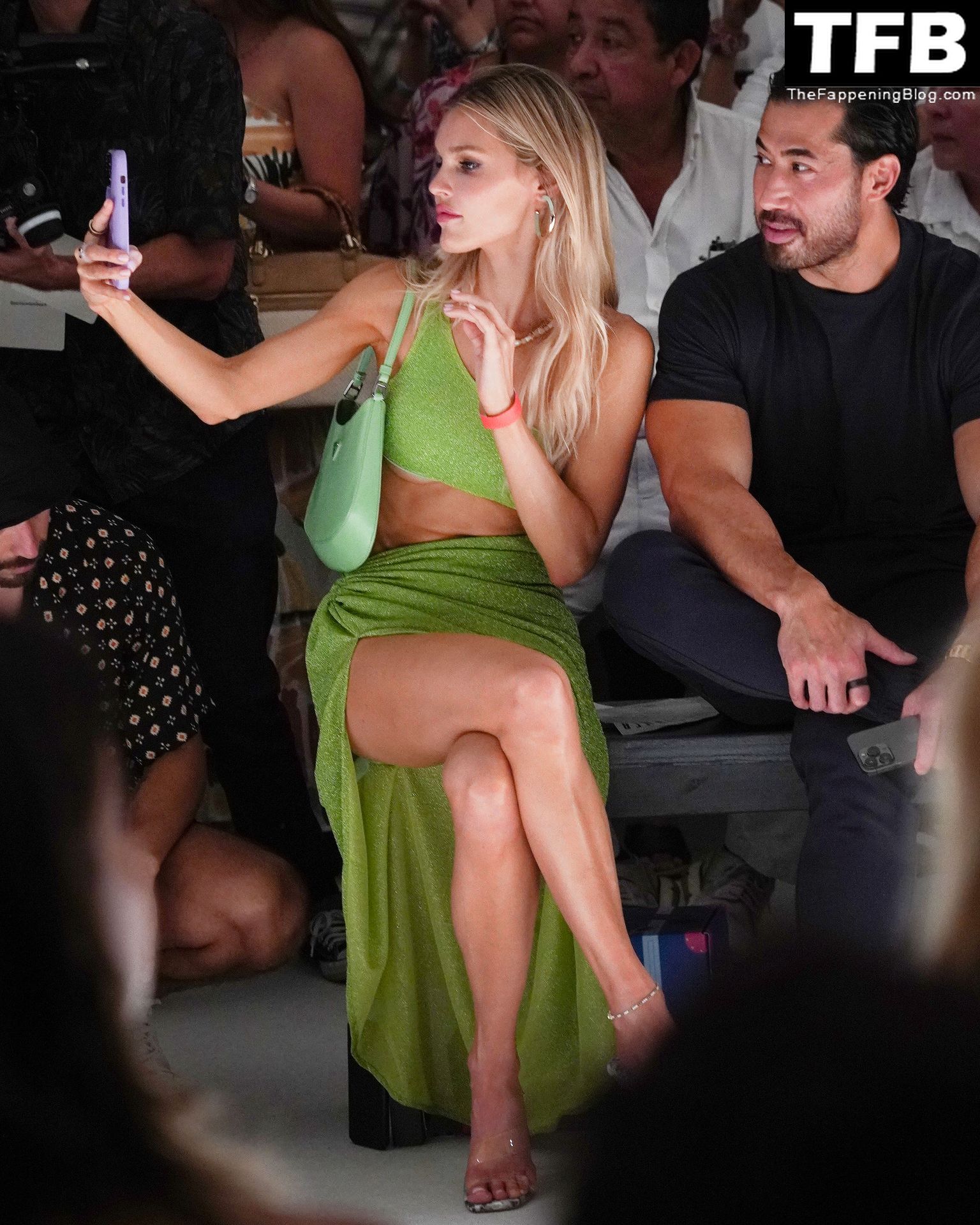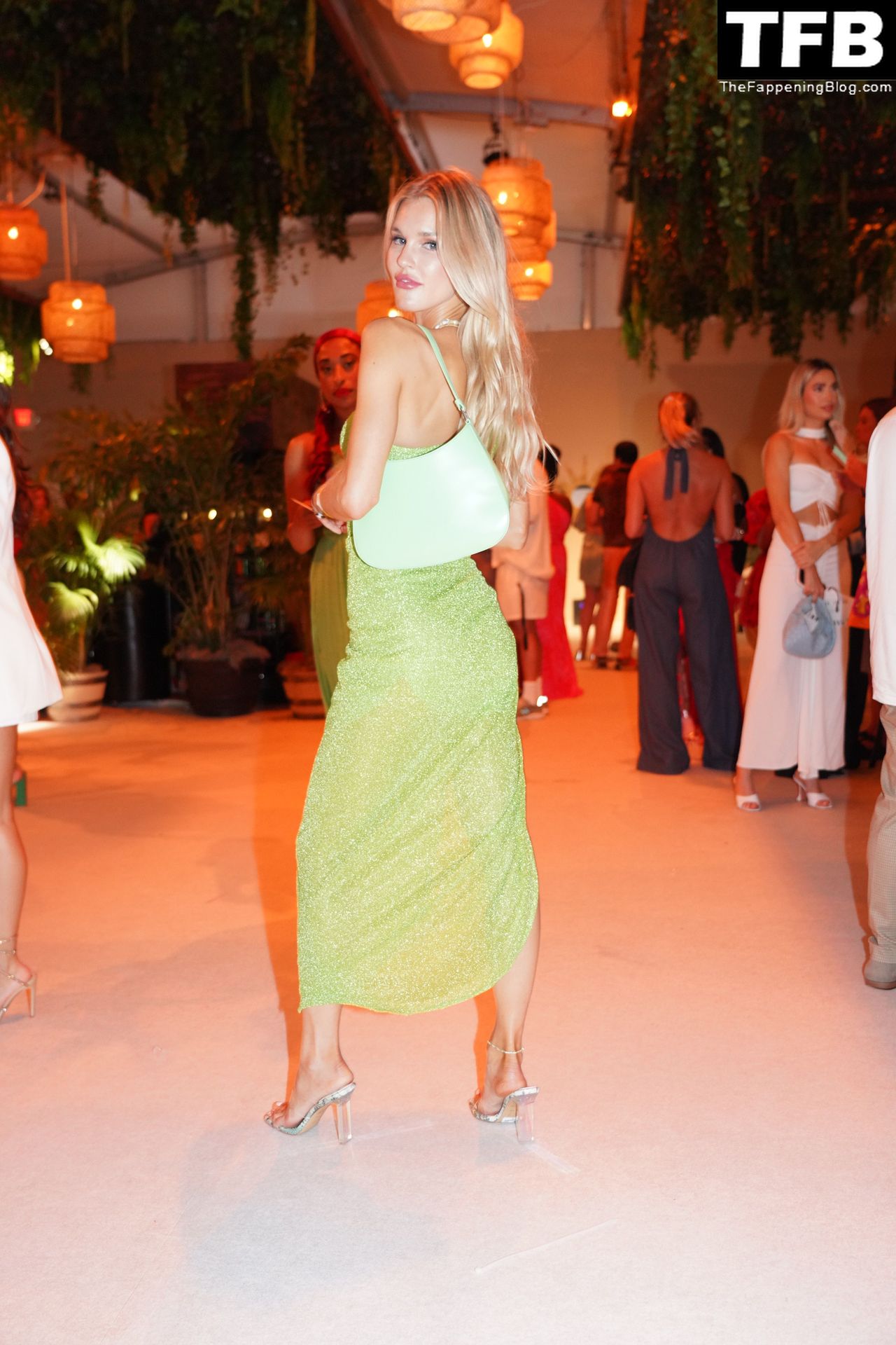 Le mannequin américain et star de The Fappening Joy Corrigan est éblouissante dans une tenue verte transparente lors de la Miami Swim Week, le 15/07/2022.