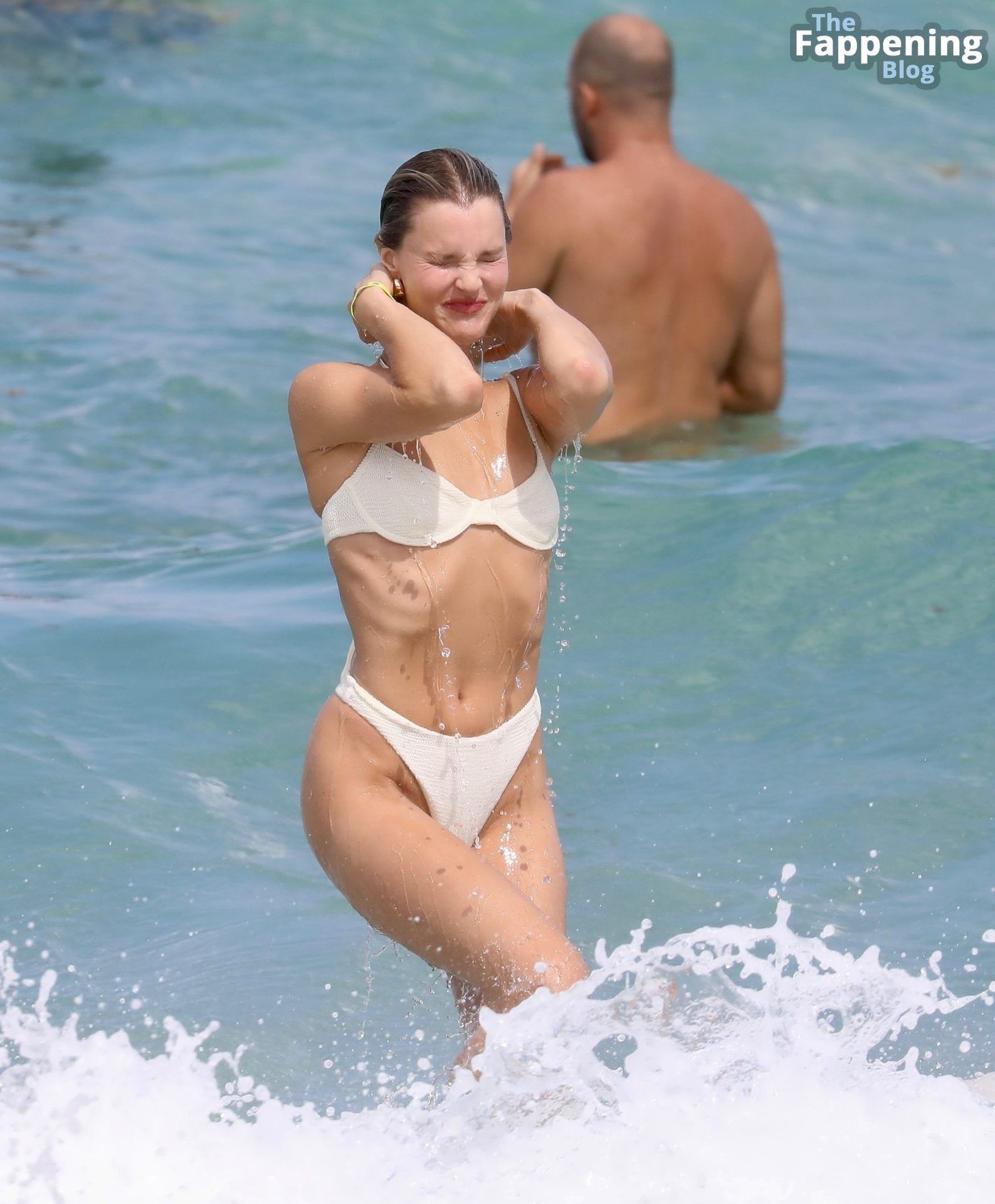 Découvrez les clichés brûlants de la star du Fappening Joy Corrigan arborant un bikini ficelle sur la plage de Miami, mettant en valeur sa silhouette époustouflante.