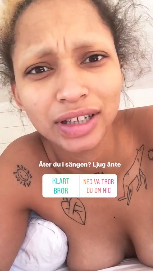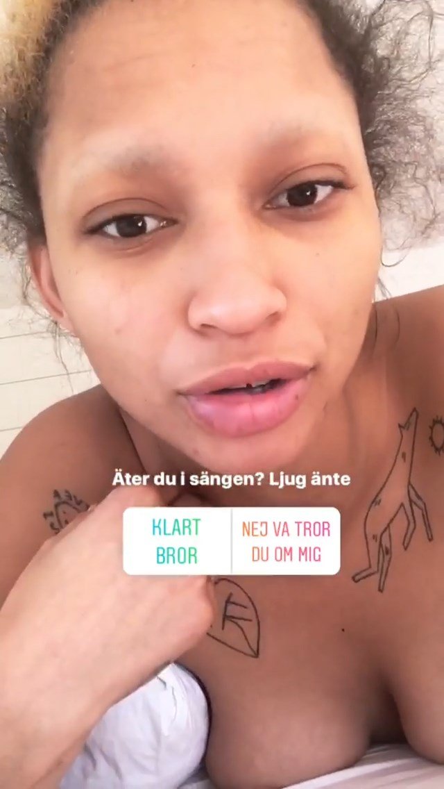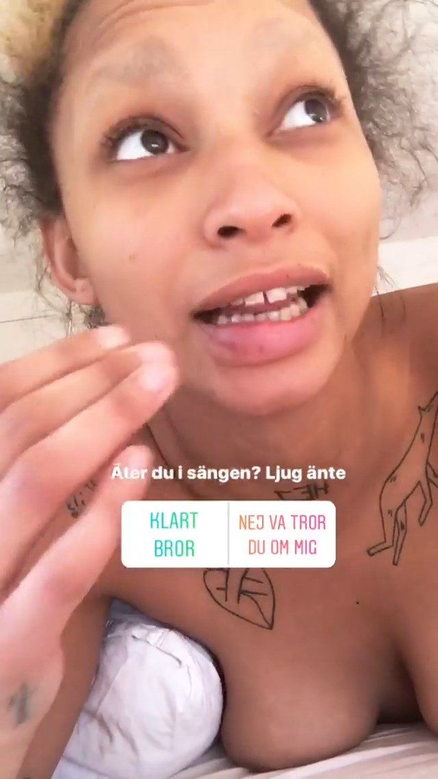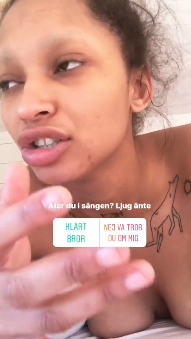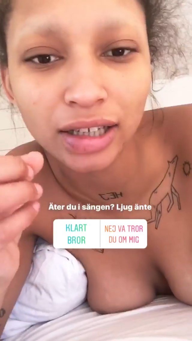 Découvrez quelques photos nues (captures d’écran) et une vidéo de Joy M’Batha issues de ses Stories Instagram (mars 2019). Joy Nirak Fikile M’Batha est une rappeuse suédoise. Elle est née le 13 novembre 1994 à Malmö. Elle a un look étrange et des morceaux originaux.