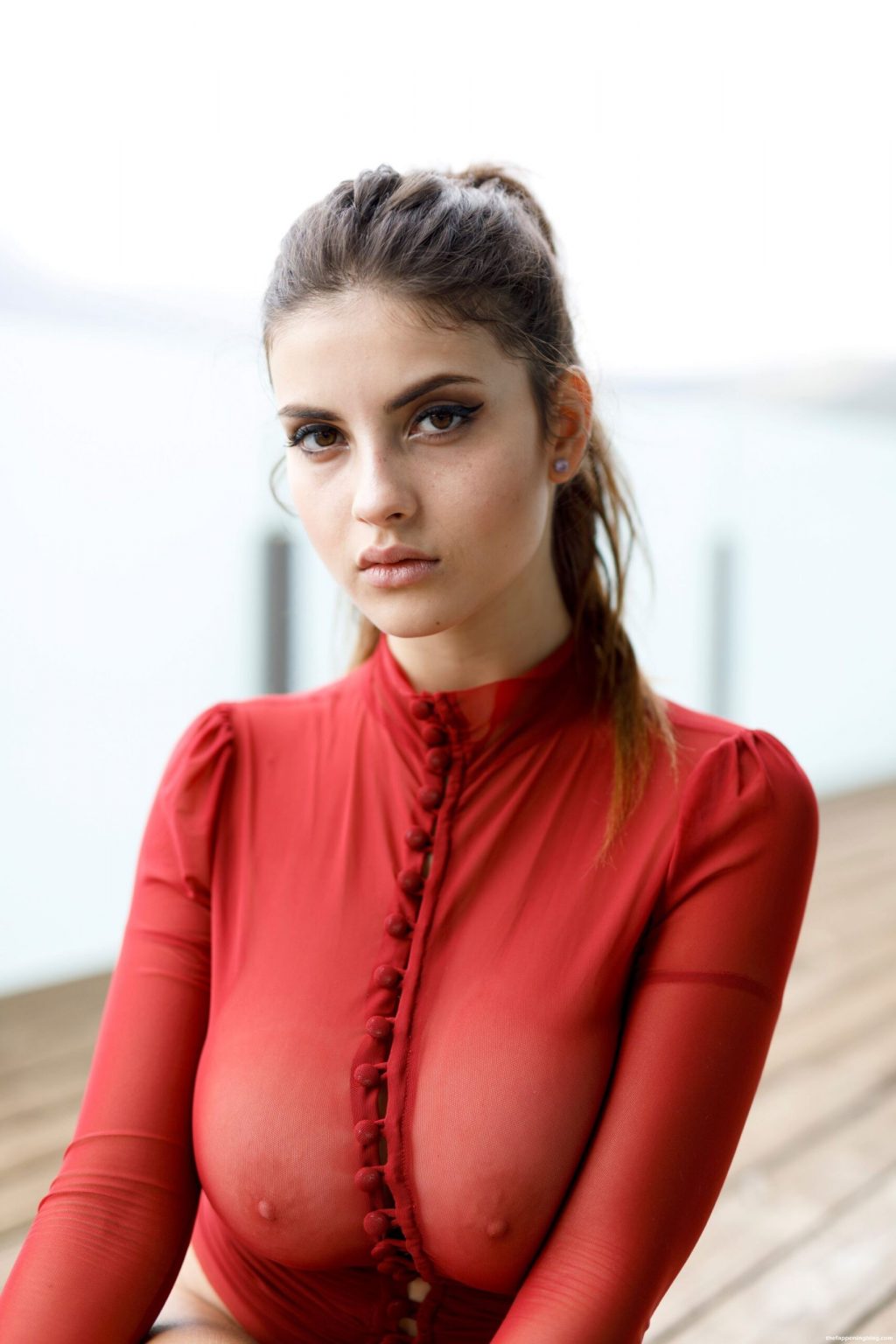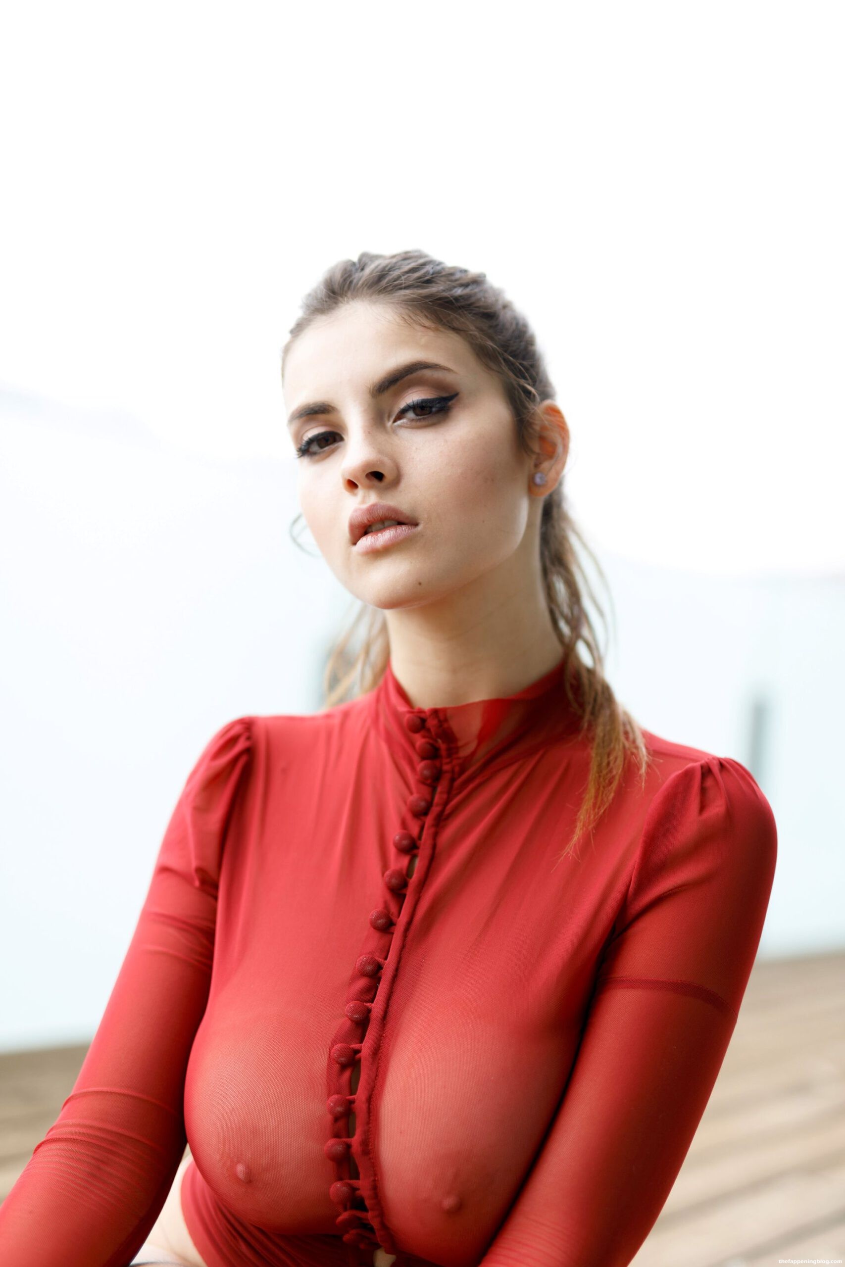 Voici des photos légèrement nues d’une bombe plantureuse Judit Guerra, montrant ses seins, posant dans une chemise rouge transparente et exhibant ses fesses nues.