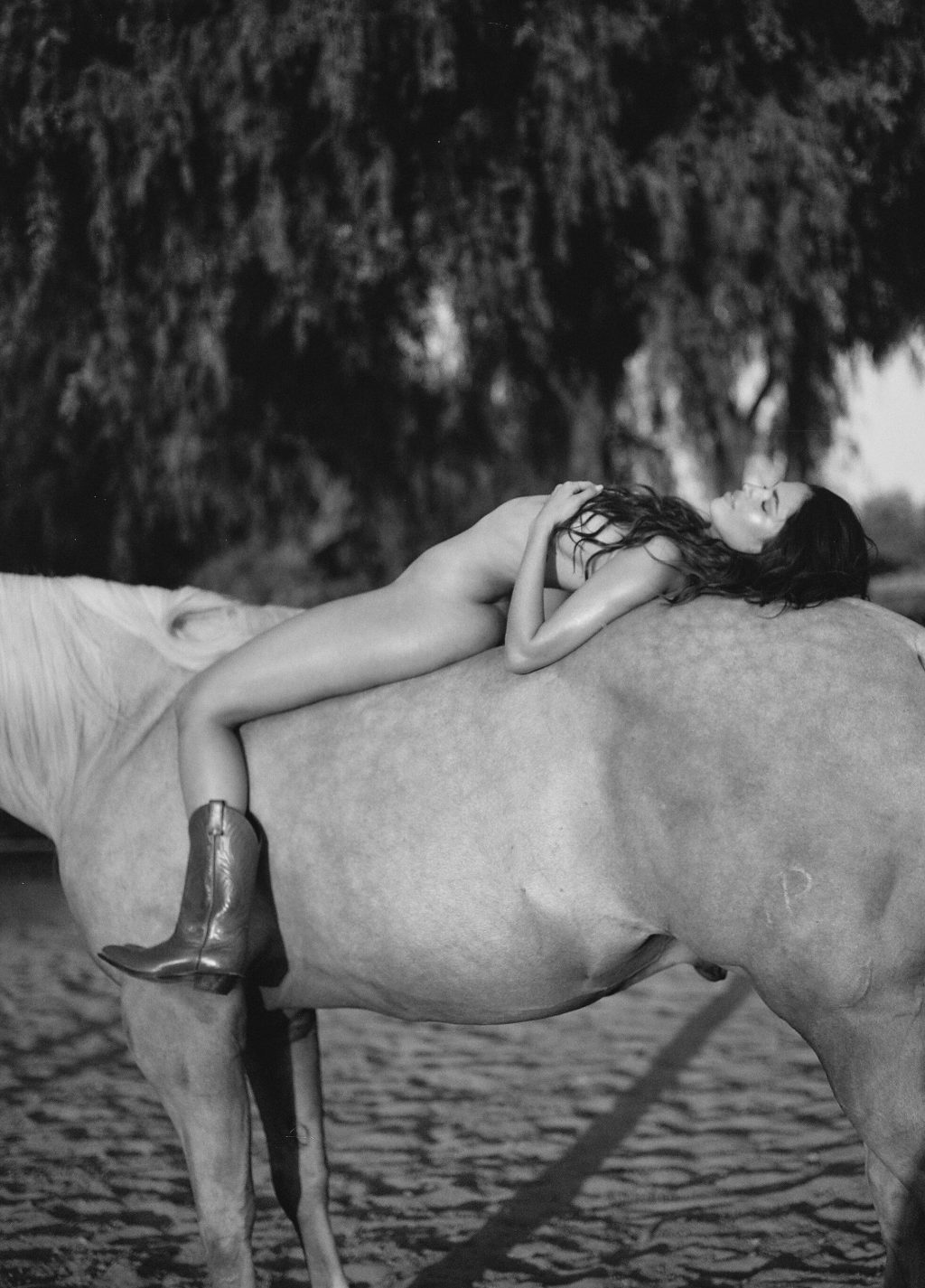 Le mannequin costaricien Juliana Herz pose entièrement nue, montrant ses petits seins, son cul et sa chatte lors d’une séance photo avec un cheval par Vivian Kim pour la Série 8.1 (2020).