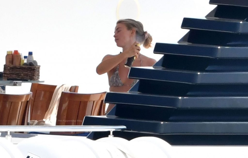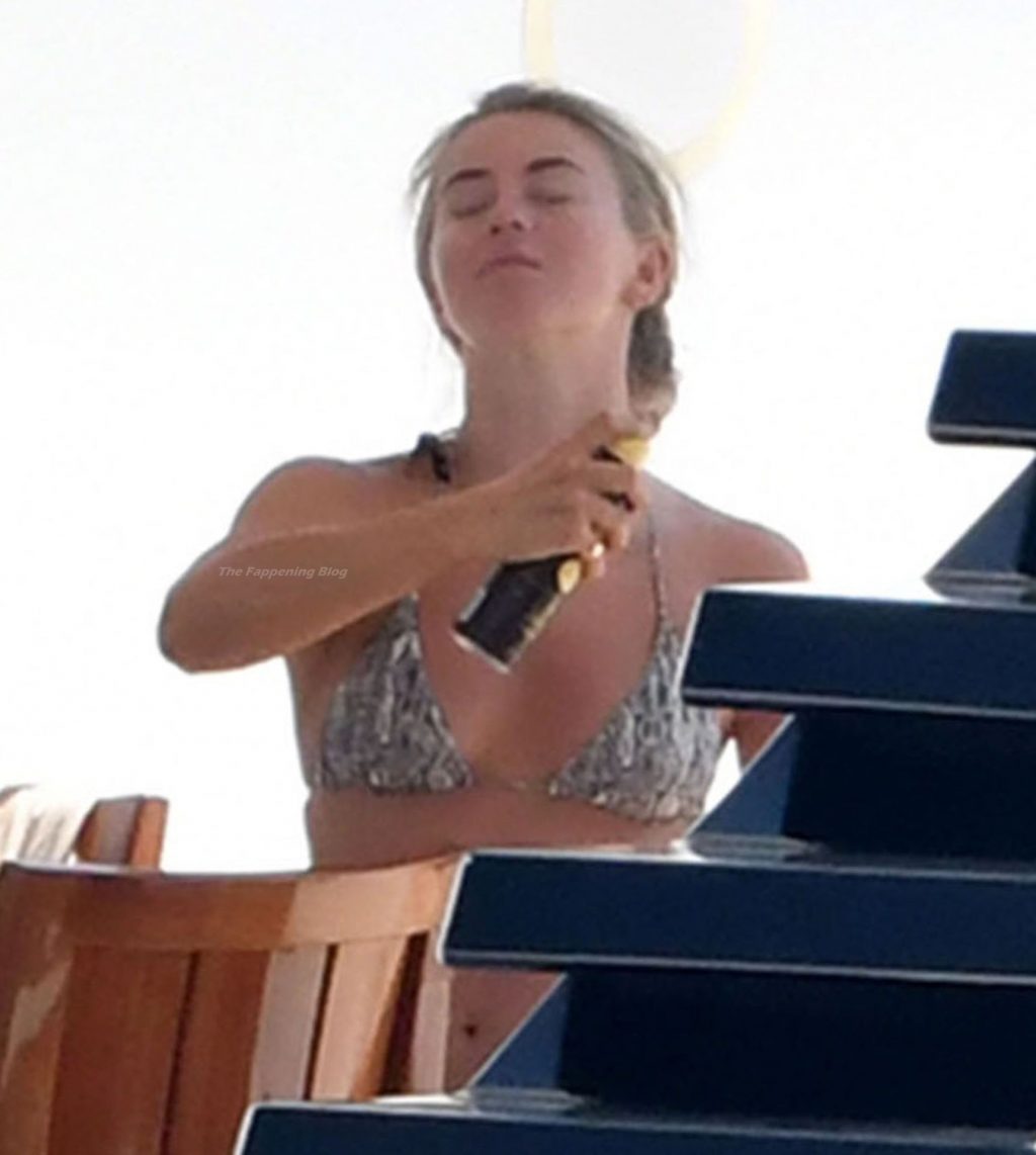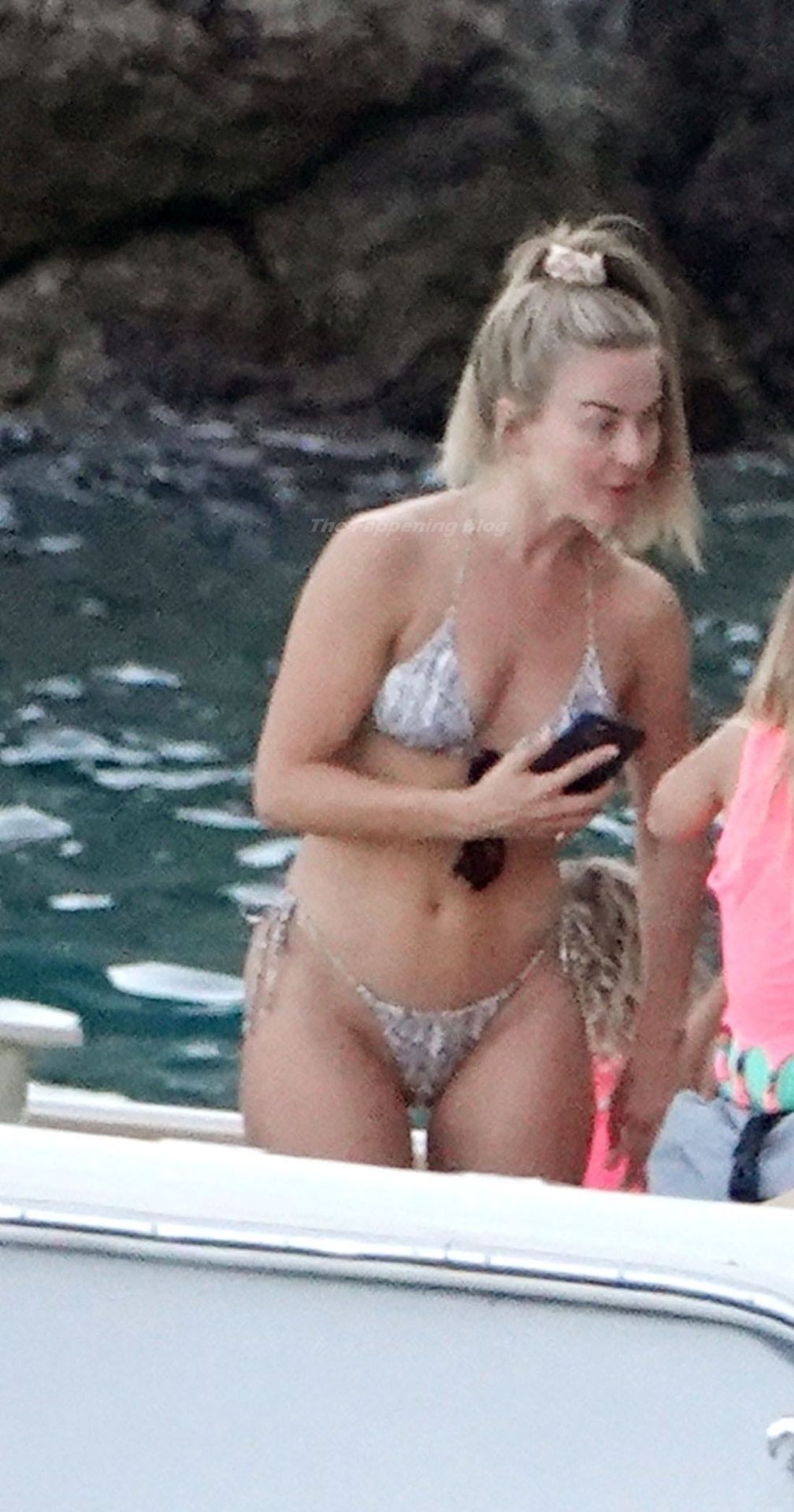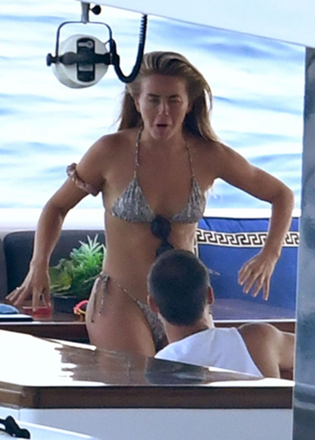 Julianne portait son bikini argenté minimaliste en montrant sa silhouette svelte alors qu’elle appliquait de la crème solaire sous une chaleur accablante.