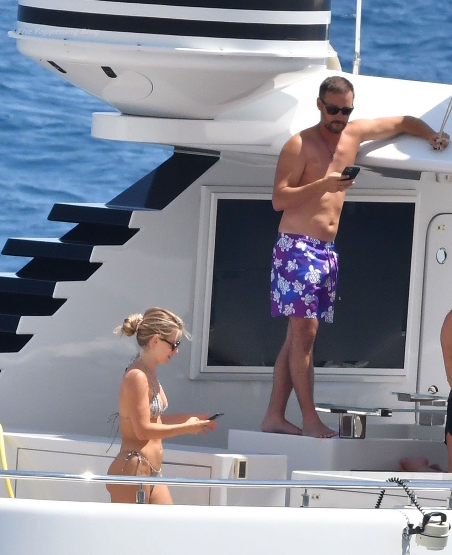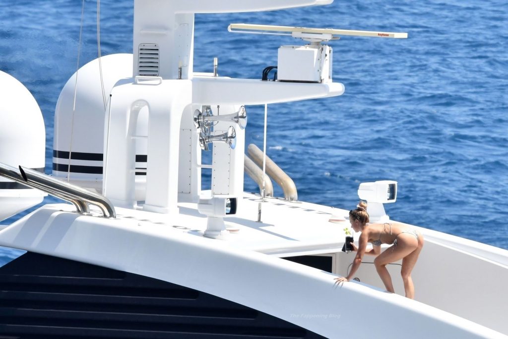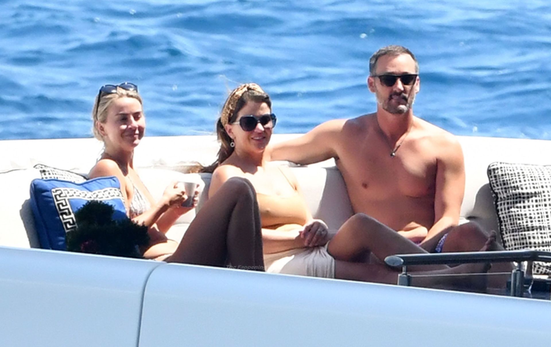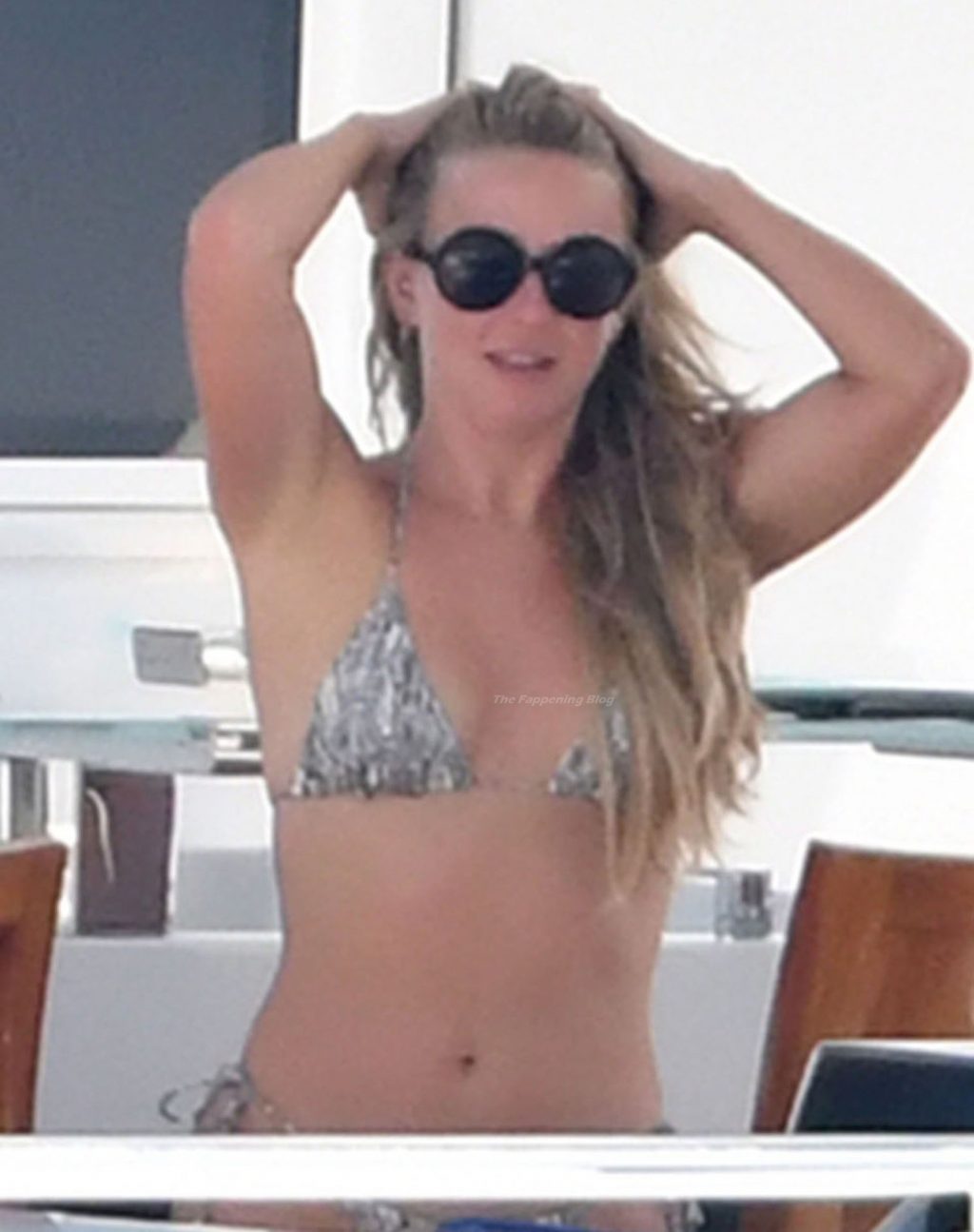 Julianne portait son bikini argenté minimaliste en montrant sa silhouette svelte alors qu’elle appliquait de la crème solaire sous une chaleur accablante.