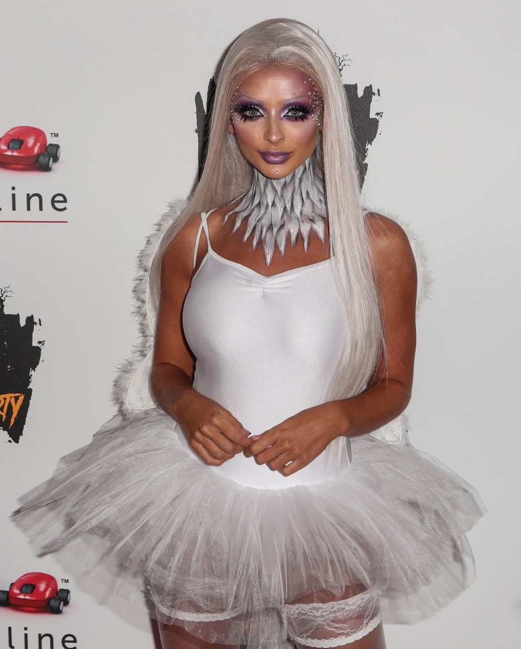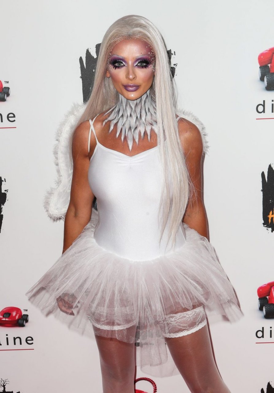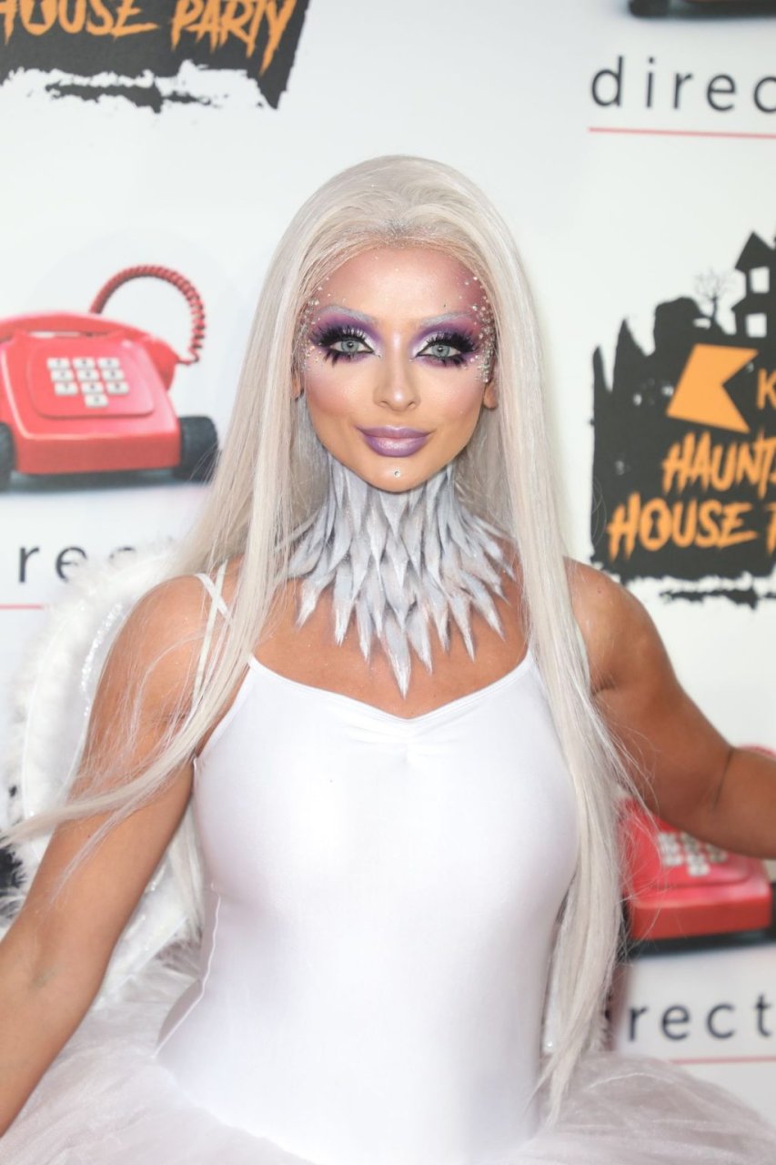 Makeup artist and reality TV show contestant Kady McDermott exhibe son costume d’Halloween innocent à la KISS Haunted House Party à la SSE Arena, Wembley, le 25/10/2019.
